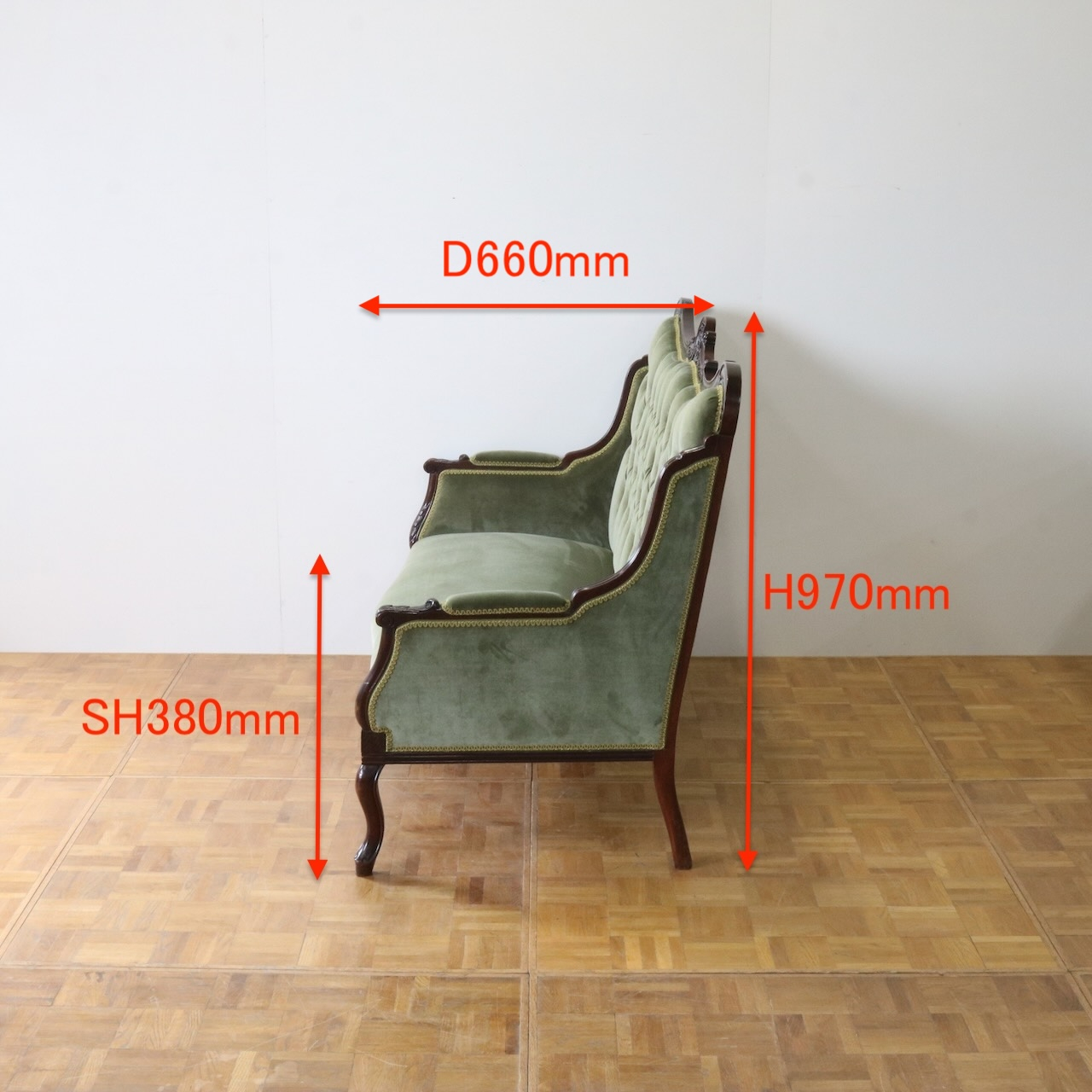 ファブリックはシックで落ち着いた色合いのグリーンのヴェルヴェットを用いました。インテリアに取り入れやすい色調です。