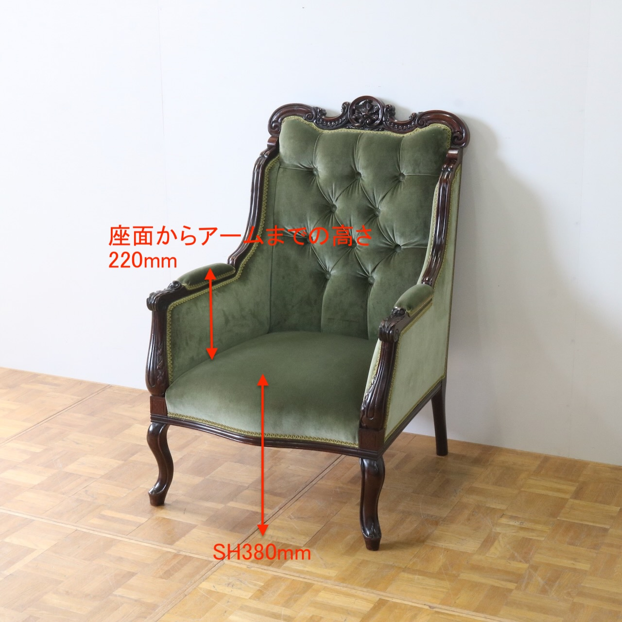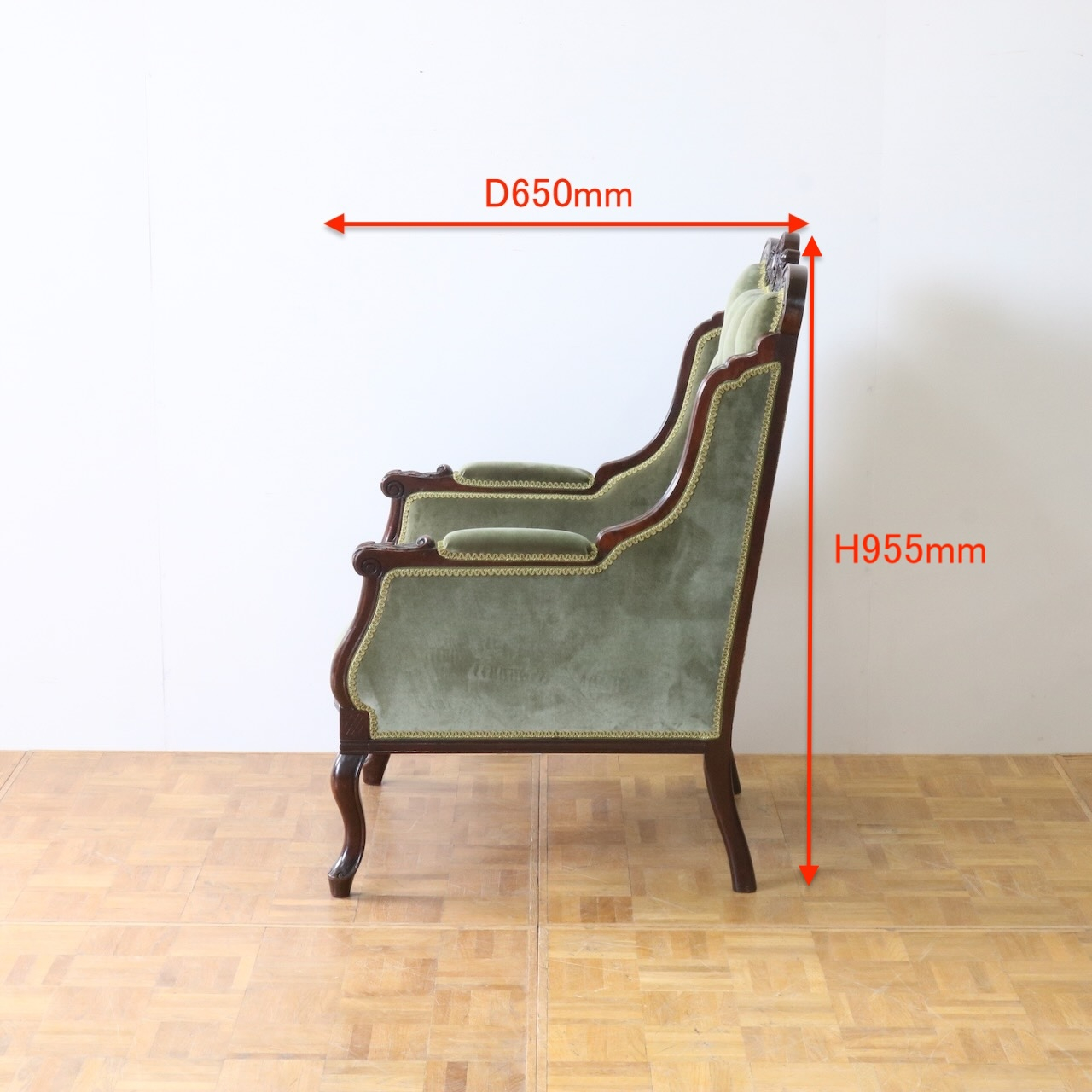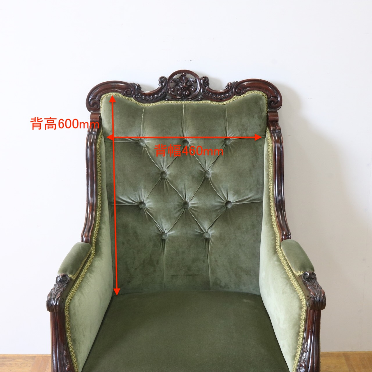 ファブリックはシックで落ち着いた色合いのグリーンのヴェルヴェットを用いました。インテリアに取り入れやすい色調です。