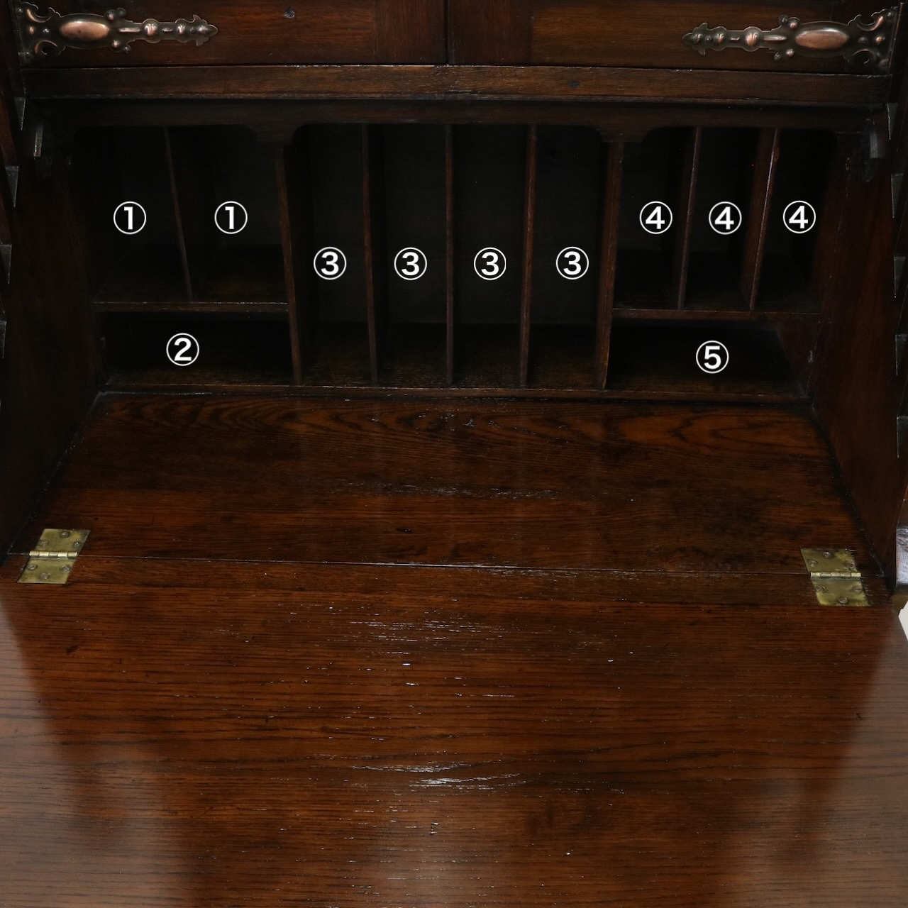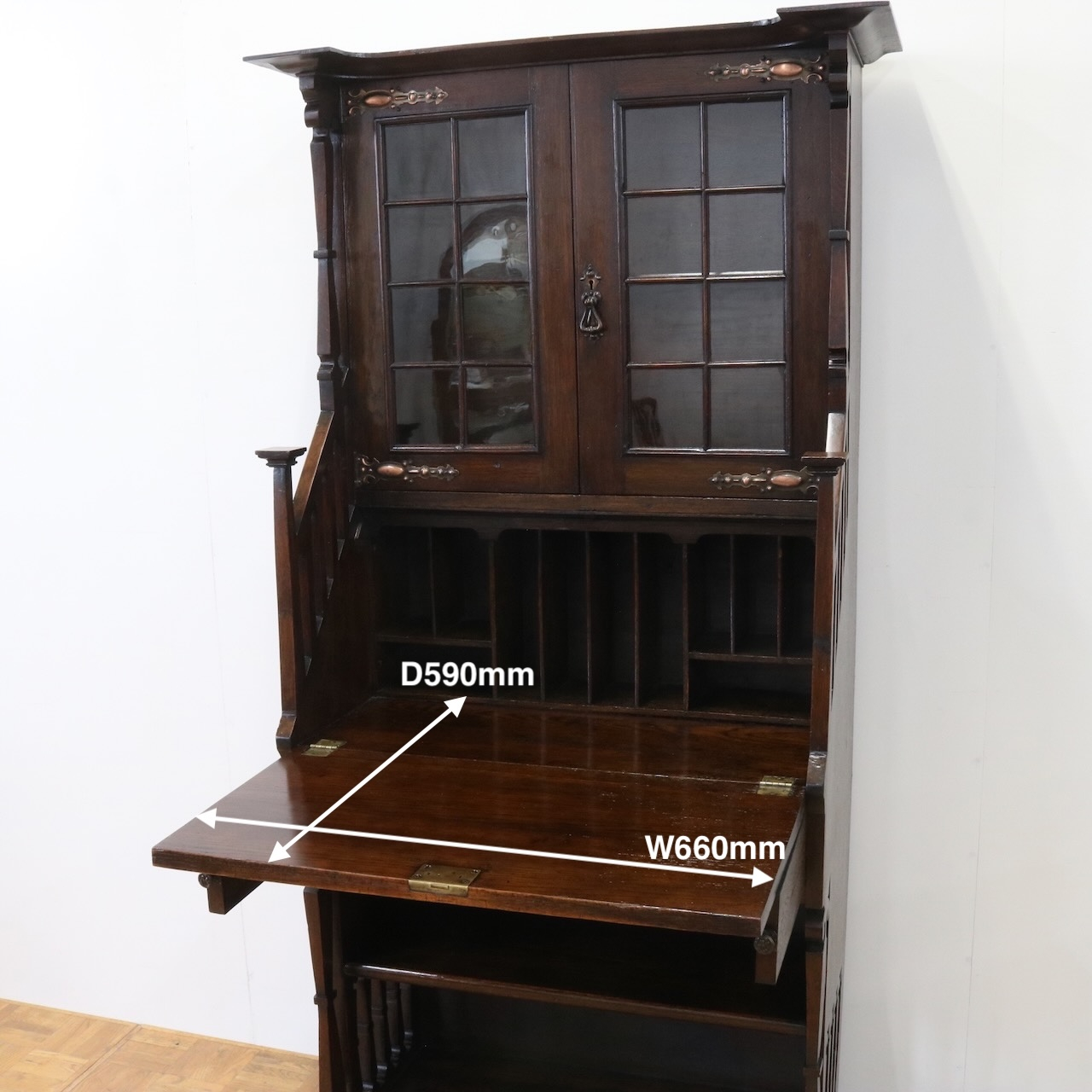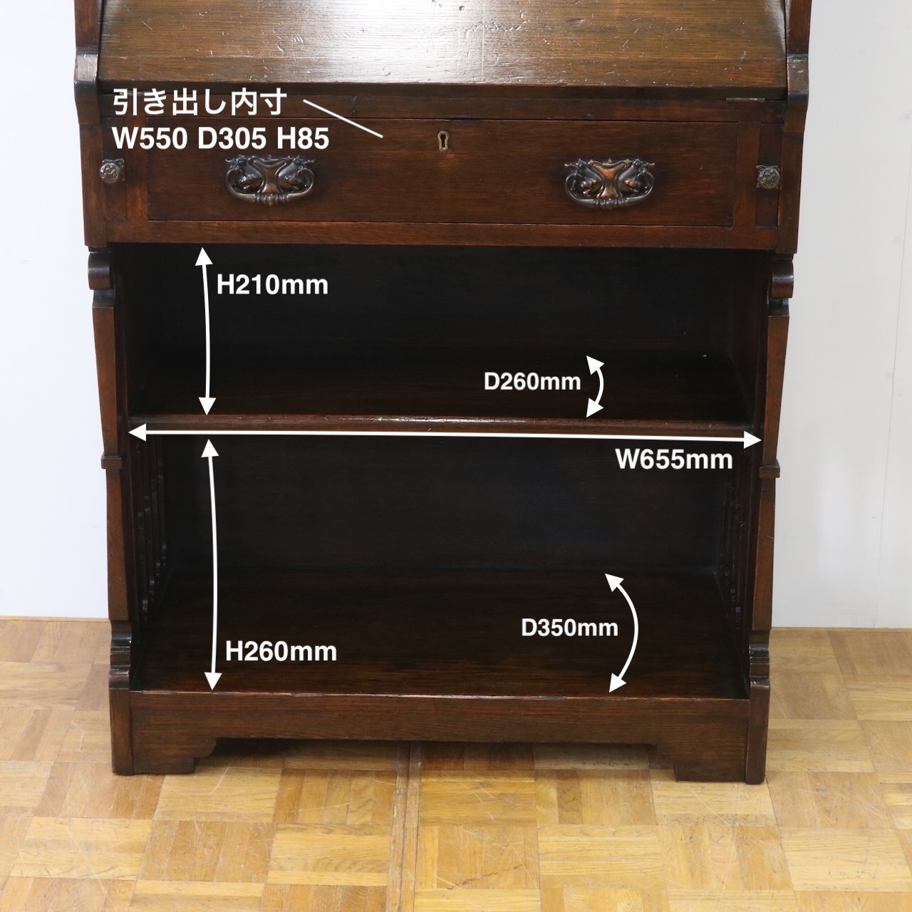 配送料の目安 ▶︎1900年代、アーツアンドクラフトのビューローブックケース。デスクと本棚を兼ね備えた1台2役の便利なひと品。