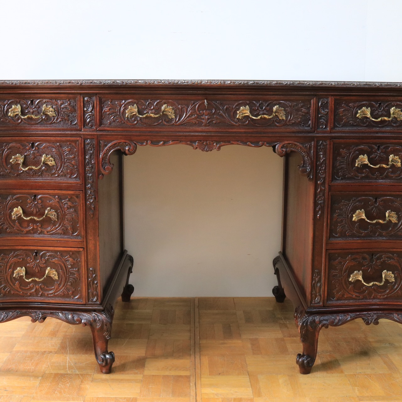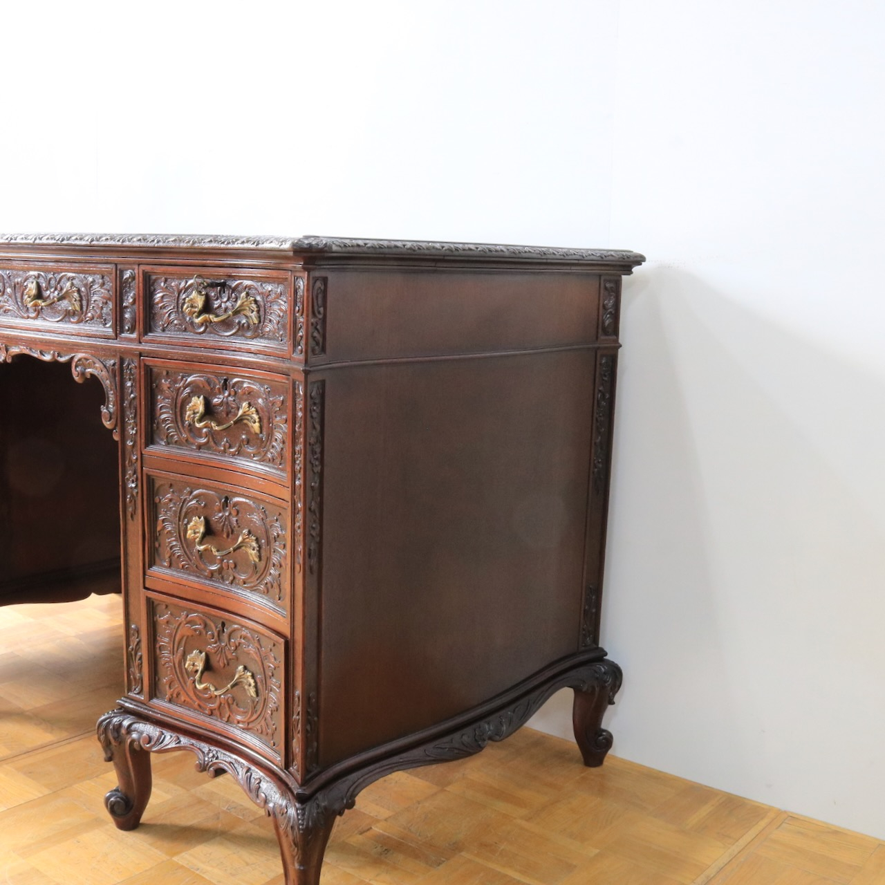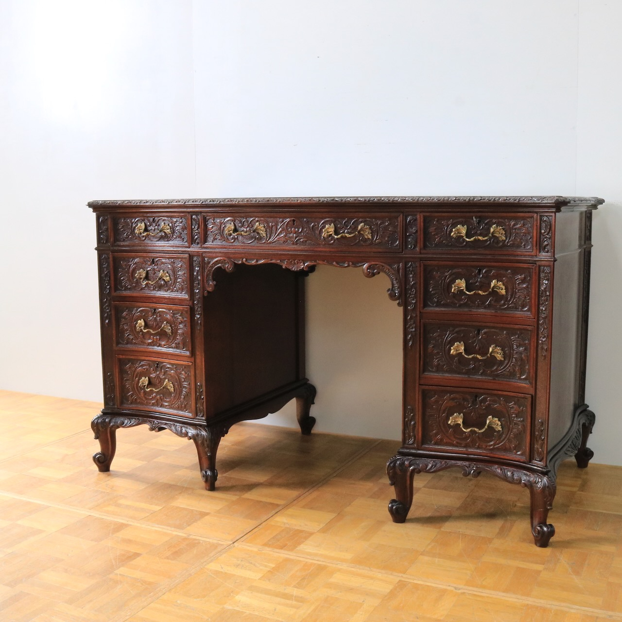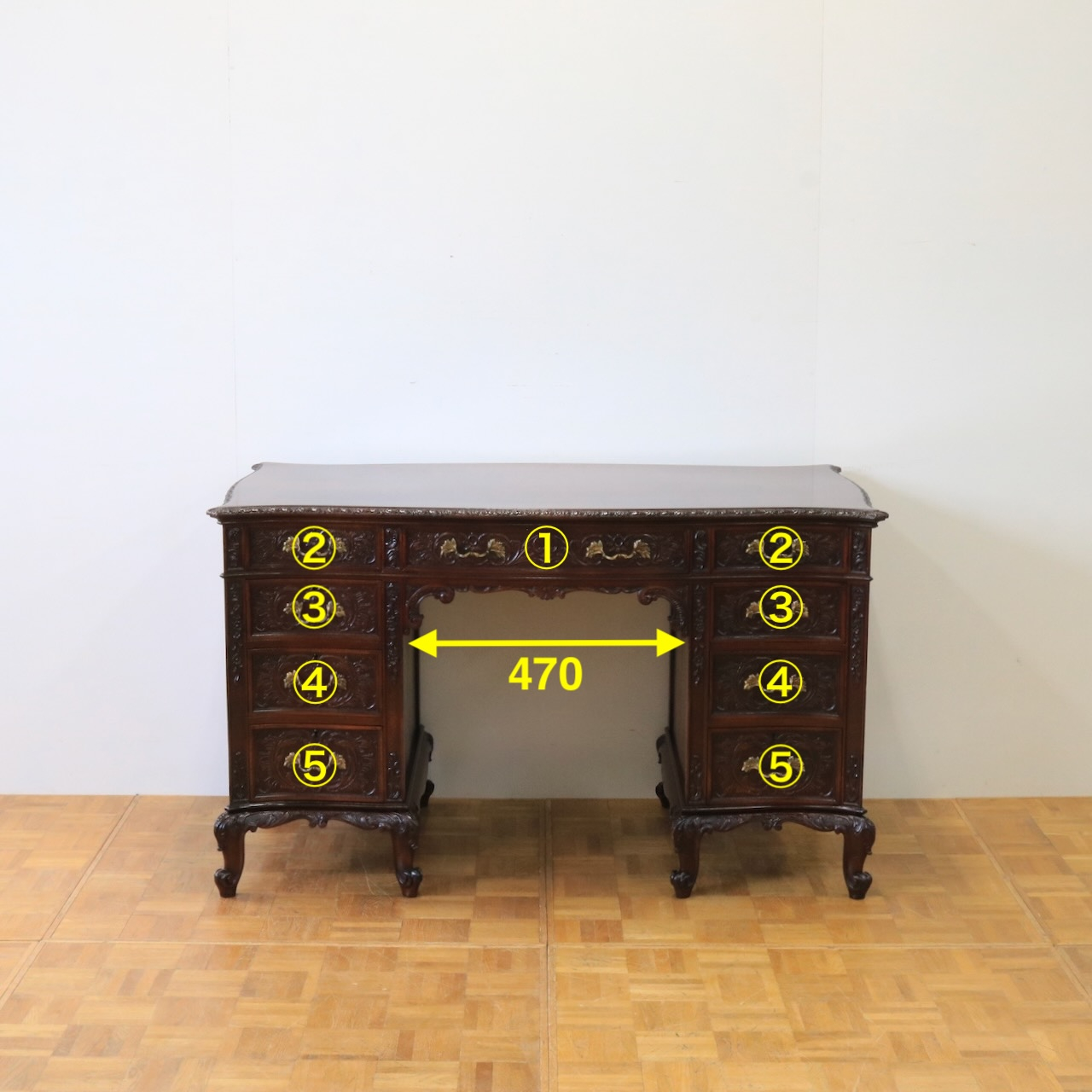 側面や背面に至るまで彫刻で飾られたデスク。360度どこから見ても美しい圧巻のクオリティです。