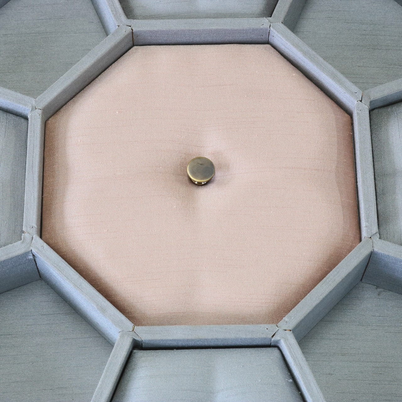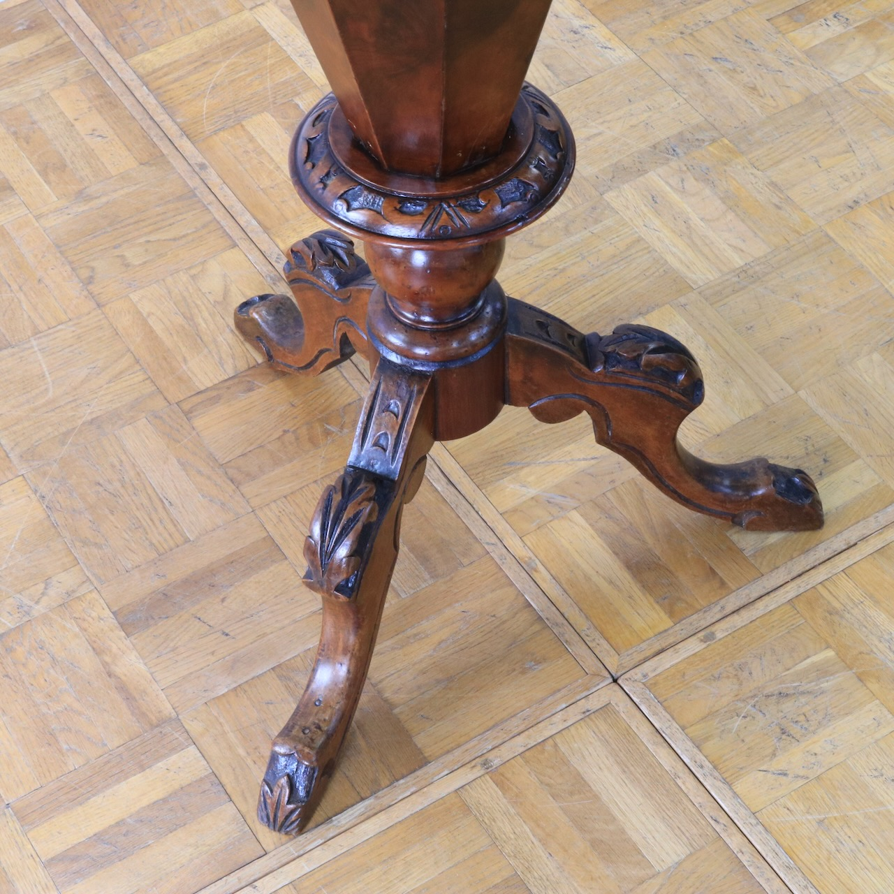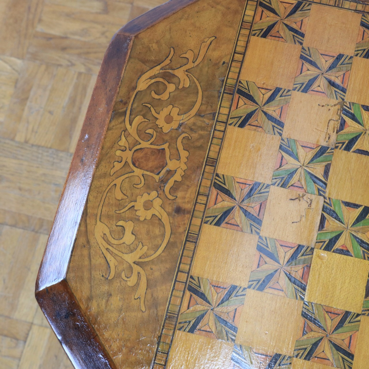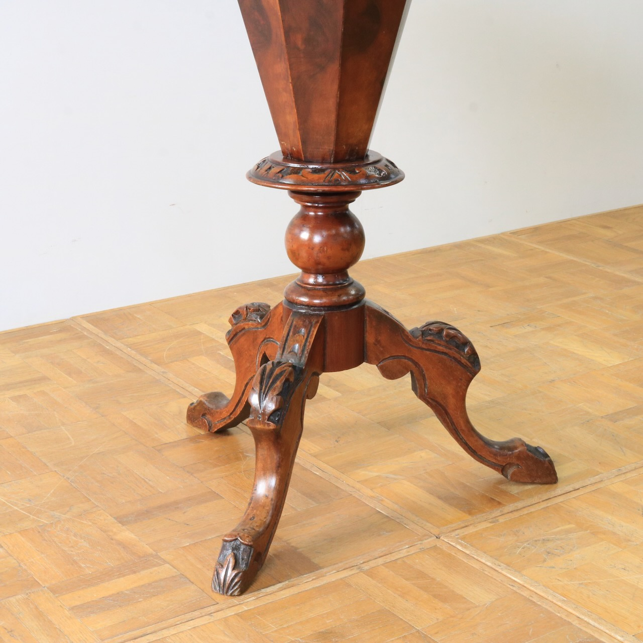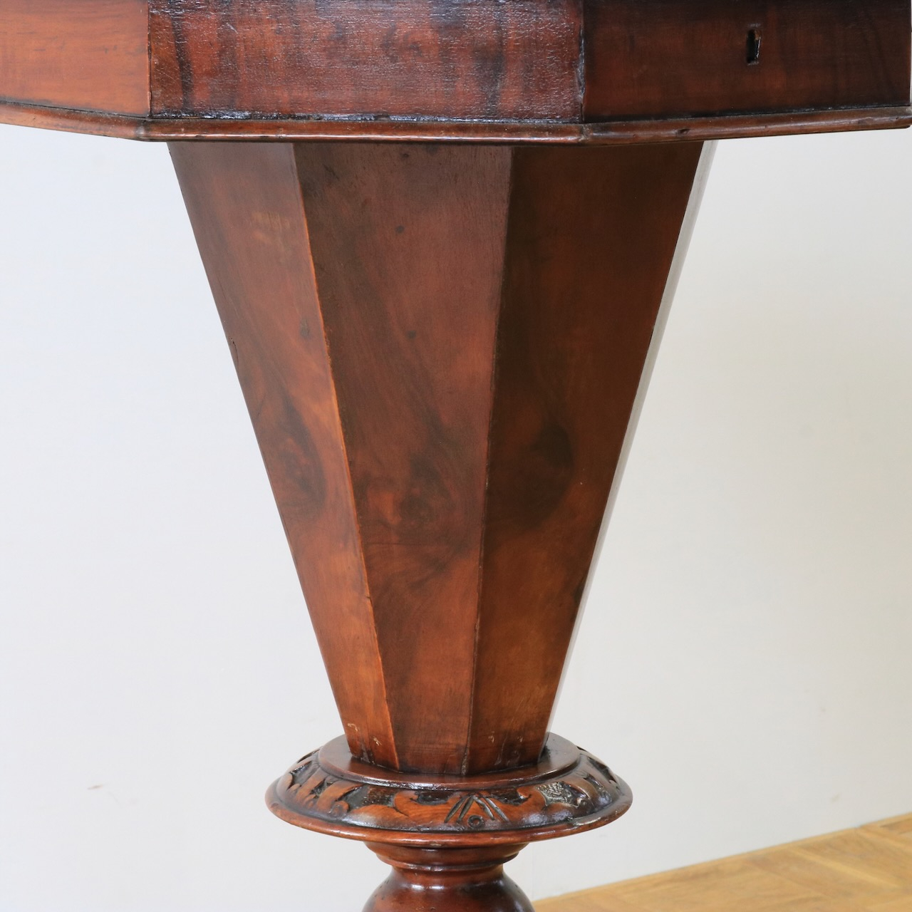 配送料の目安 ▶︎ヴィクトリアンのソーイングボックス。天板にマーケットリーが施された八角形のテーブルですが、天板を開けるとソーイングボックスになっている珍しいアイテムです。