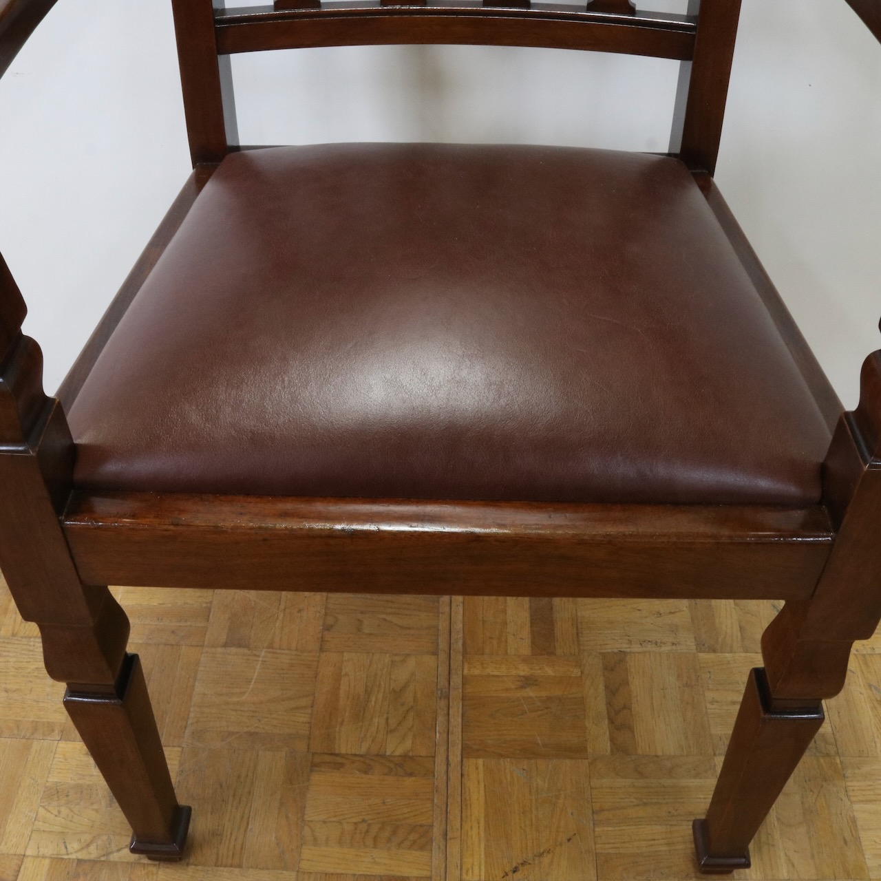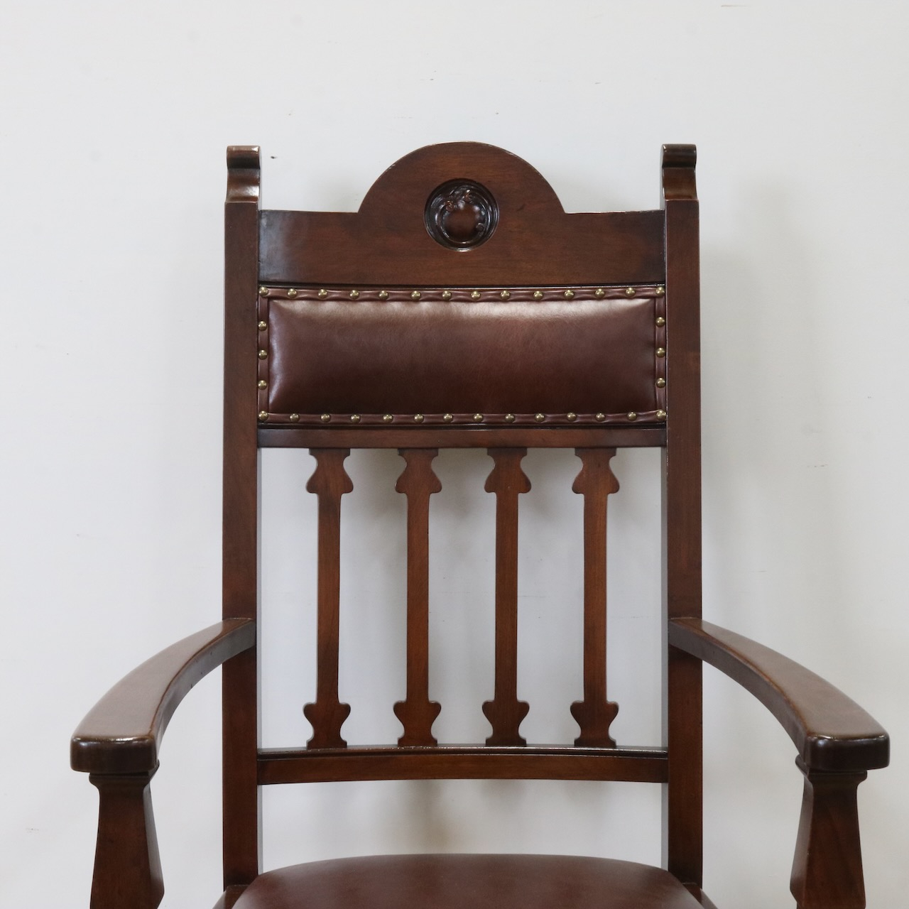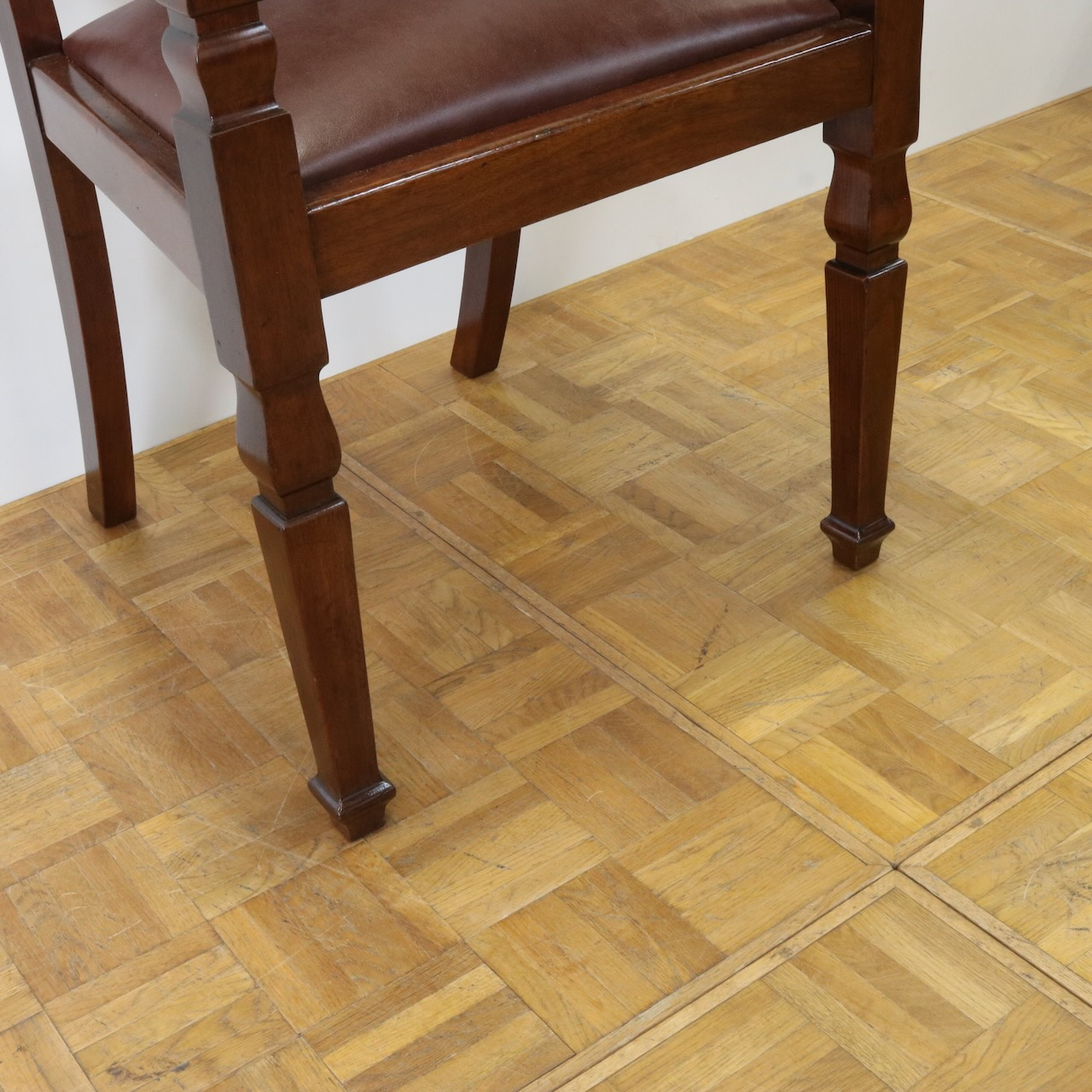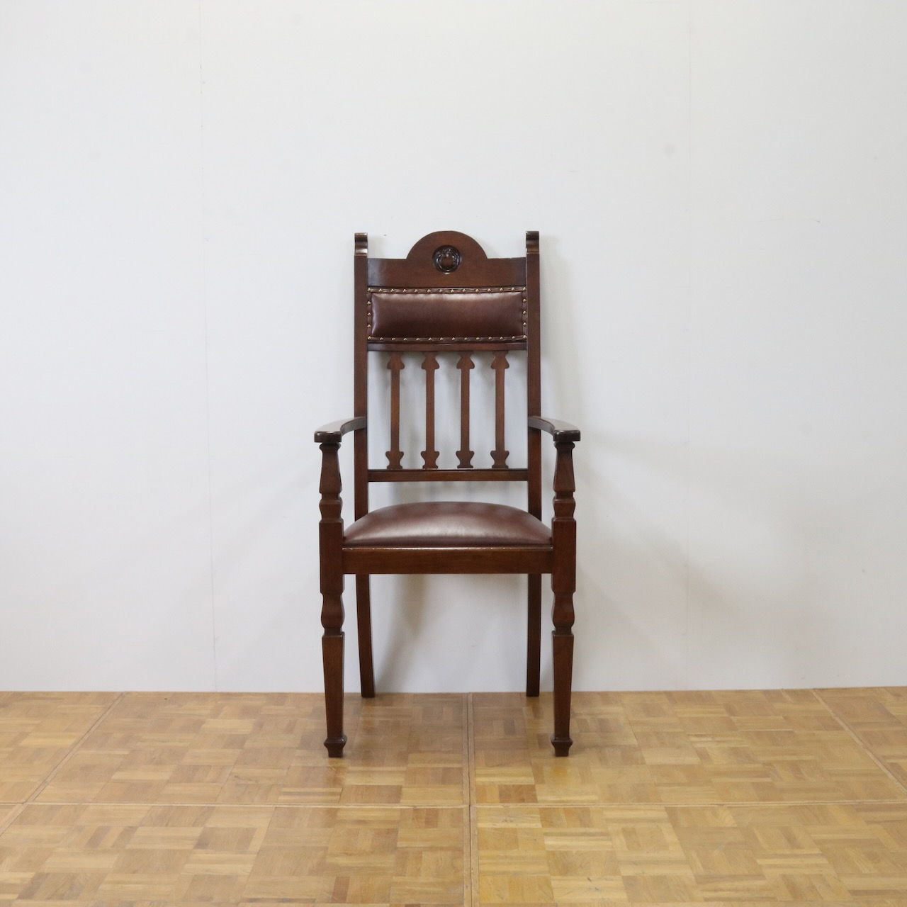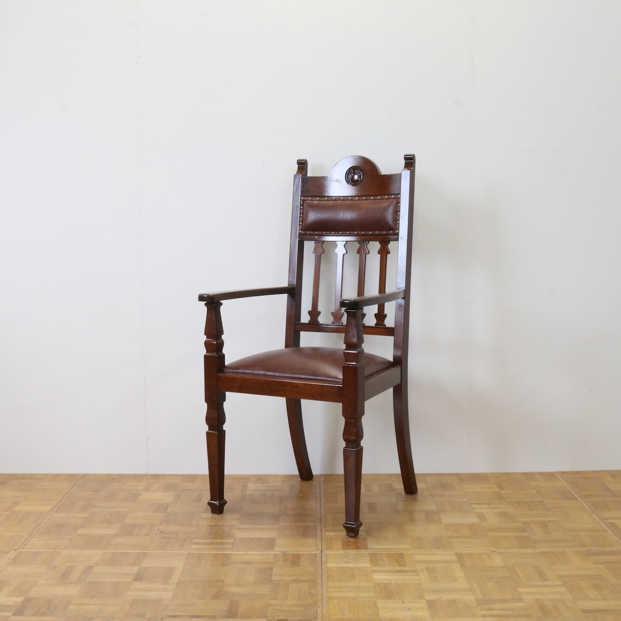 深みのあるマホガニー材が、重厚感と上質な雰囲気を醸し出すアームチェアです。