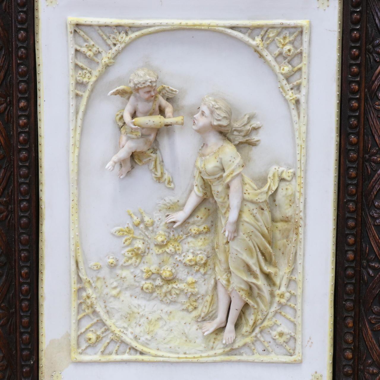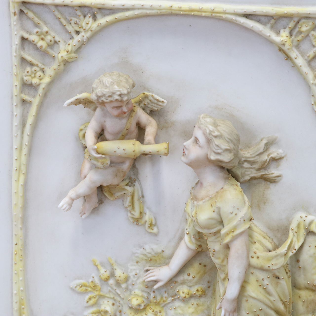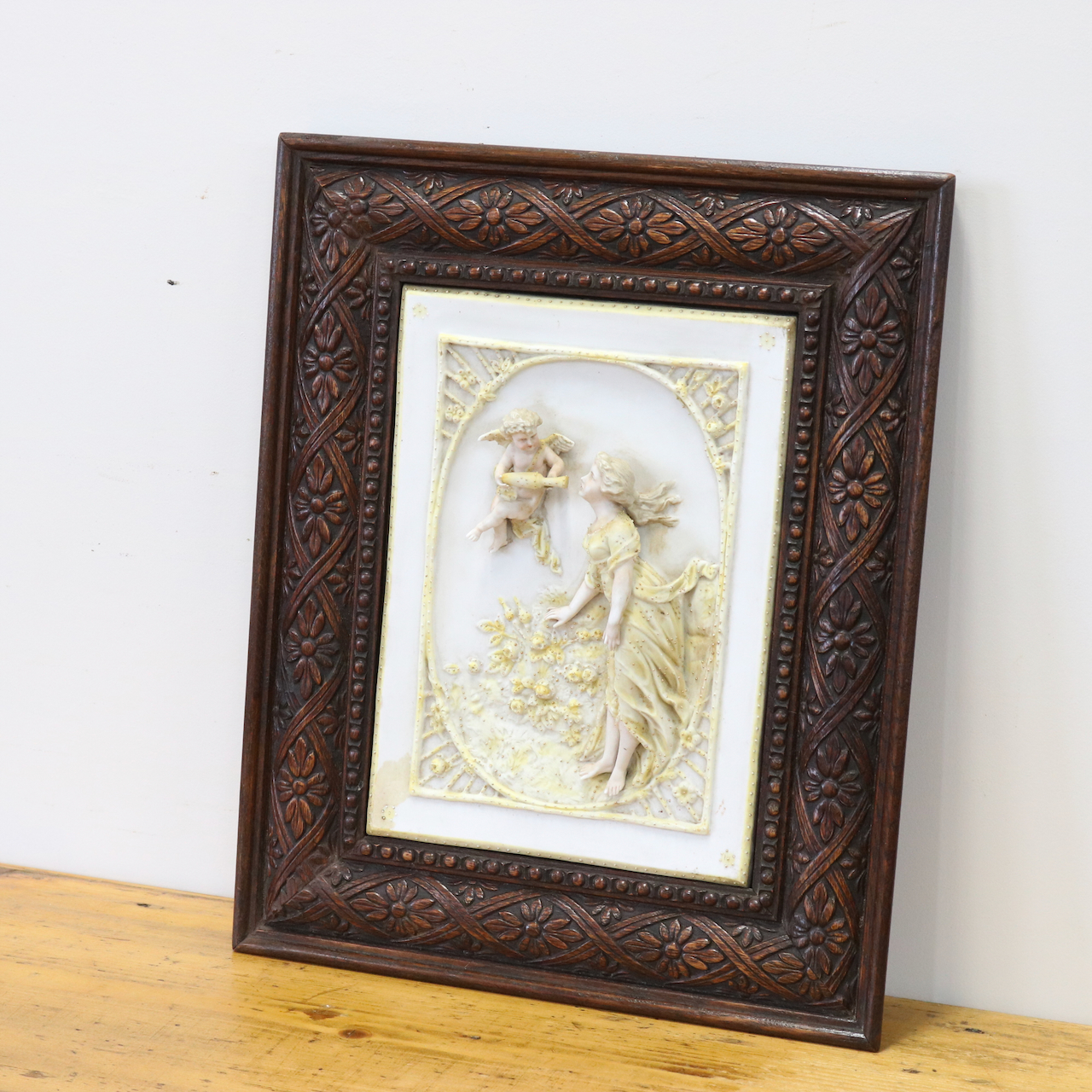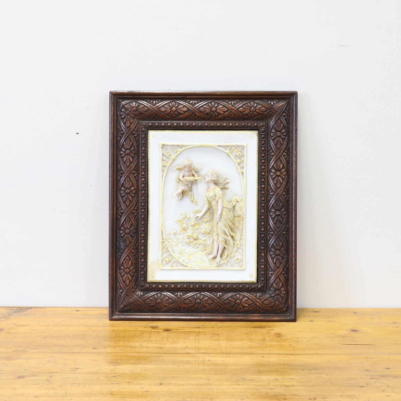 額内は立体的になっており、天使と女性の姿が繊細に形作られています。
