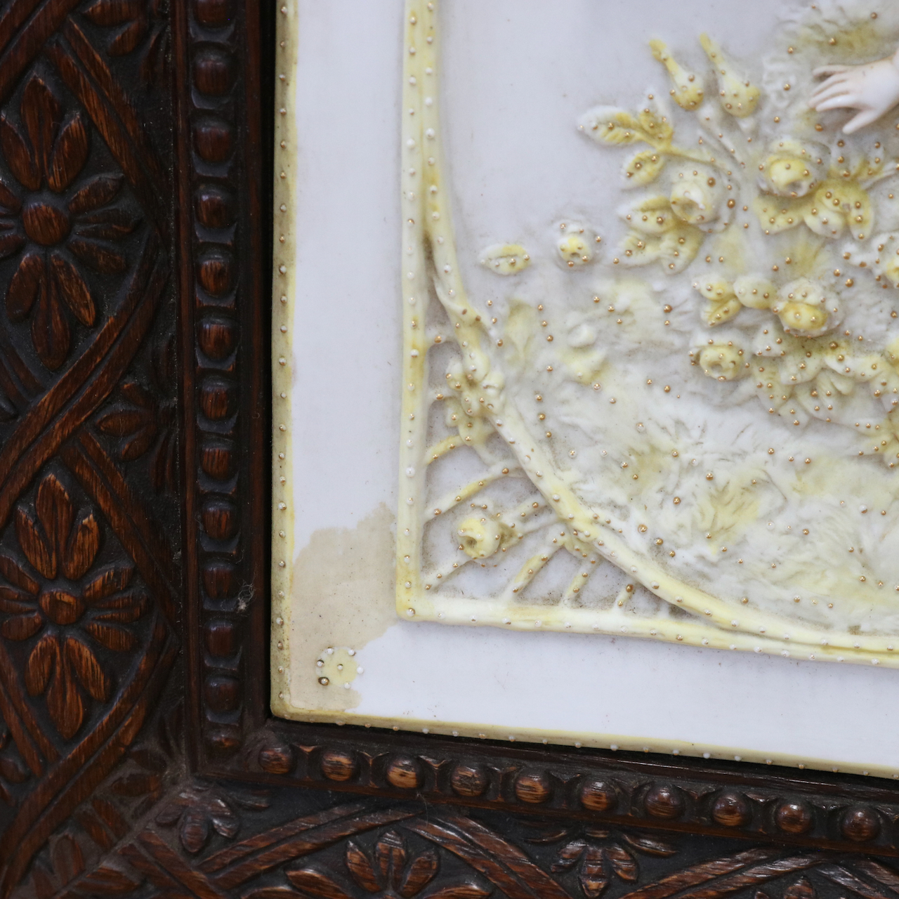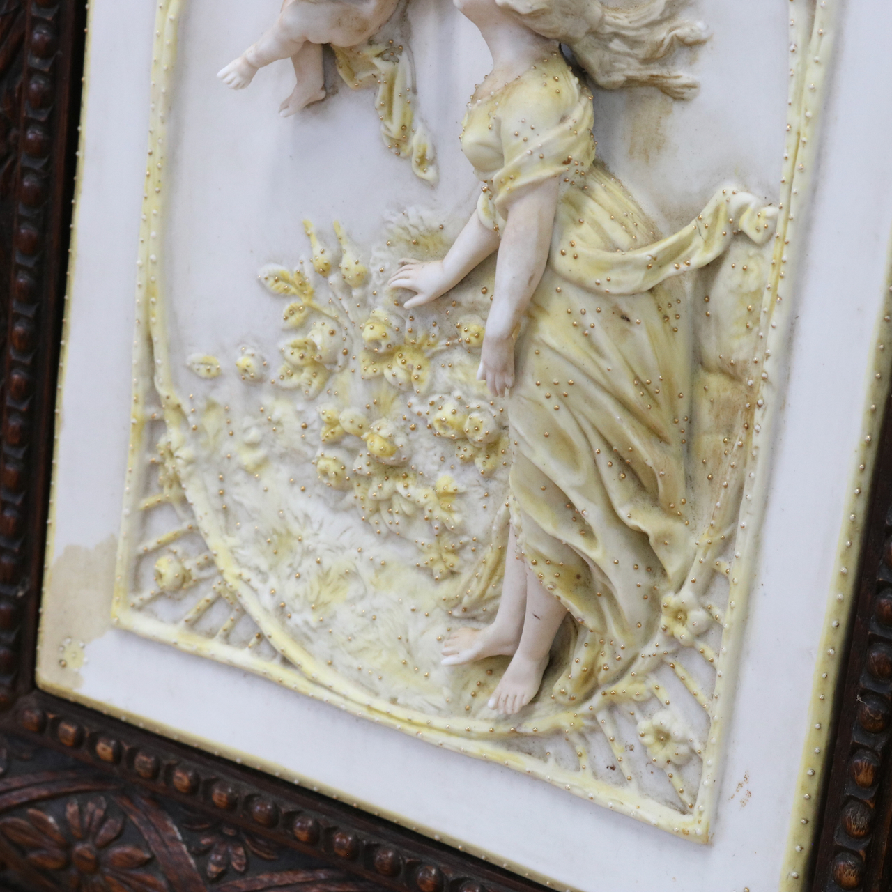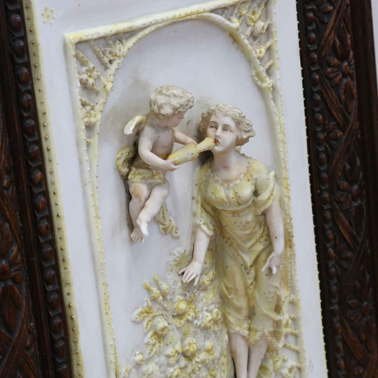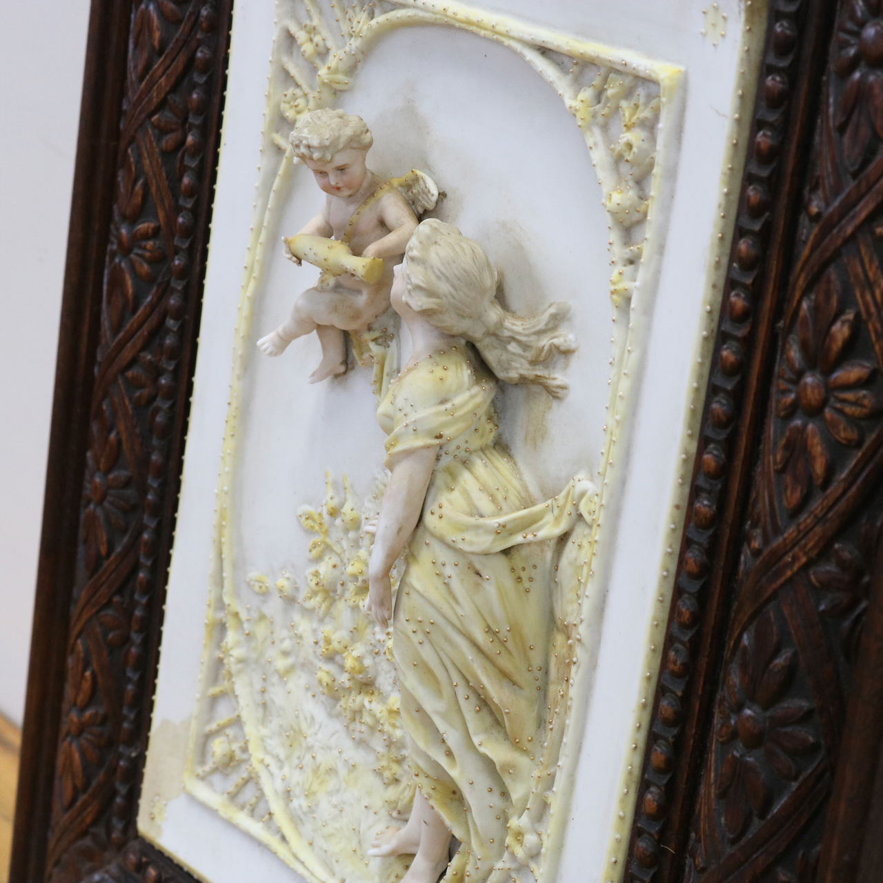 額内は立体的になっており、天使と女性の姿が繊細に形作られています。