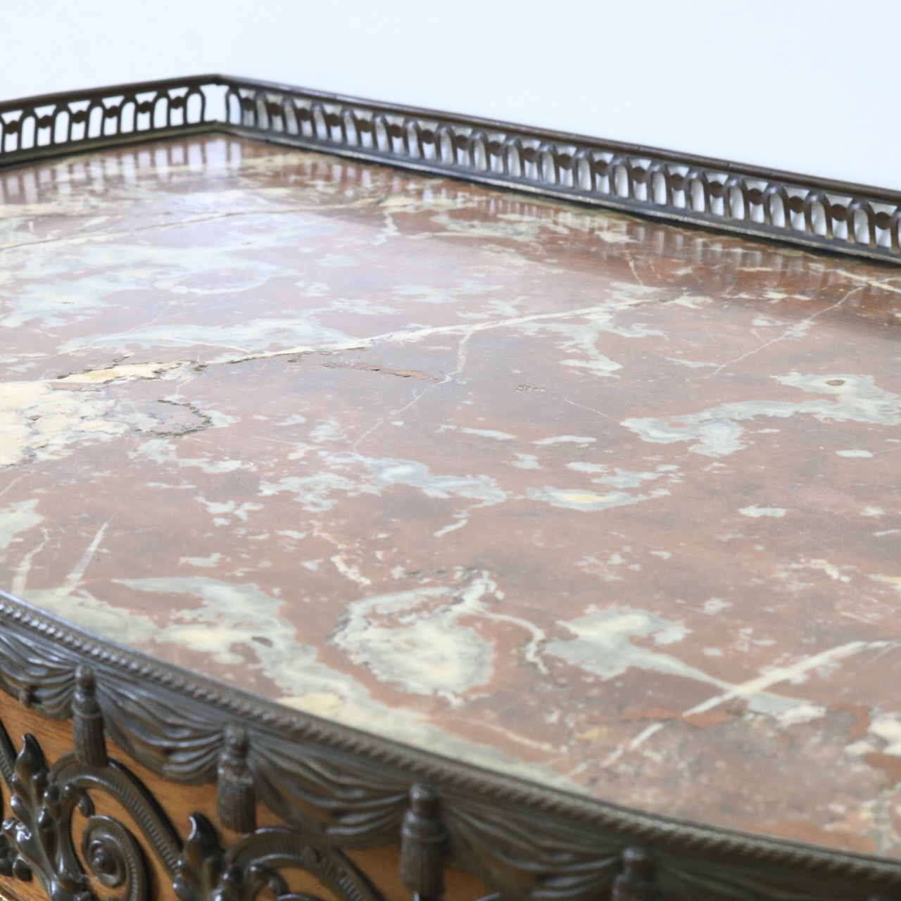 天板トップには赤みがかった大理石が用いられ、アンティークらしい重厚さを醸し出す一品です。