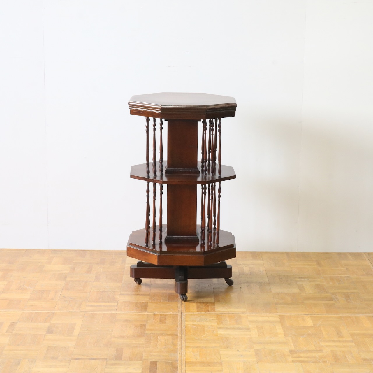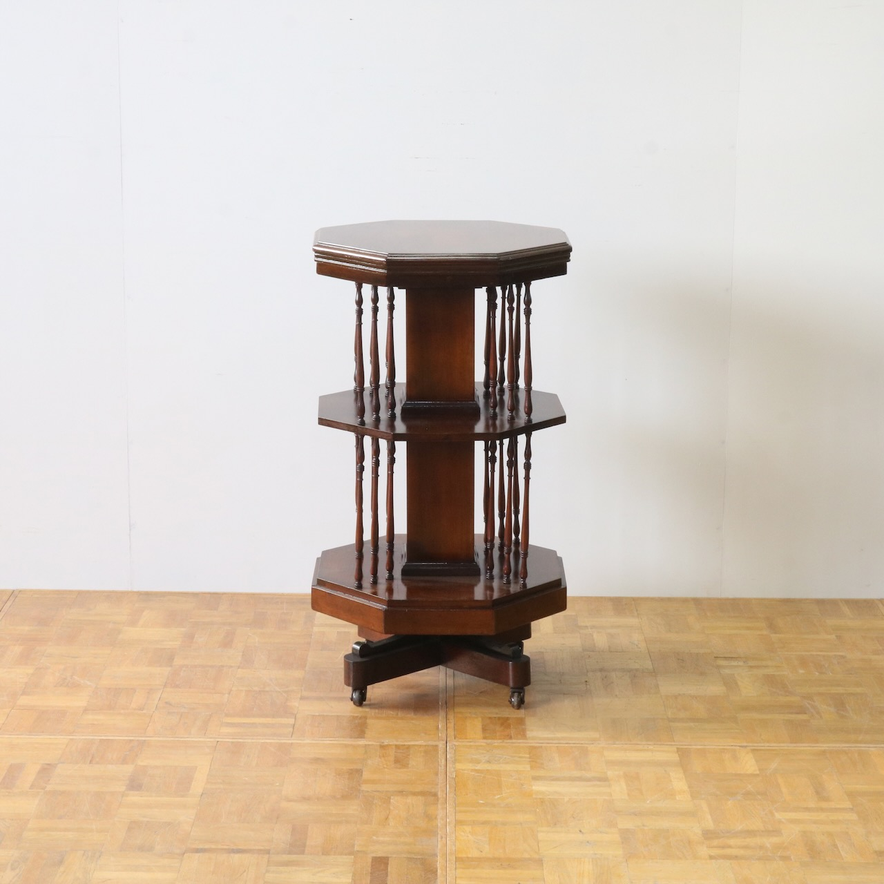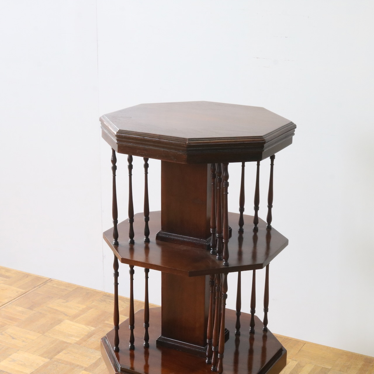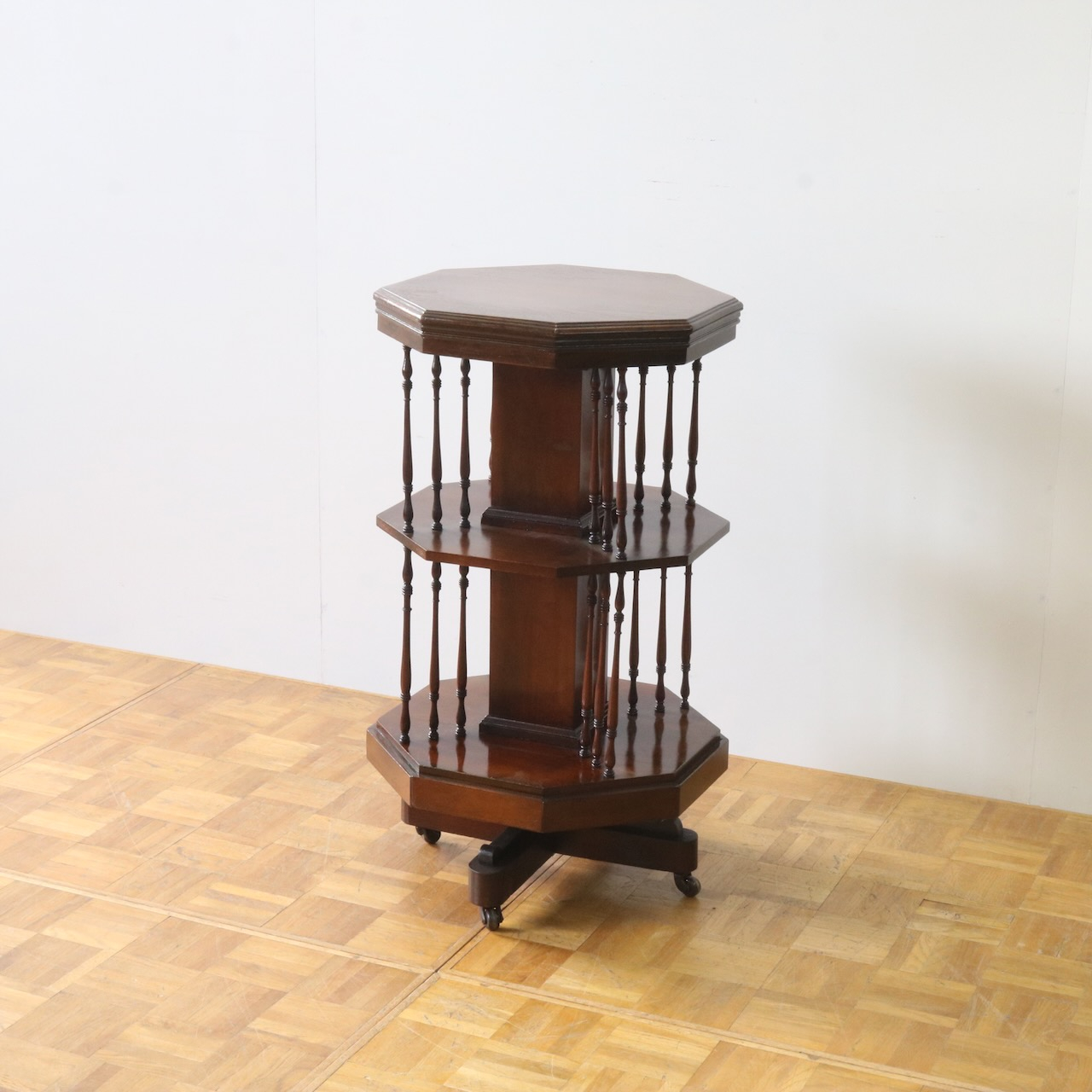 八角形のリボルビングブックケースは珍しく、また細めのコラムで仕切るデザインもあまり見かけません。