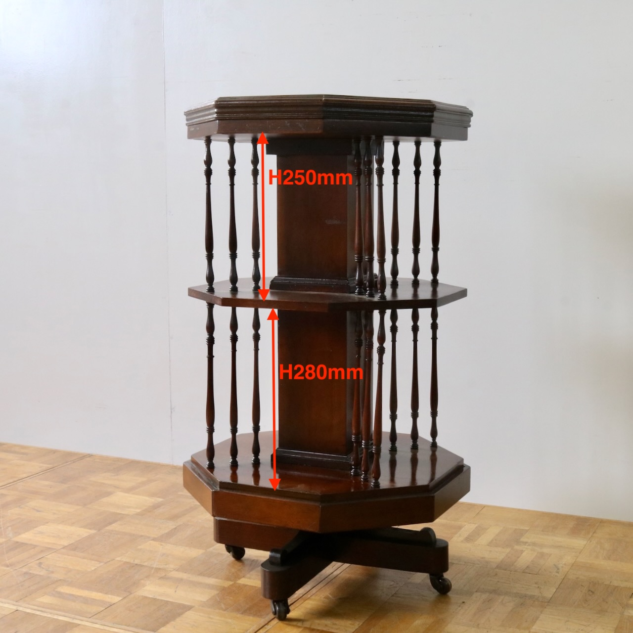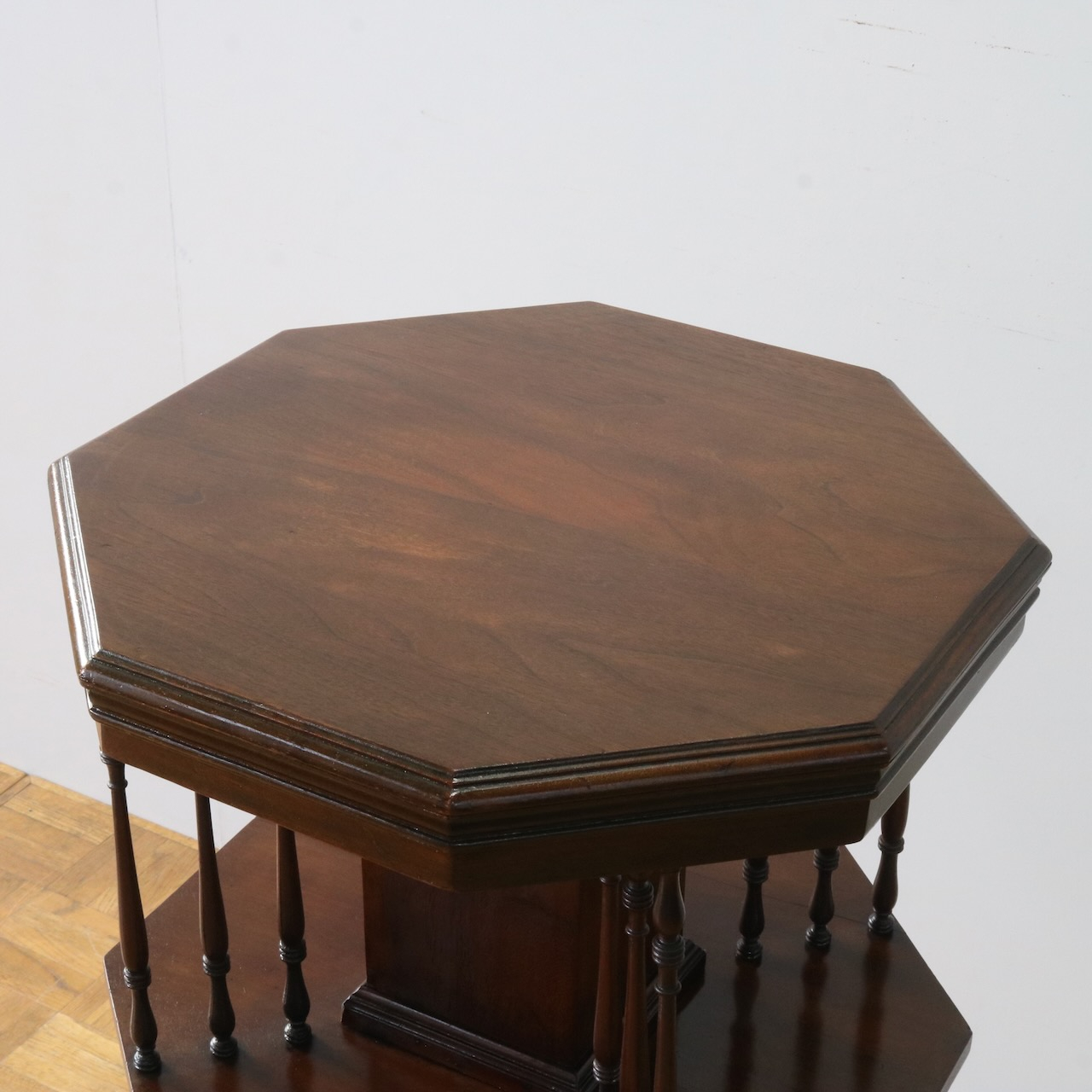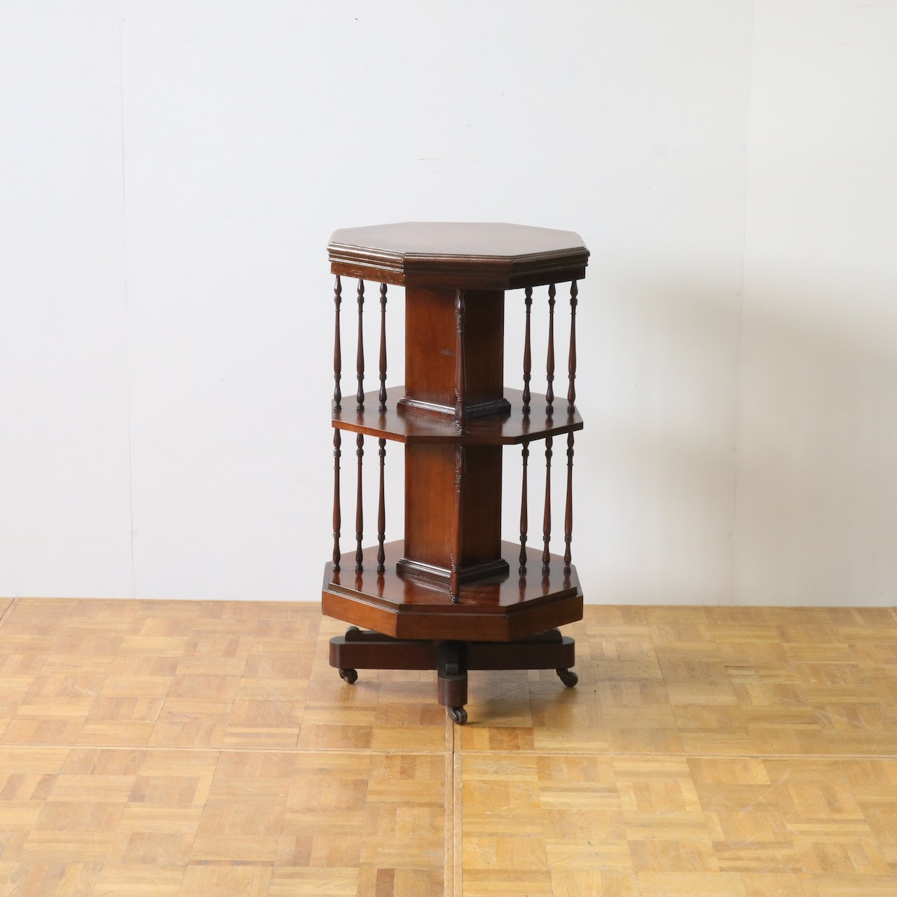 八角形のリボルビングブックケースは珍しく、また細めのコラムで仕切るデザインもあまり見かけません。
