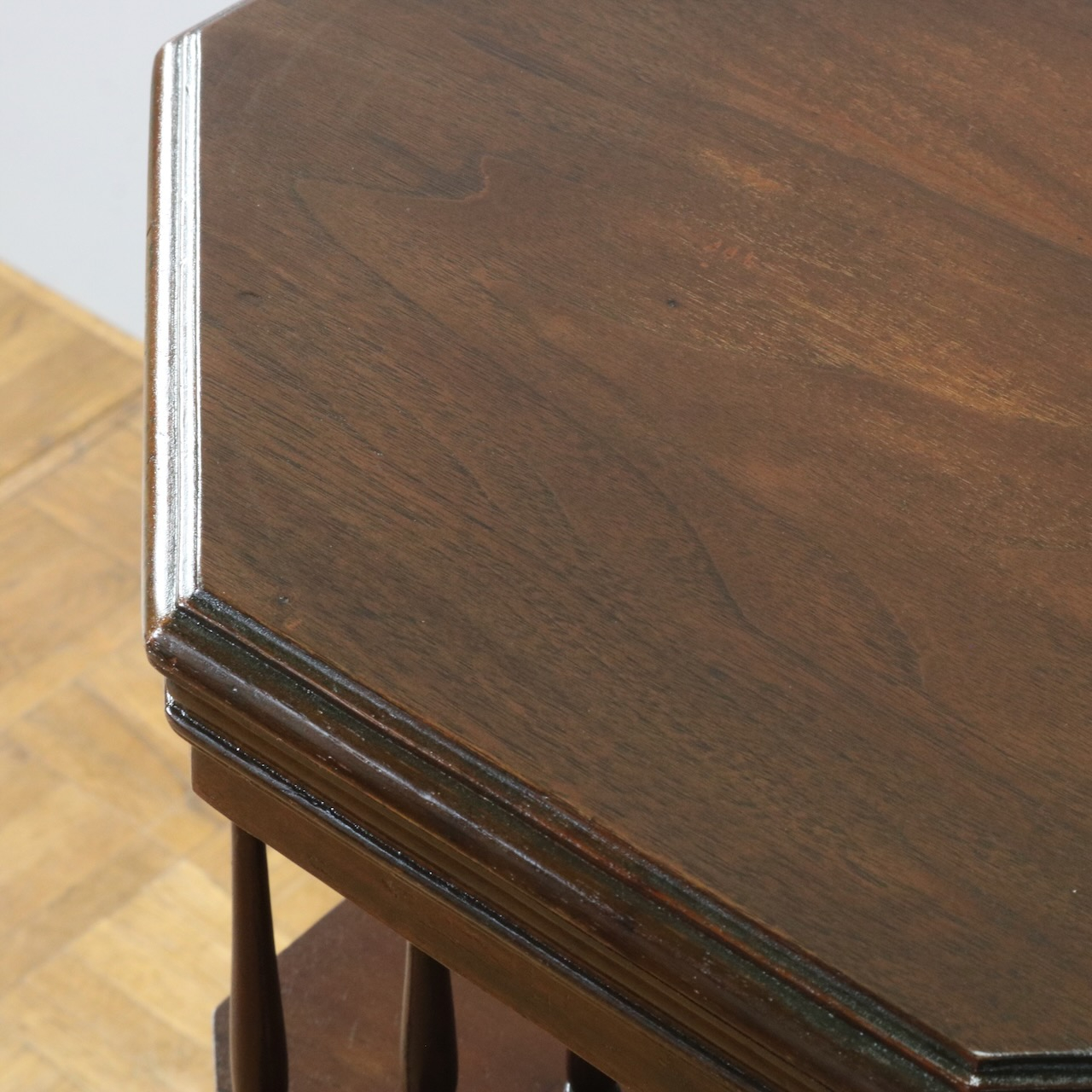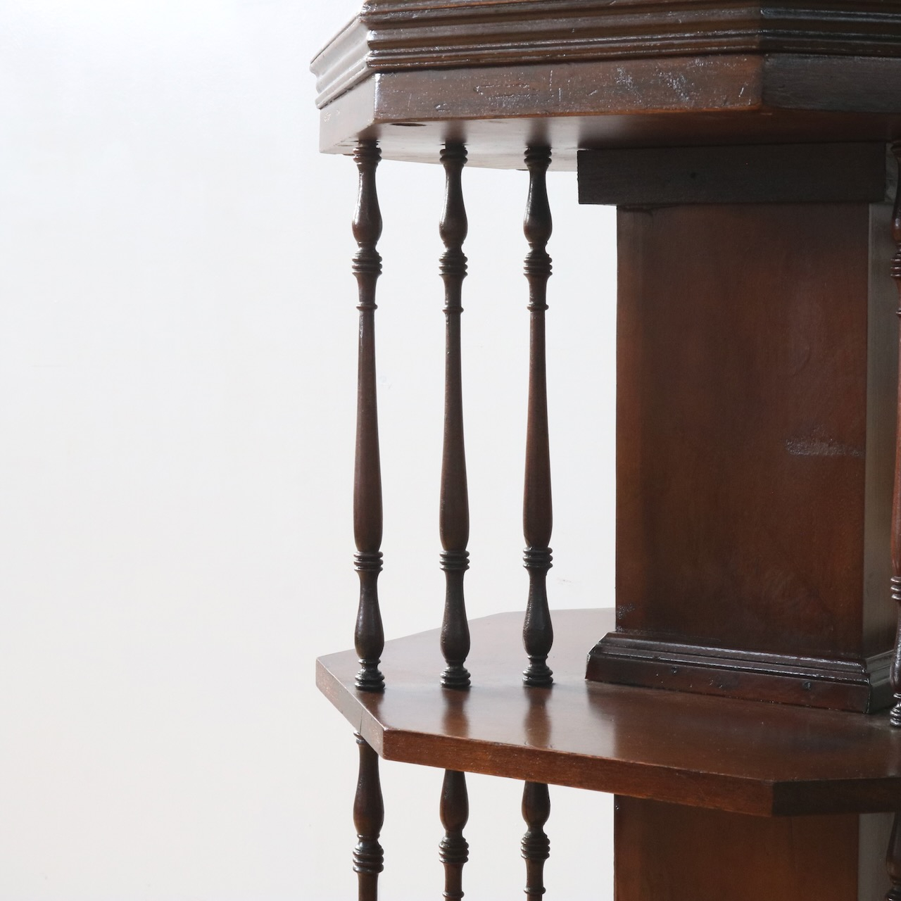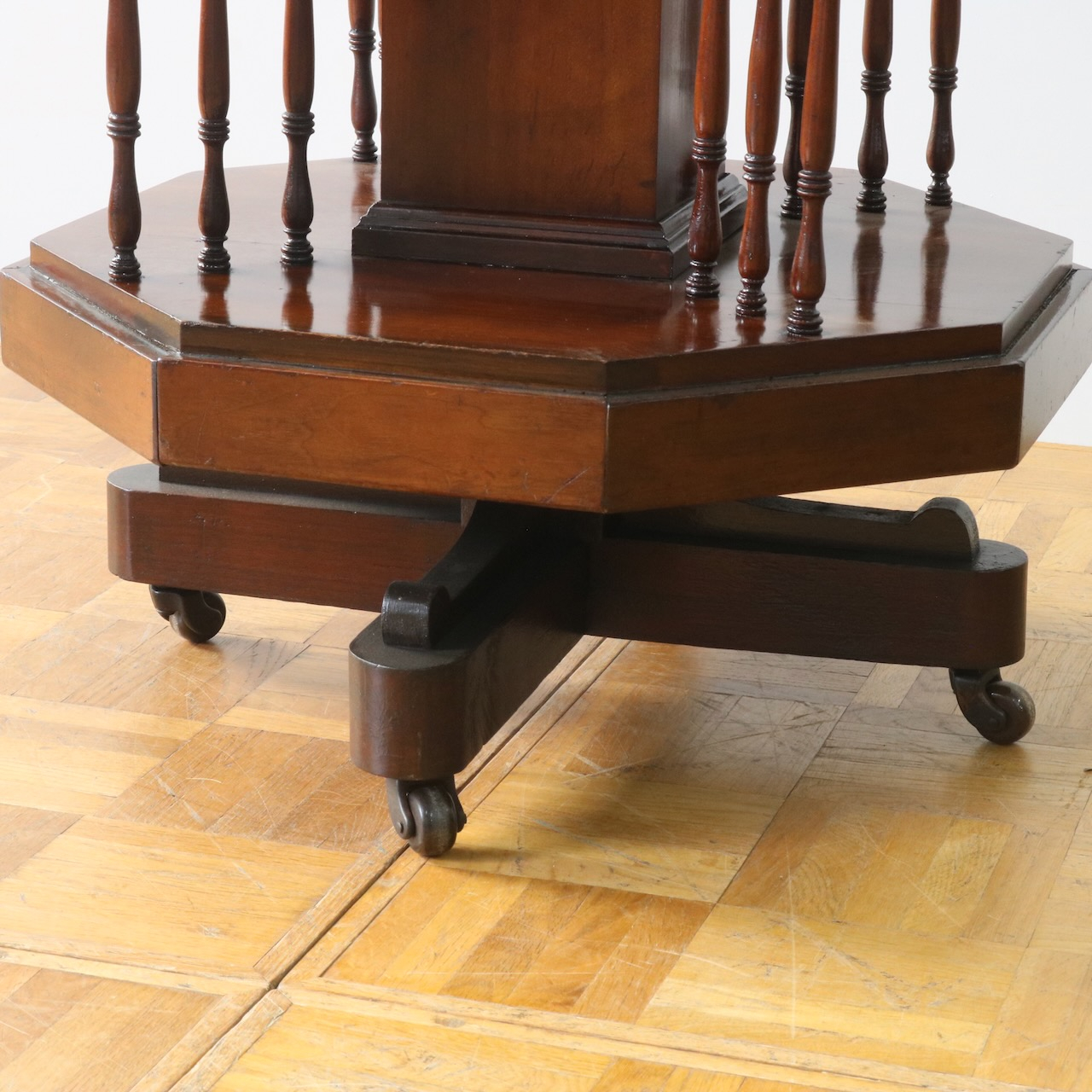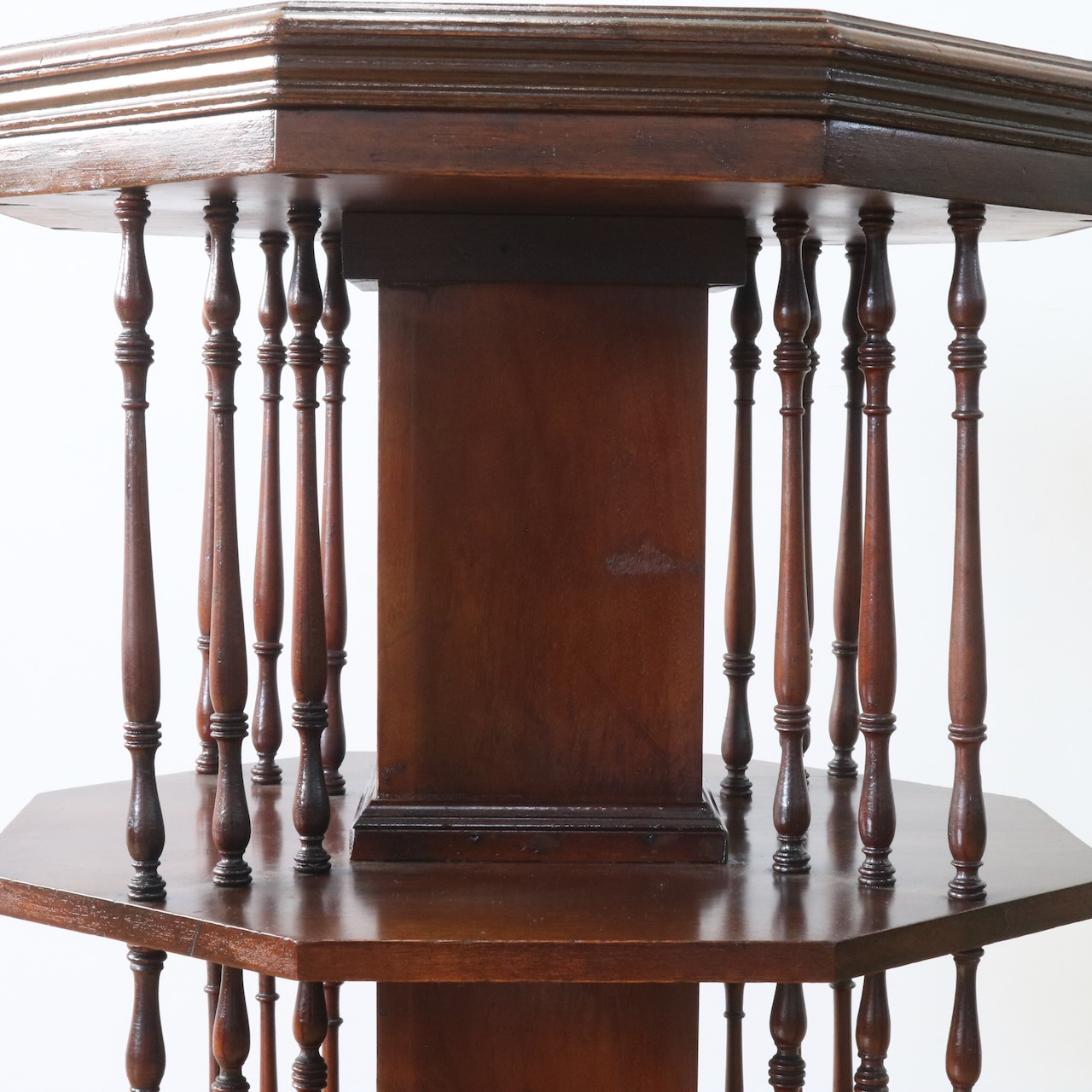 八角形のリボルビングブックケースは珍しく、また細めのコラムで仕切るデザインもあまり見かけません。