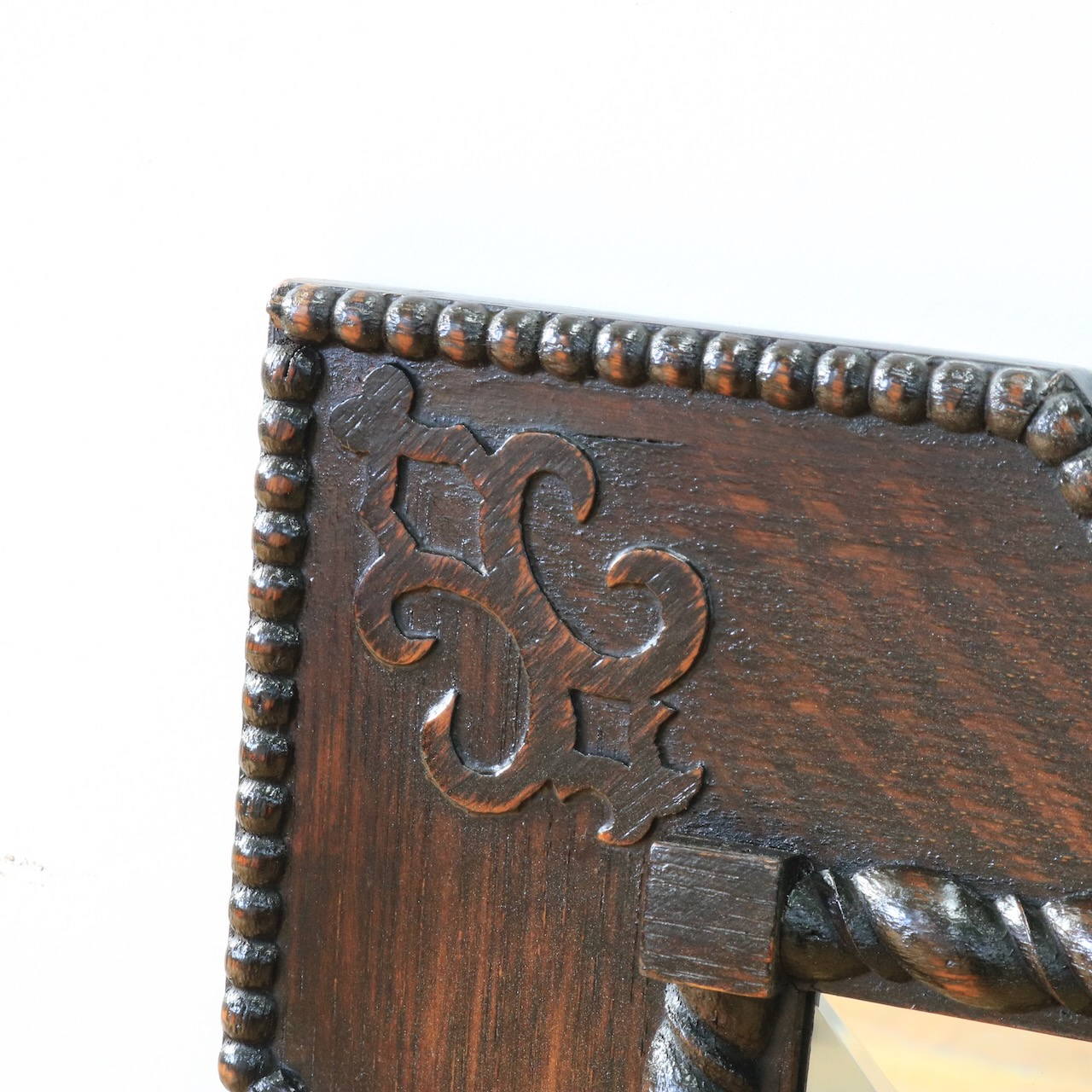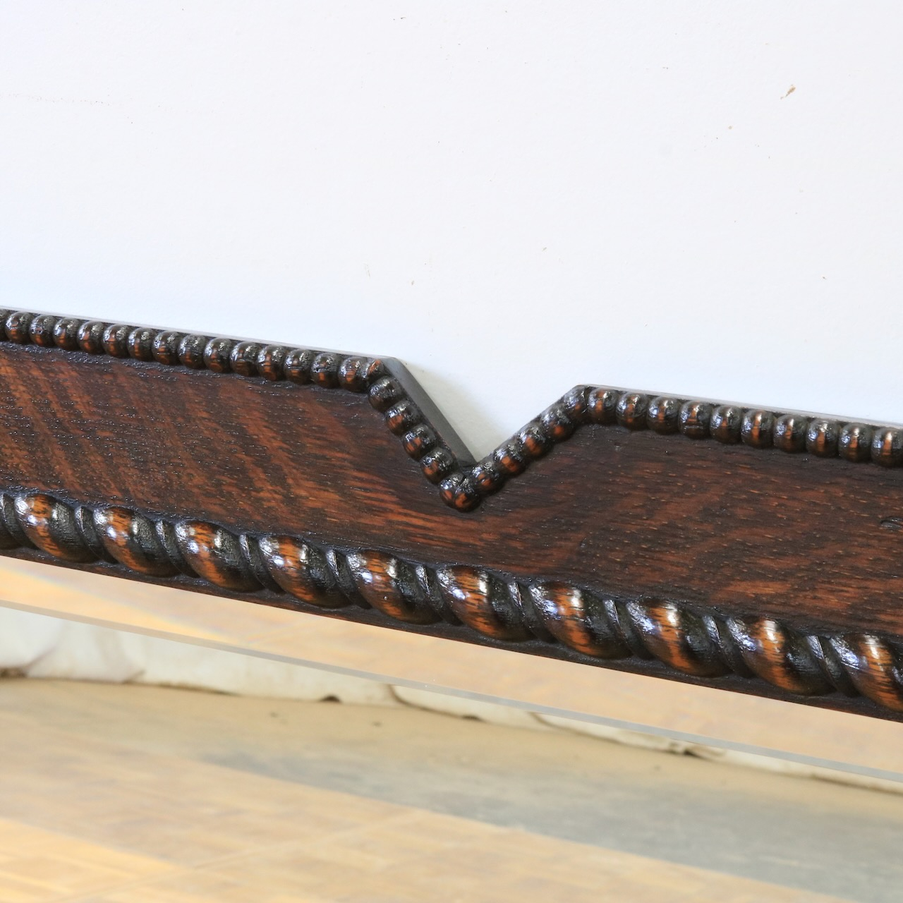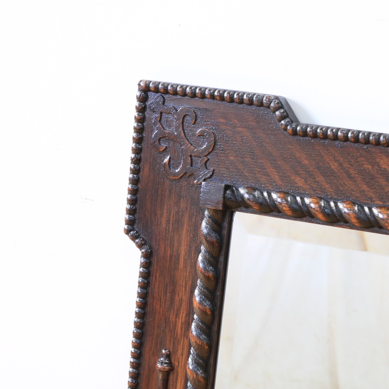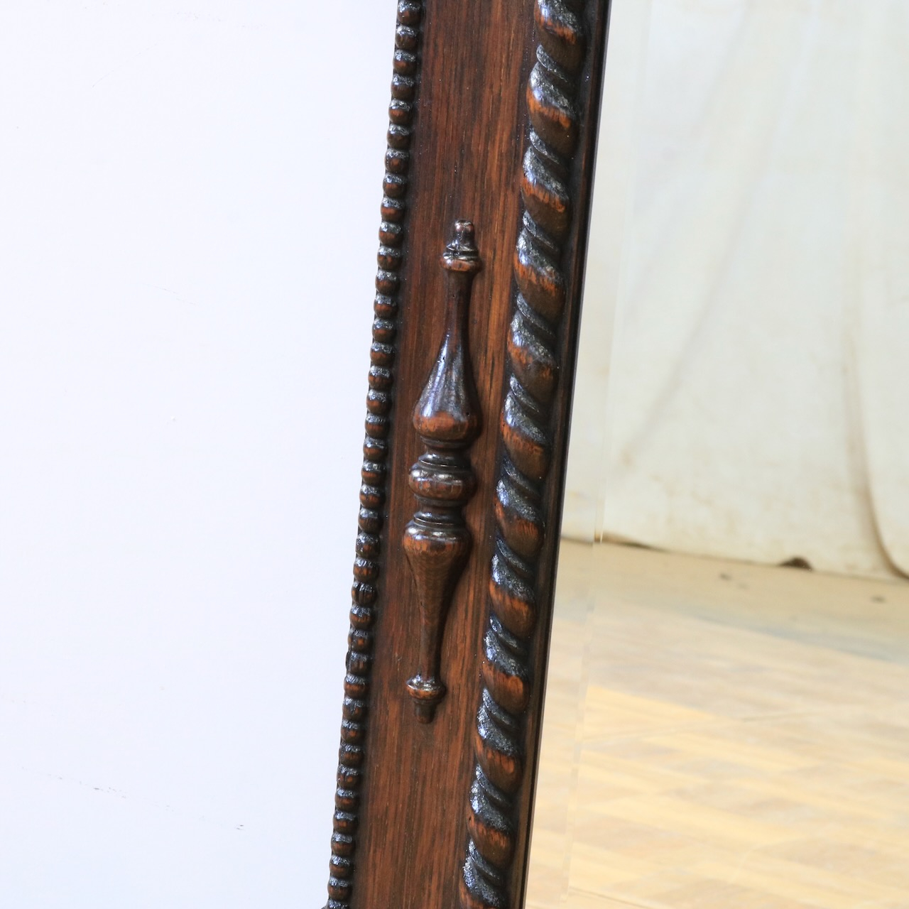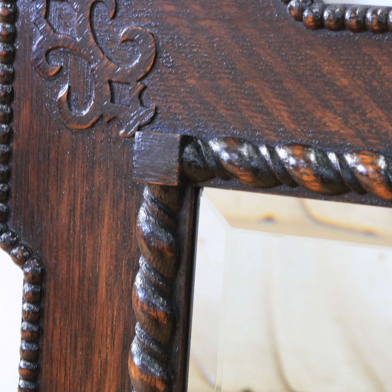 アクセントを付けてある長方形の枠に、縁飾りや彫刻装飾が付いたゴージャスで存在感のあるミラーです。