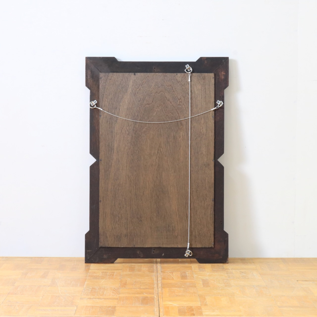 温かみのある深いブラウンカラーの木製フレームが特徴的なミラーです。