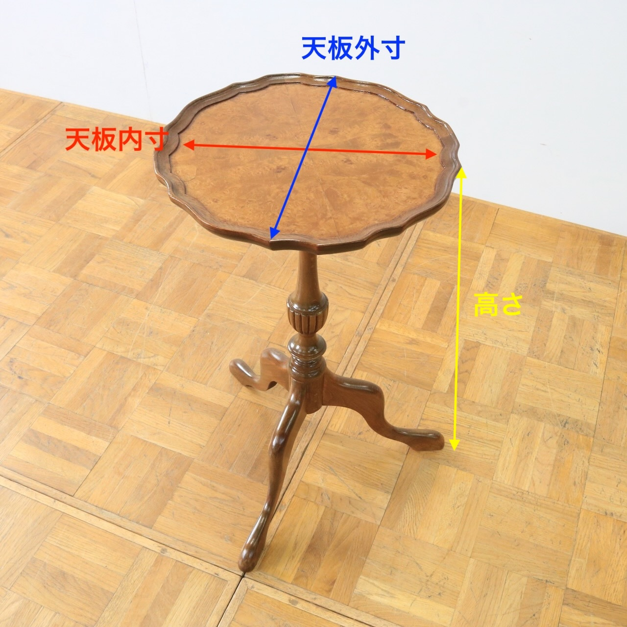 年代は比較的新しいですが、ウォールナットの木目が美しく、フリルのような天板縁の意匠が印象的。