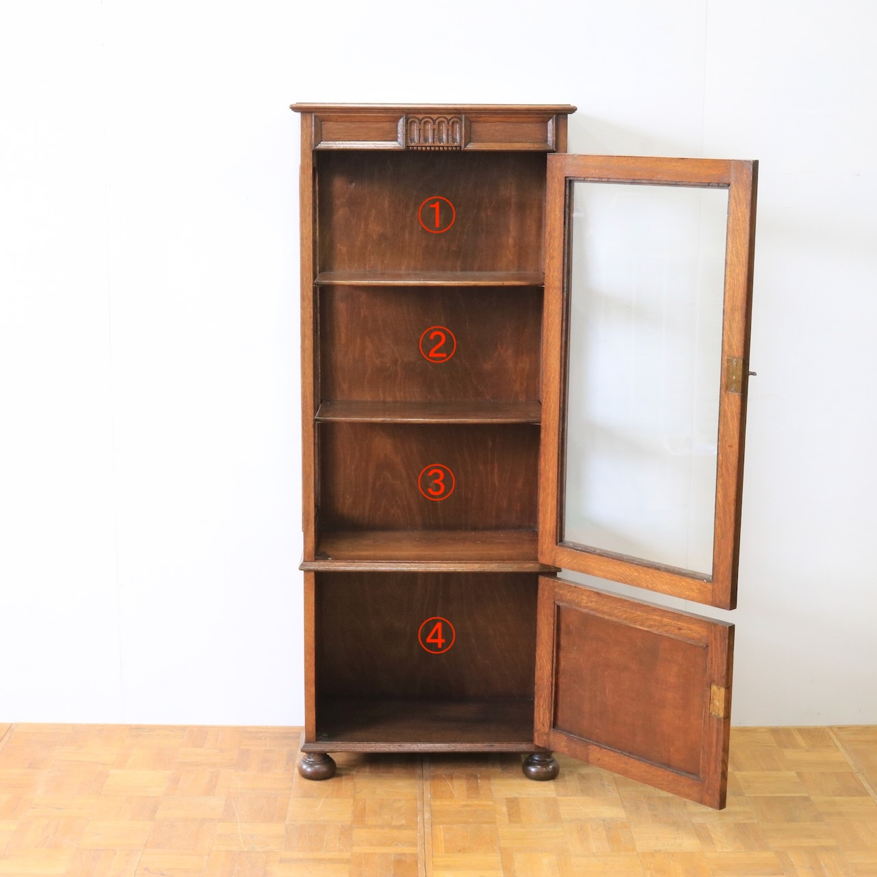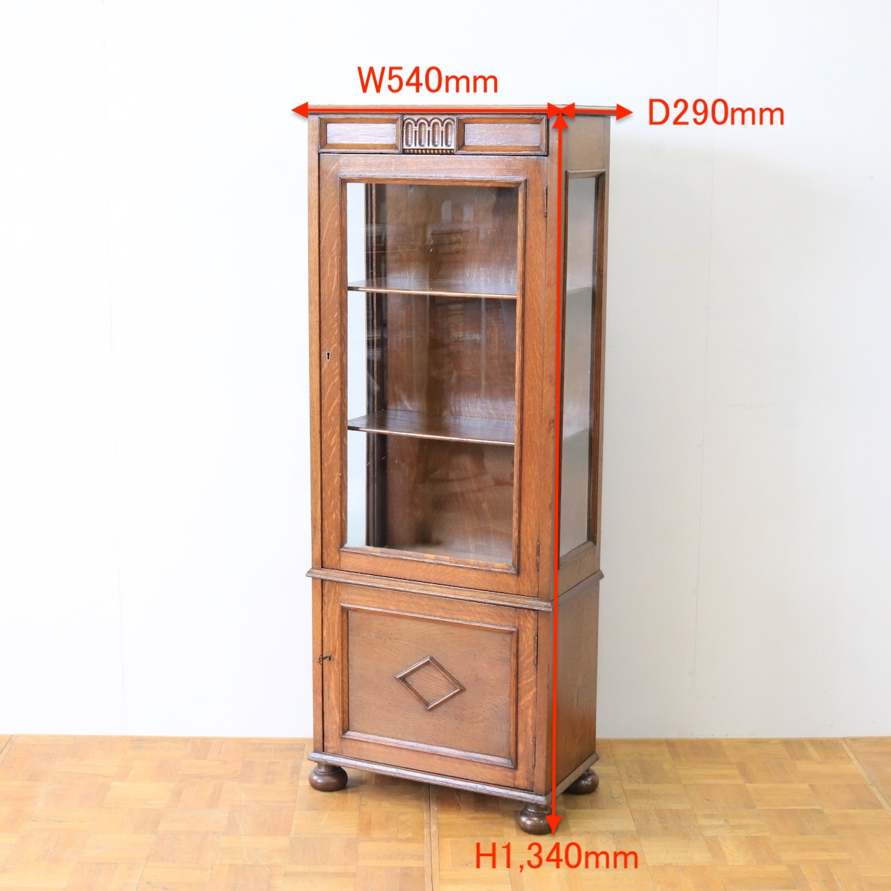 無駄のない収納力と、オーク材の素朴な雰囲気を生かしたシンプルなデザインが魅力的。クラシックな建築のピラーや窓を思わせるワンポイントの装飾が個性を添えています。