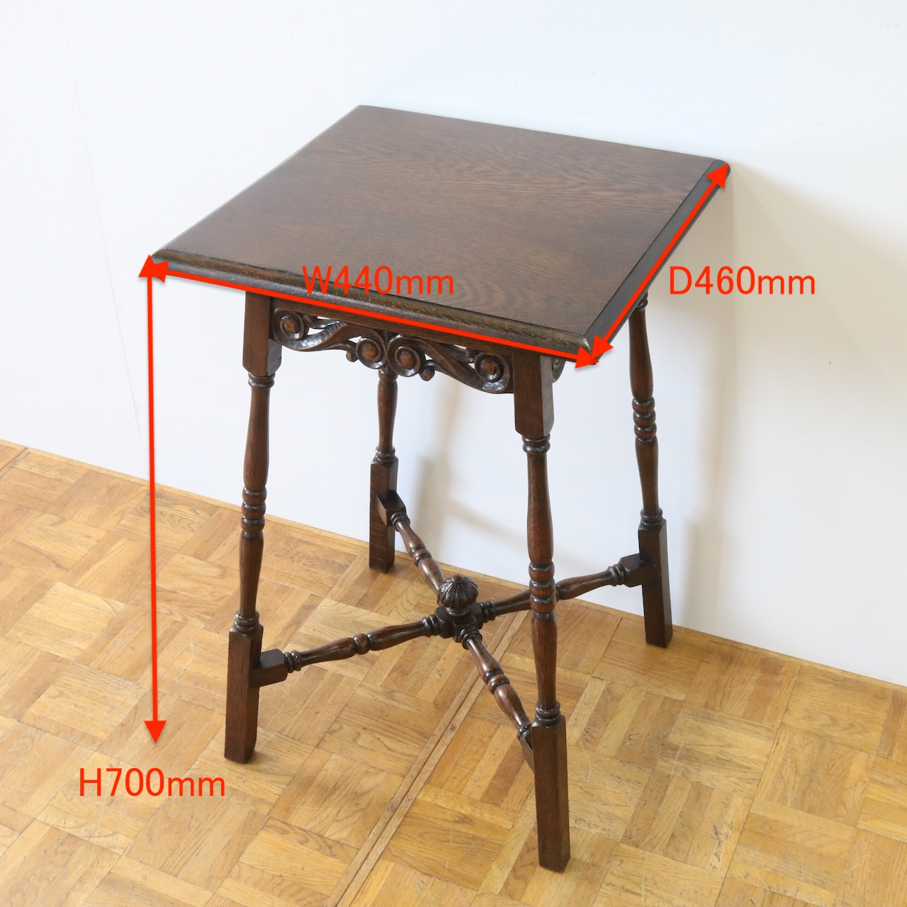 幕板や脚部、ストレッチャーに手の込んだ装飾が施され、アンティークらしい風格のあるひと品。
