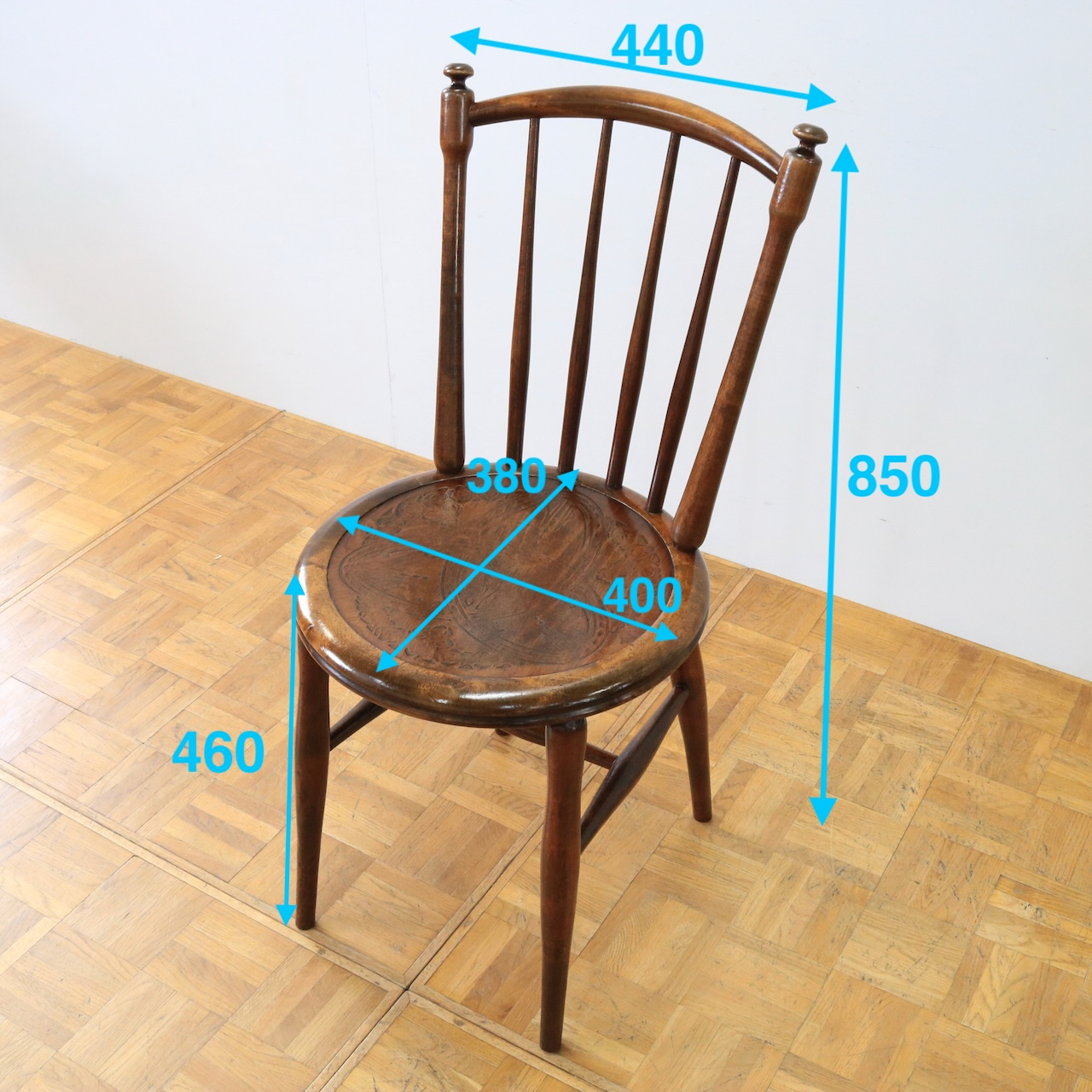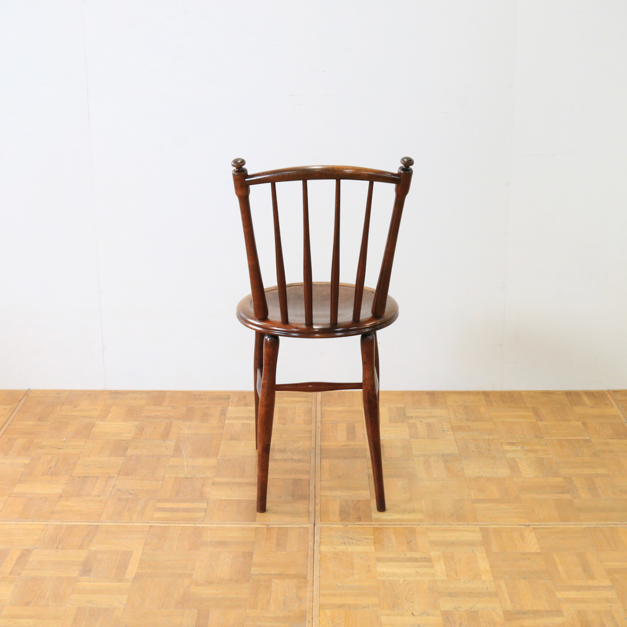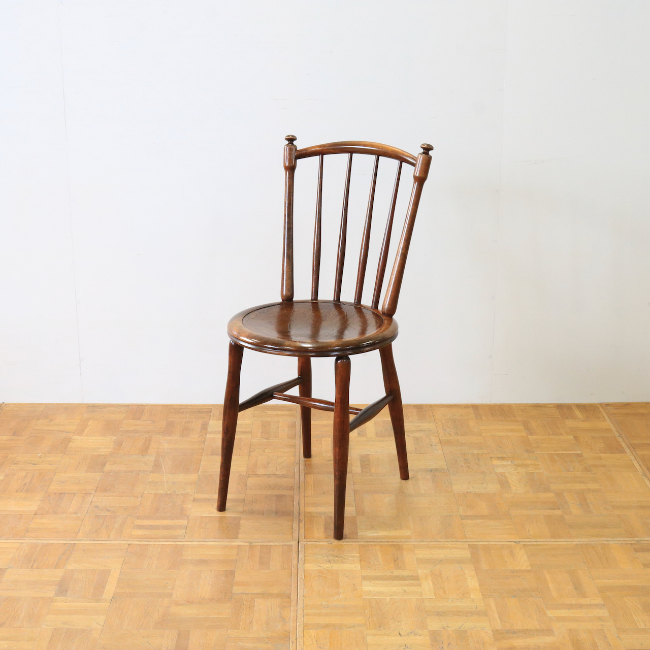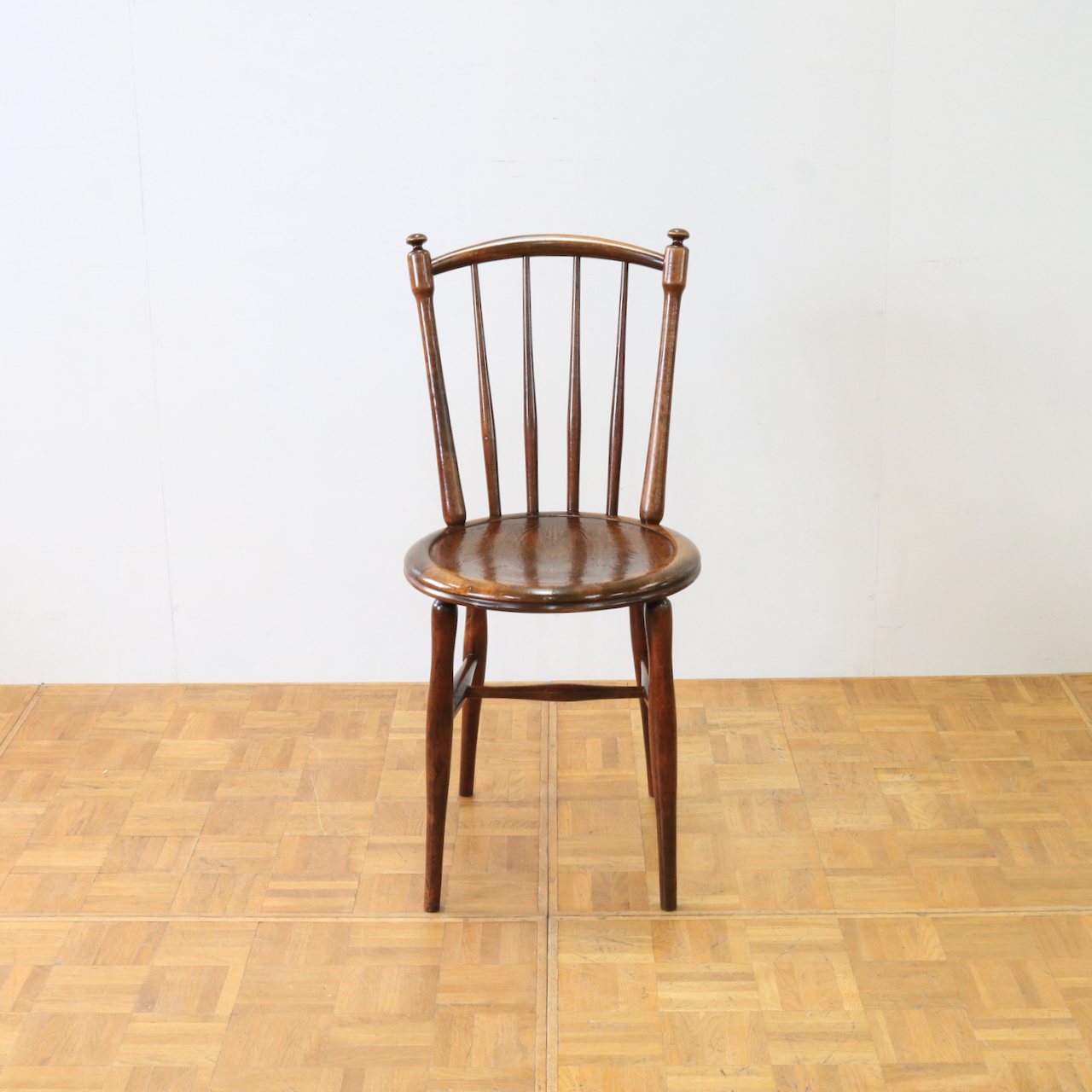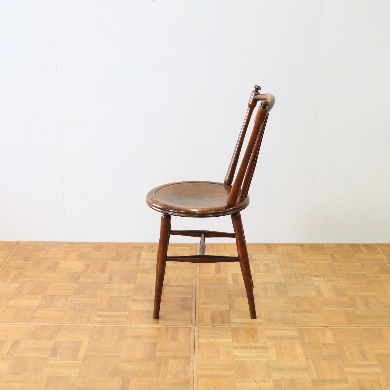 コームバックの背もたれと個性的なシートのエンボス加工が目を惹く、アンティークのベントウッドチェアーです。