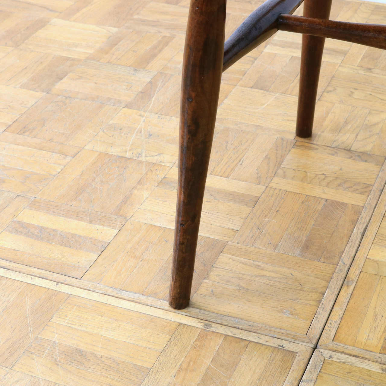 使い込まれて角が取れた座面の縁が、太ももの裏に優しくフィットし、快適な座り心地をもたらします。