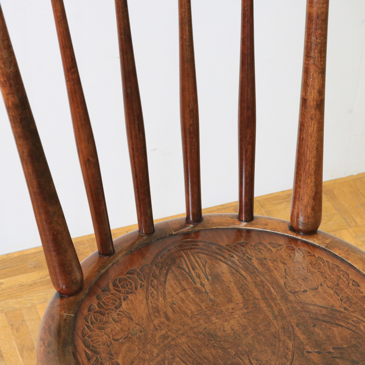 こちらの椅子では美しい装飾が艶やかな木肌に浮かび上がり、アンティークならではの味わい深い魅力を放っています。
