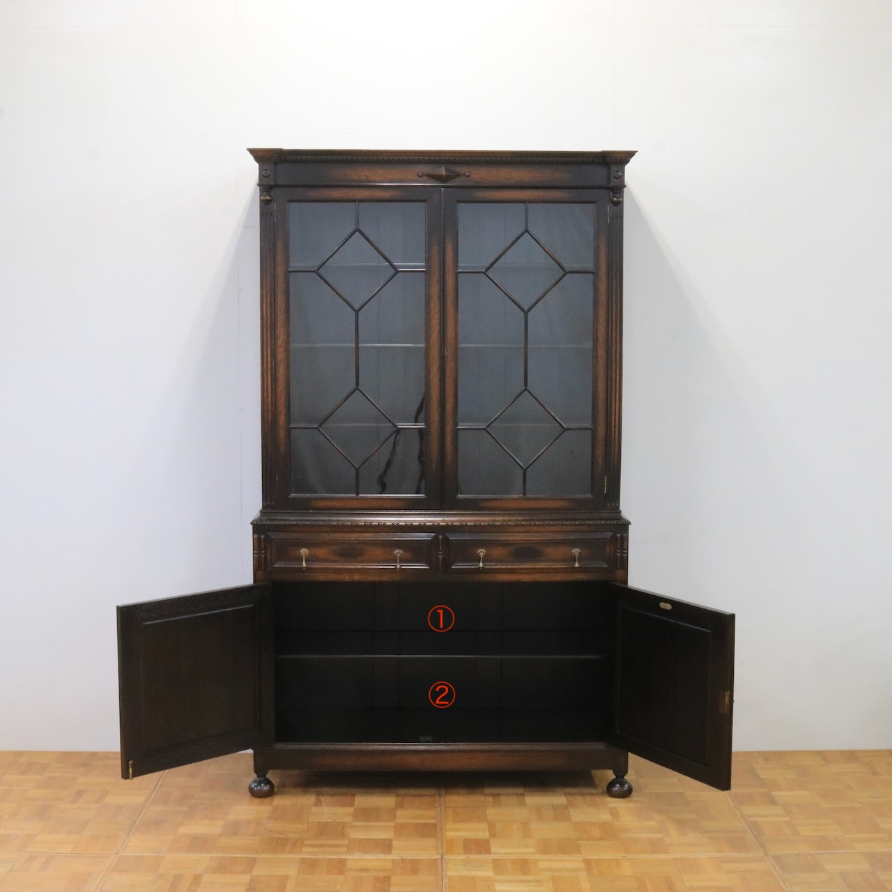 ガラス扉、引き出し、パネル扉が施され整理しやすいデザイン。重厚な美しさだければ無く機能性も兼ね備えています。