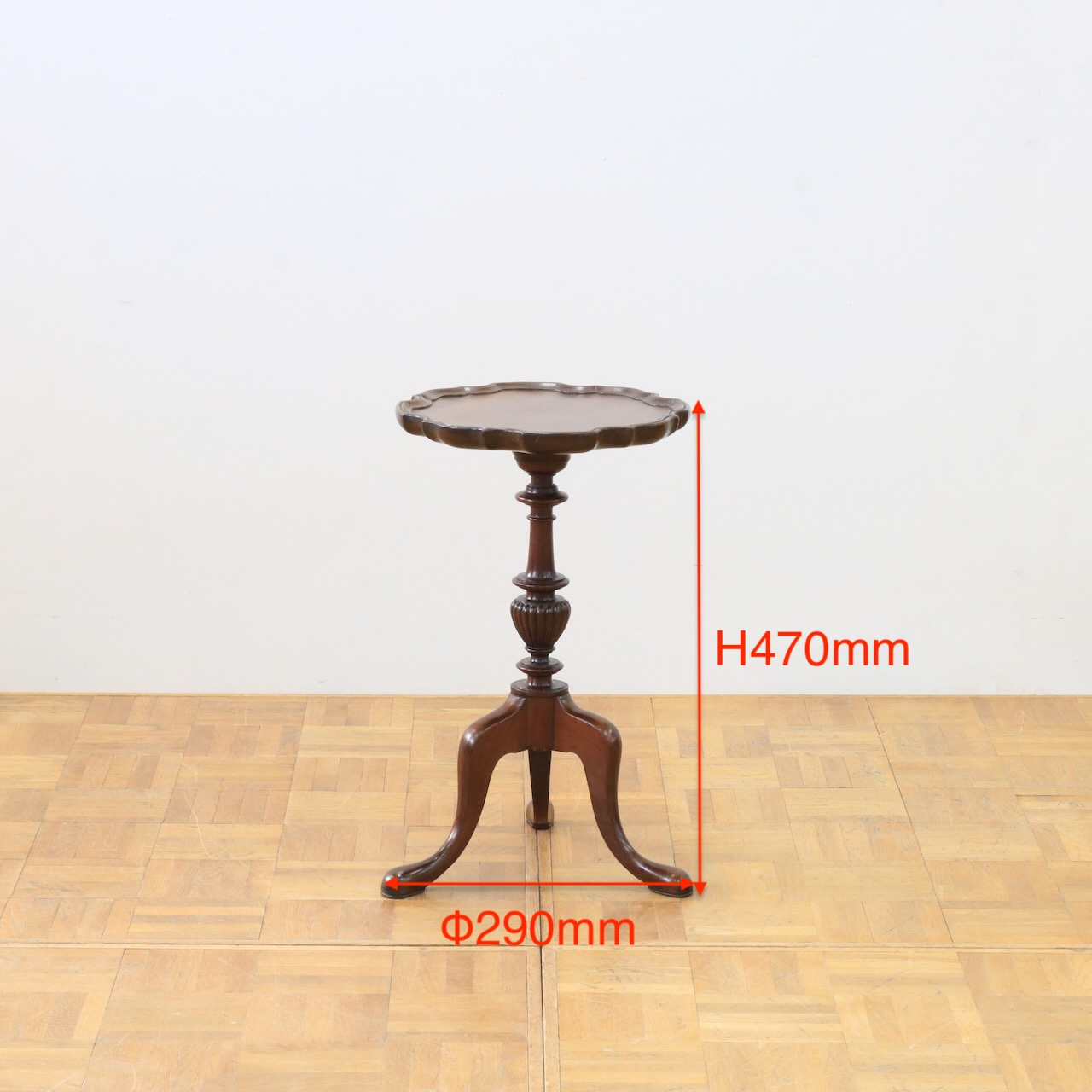 配送料の目安 ▶︎1920年代、マホガニーのワインテーブル。パイクラストの天板縁、トライポッドの脚元など、小さいながらもクラシックなデザインが美しい佇まいです。