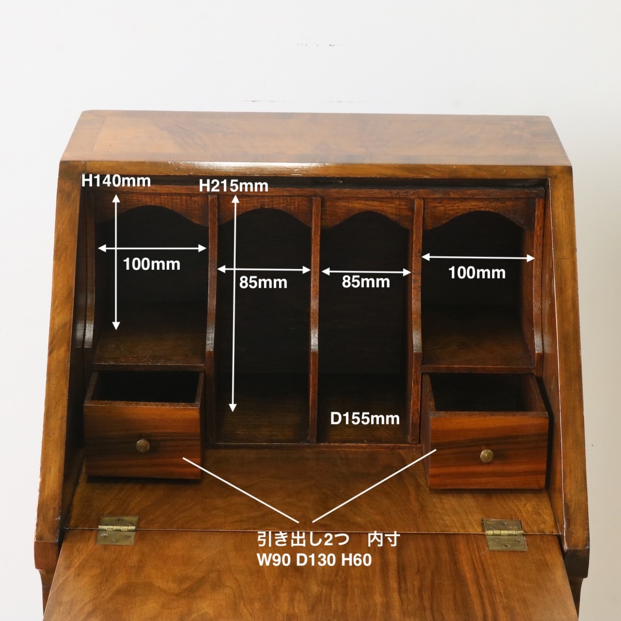 デスク面はフラット。シンプルなピジョンボックスにかけて、コンパクトで可愛らしくまとまっています。