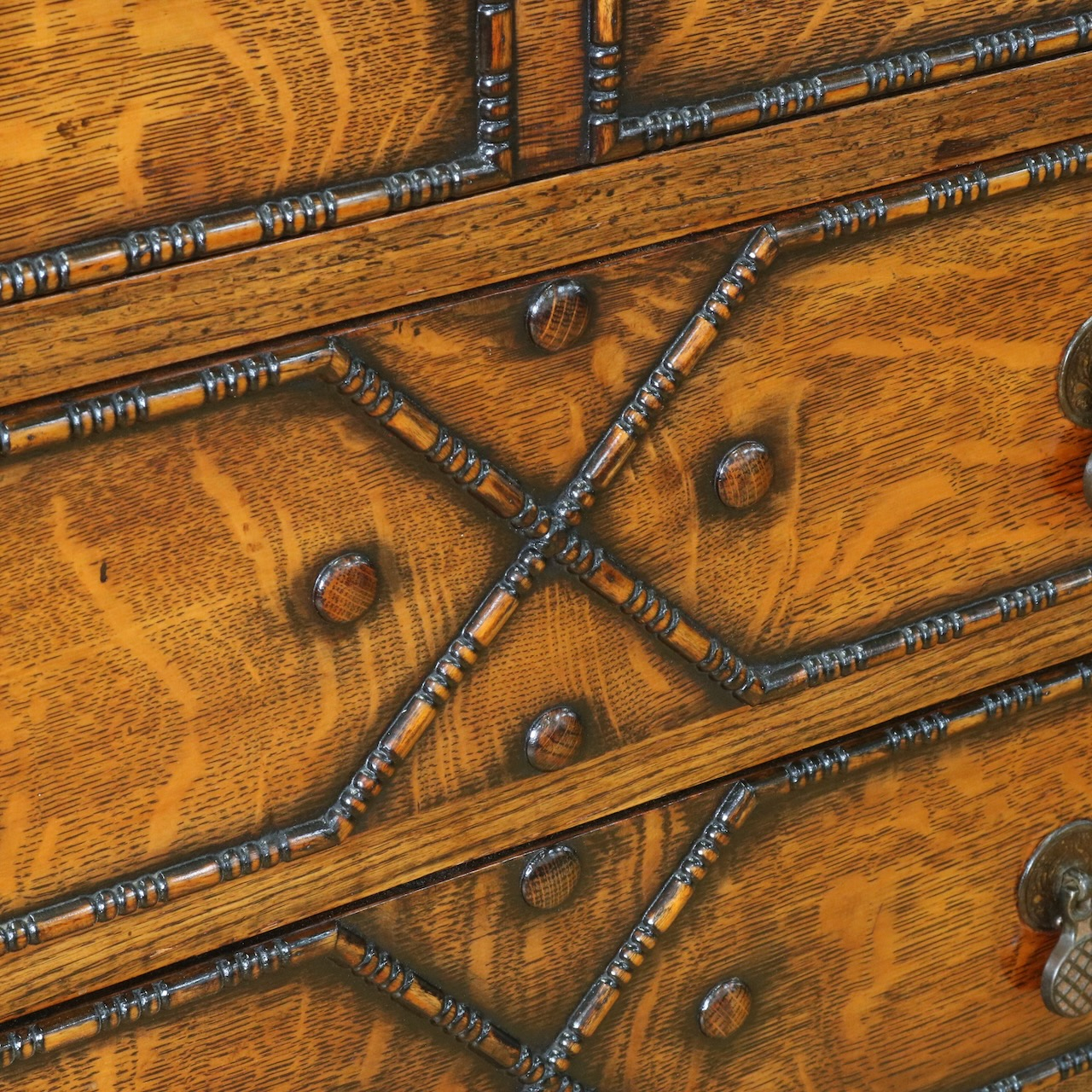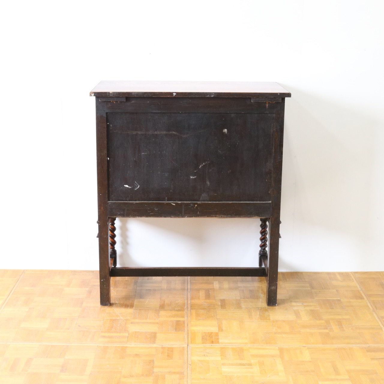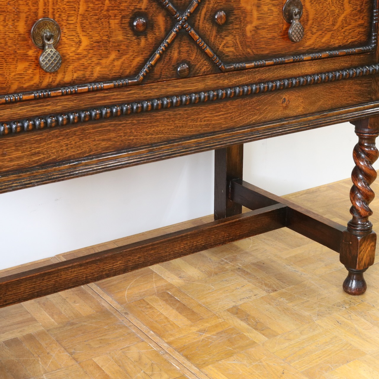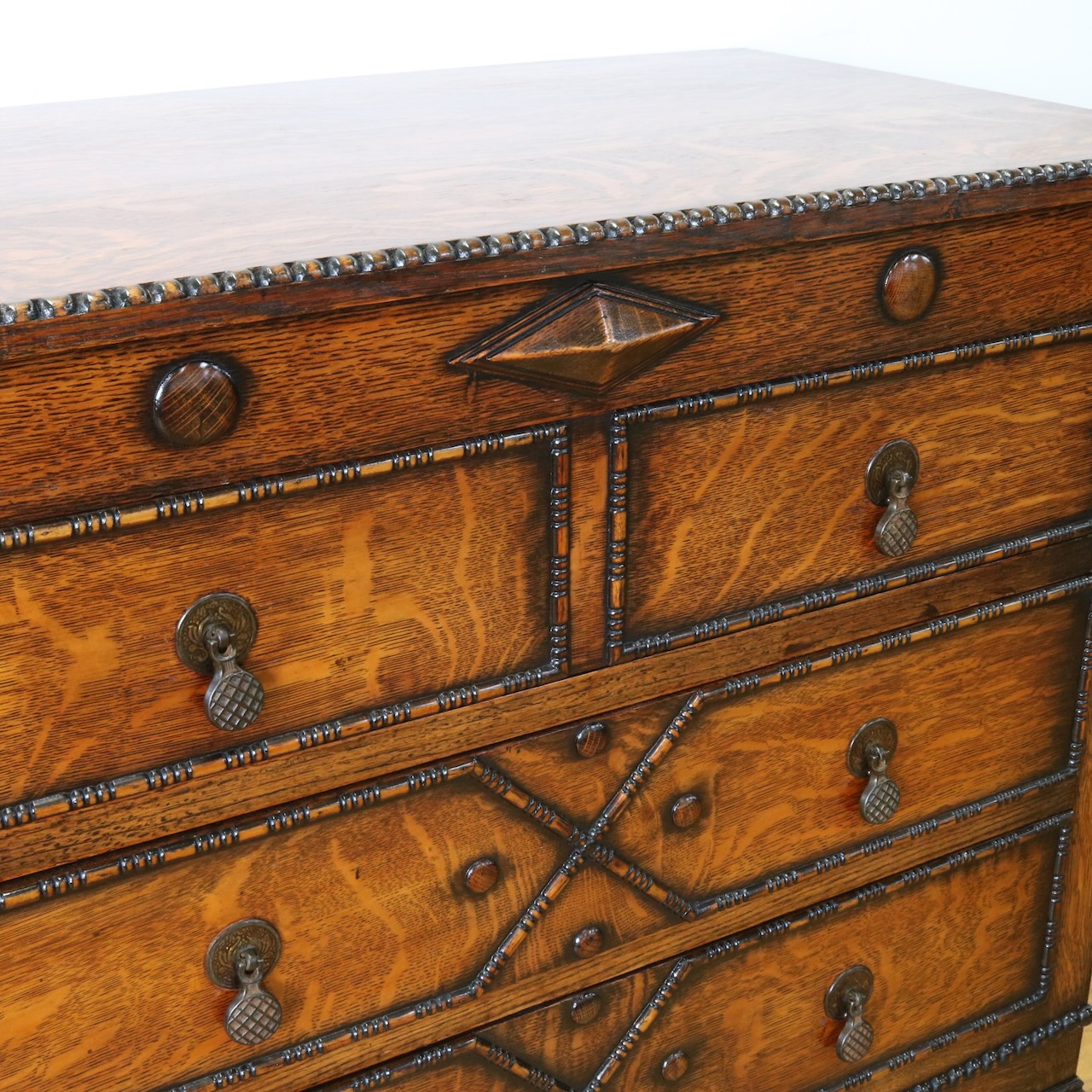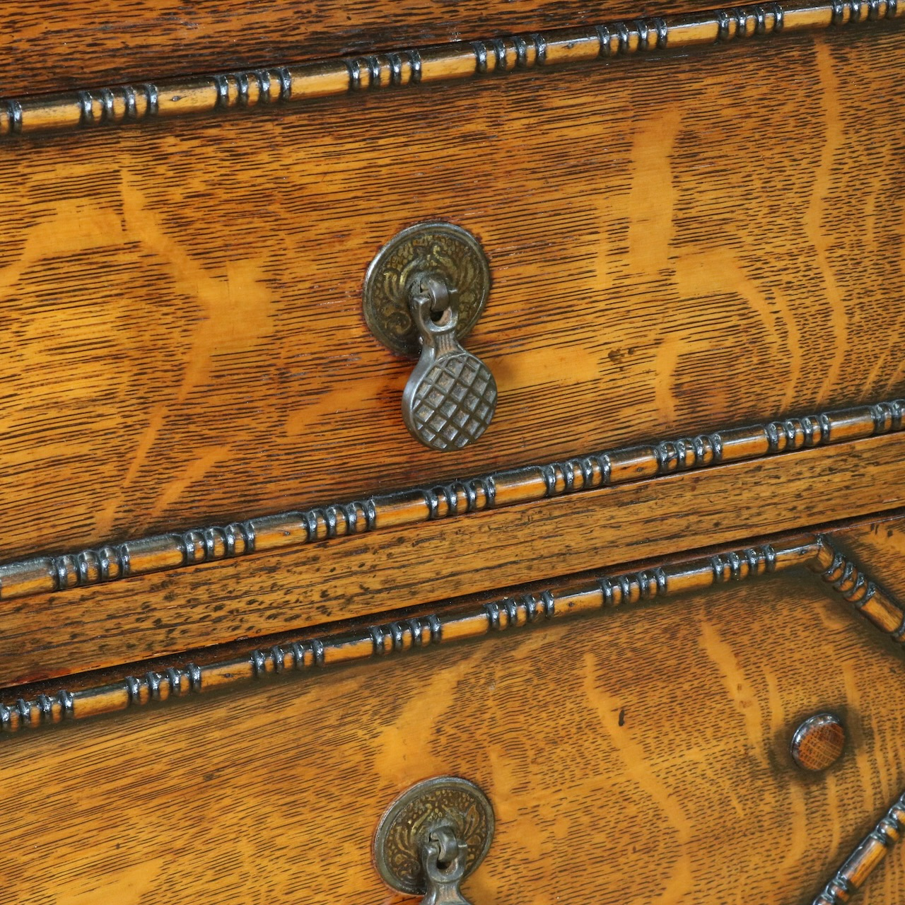 1930年代、オーク材のチェストオブドロワーズ。重厚なオーク材の質感が際立つ、アンティークならではの魅力を放つ逸品です。挽物(ツイストレッグ)の脚も全体のデザインに優雅さを加えており、長い年月を経て培われた風合いがお部屋に深みを与えます。