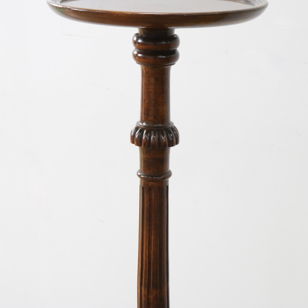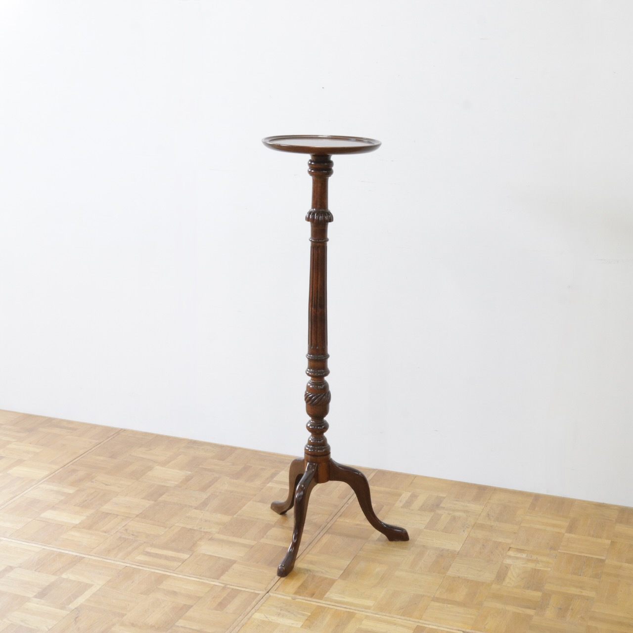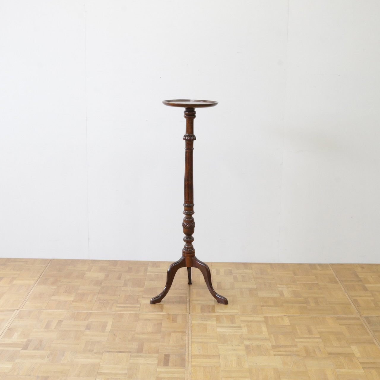 1920年代、マホガニーのプランツスタンドです。スッキリとしたコラムの柱から伸びる脚はトライポッド。お部屋のコーナーや家具の横でグリーンを置いてお部屋のアクセントに!
