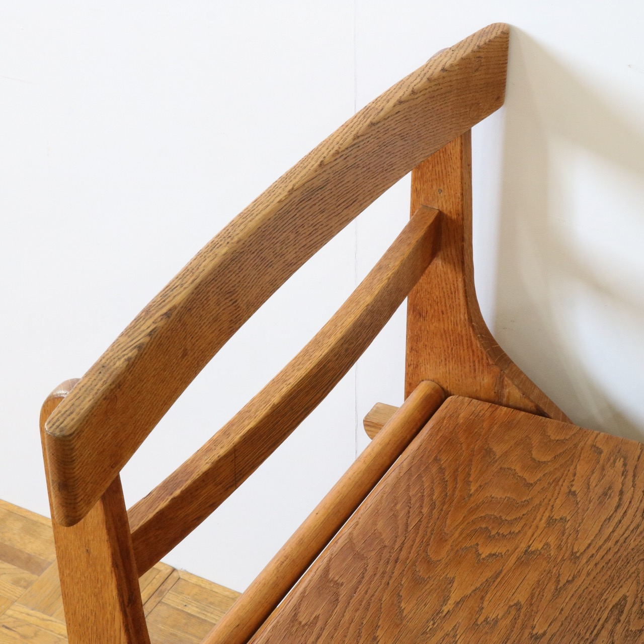 折り畳み式の構造や背もたれのデザインなどは教会にあるチャーチベンチらしさも感じられます。