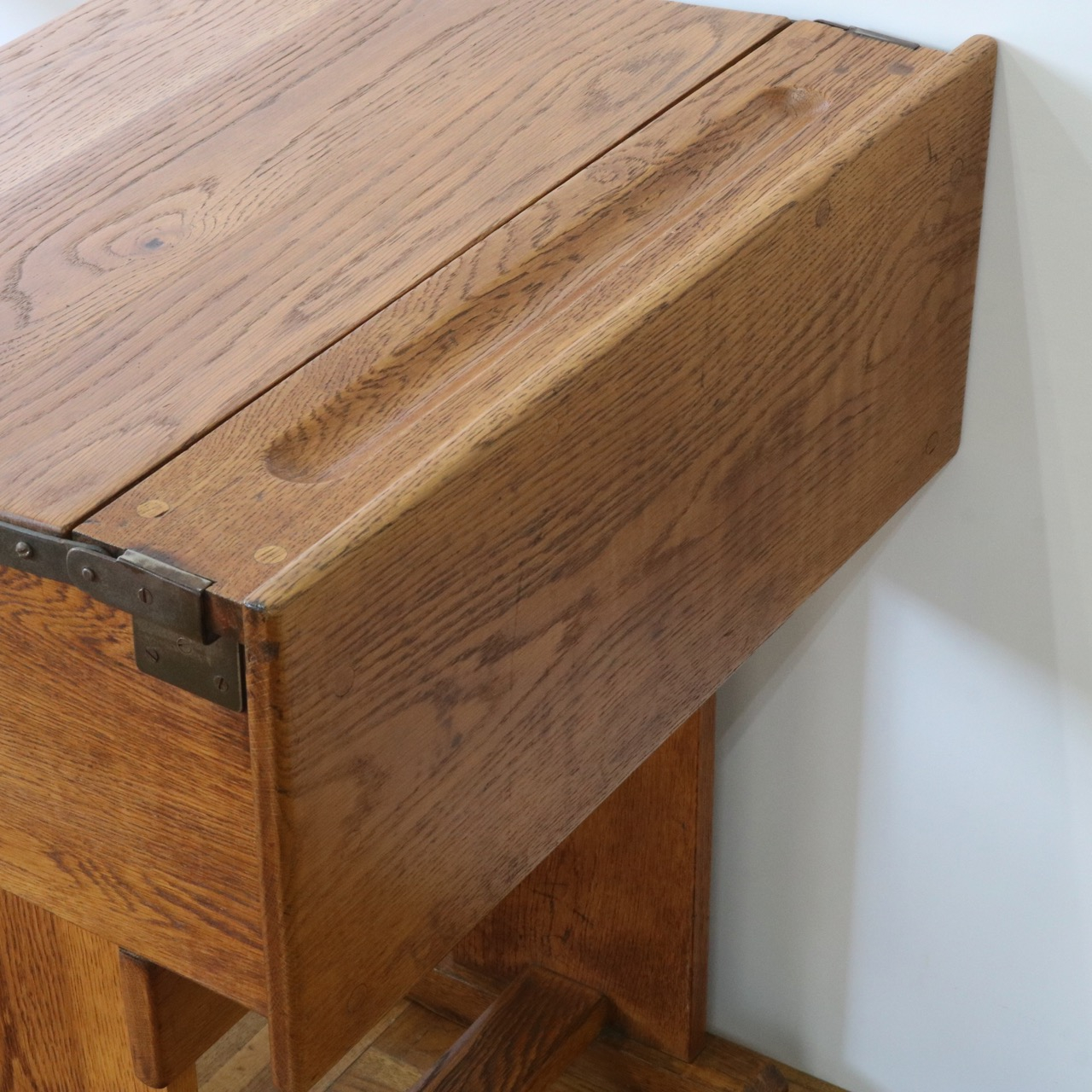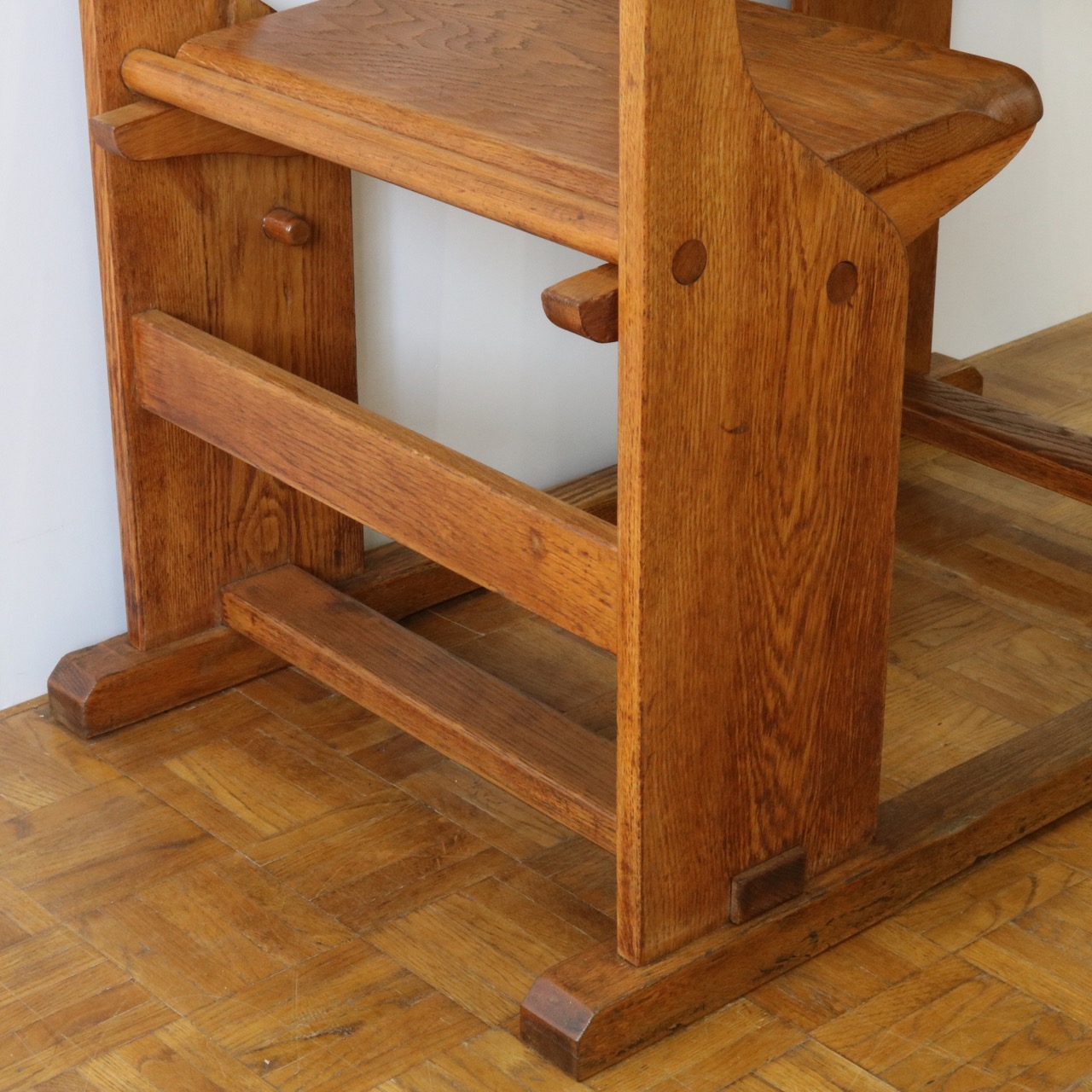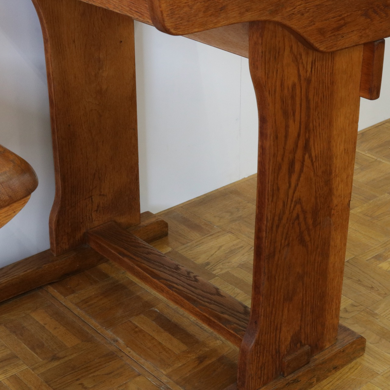 脚元。前後のストレッチャーでで机と一体になっています。