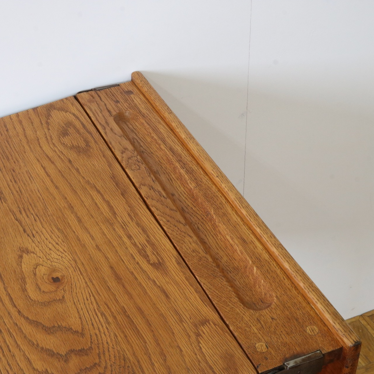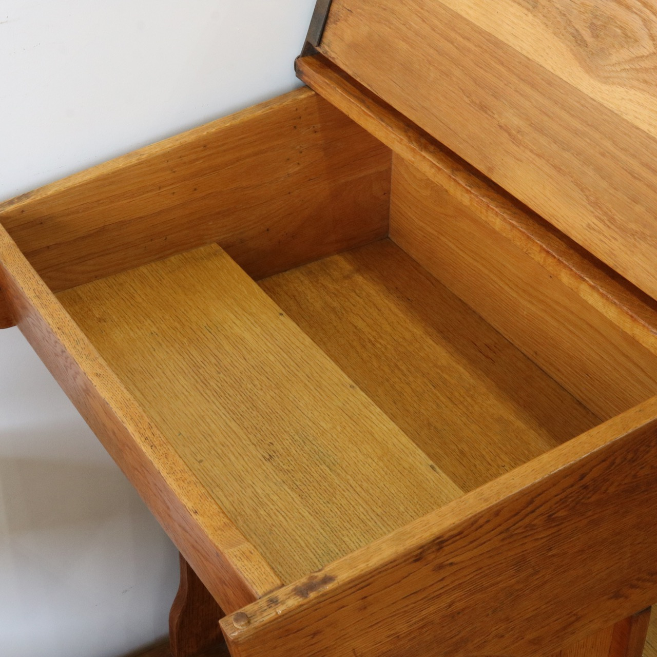 収納蓋にもなっている天板はライトオークで素朴な風合い。
