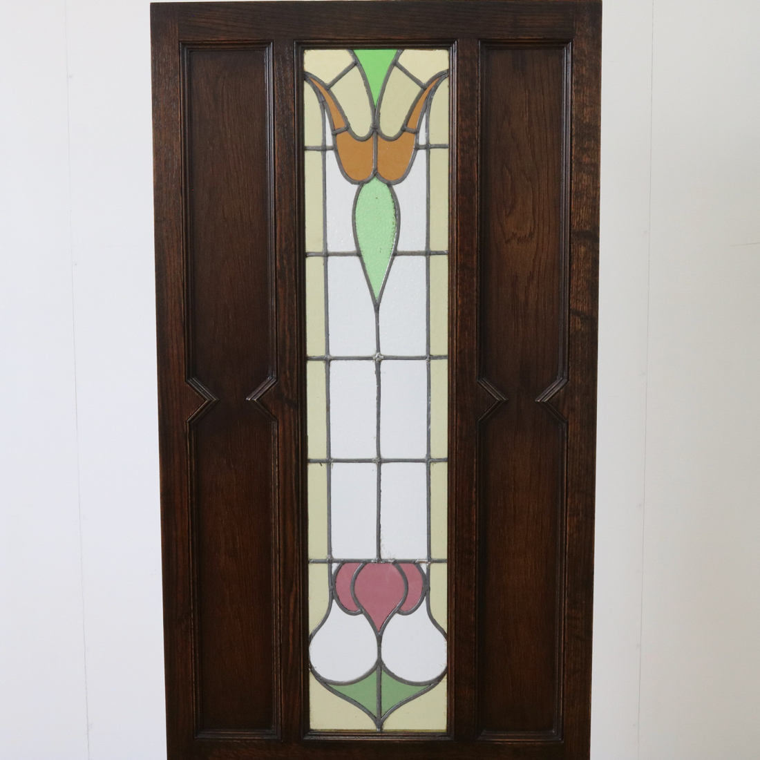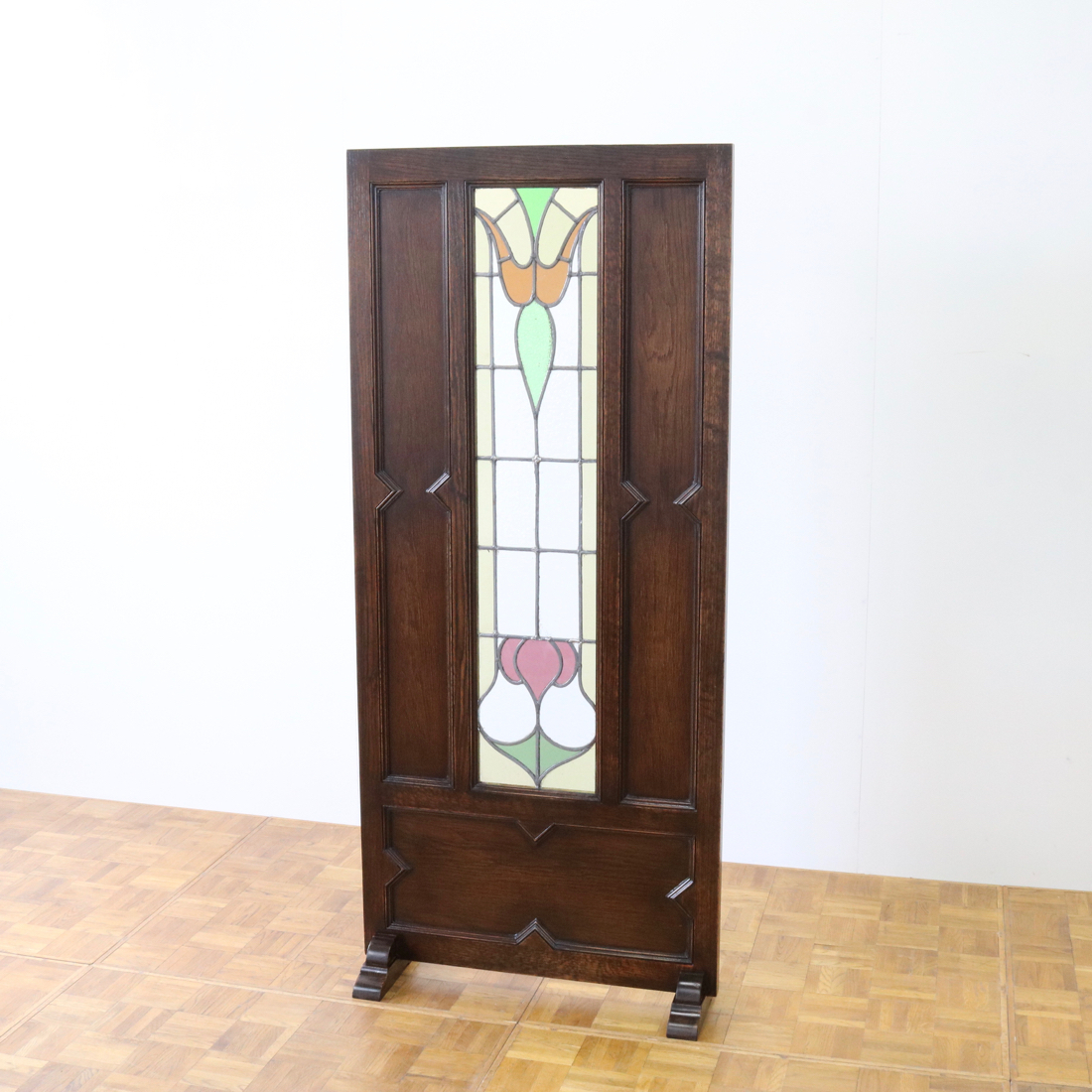 アンティークのステンドグラスを生かして、木部を製作しました。