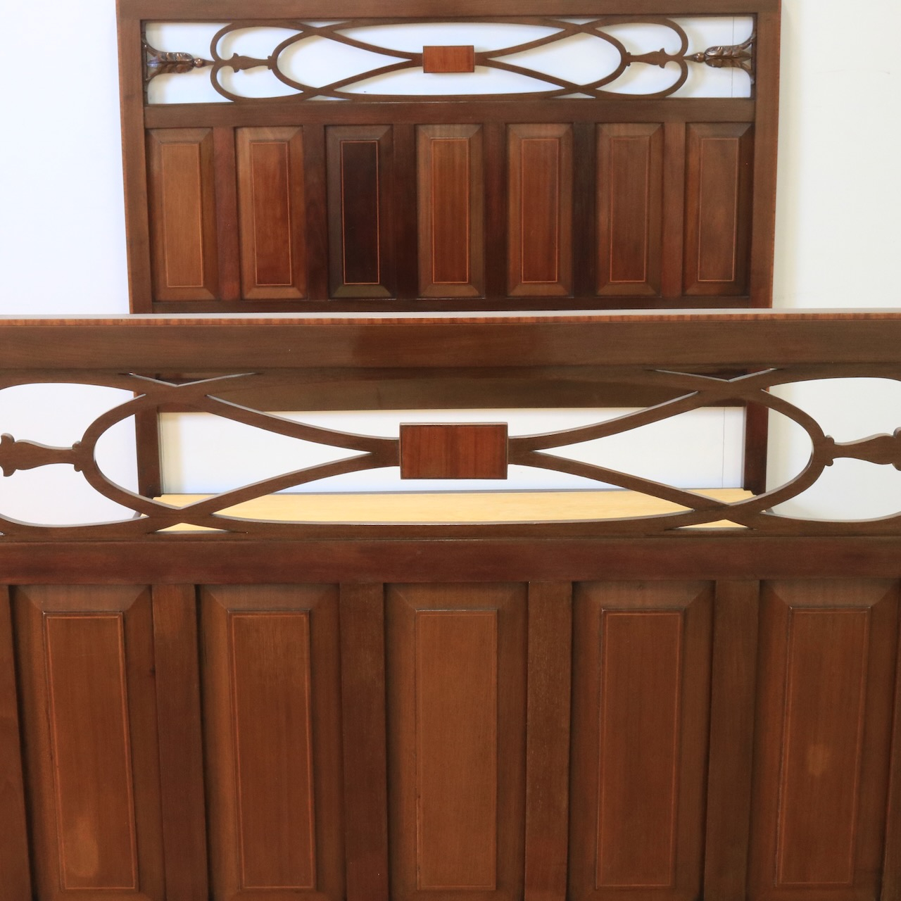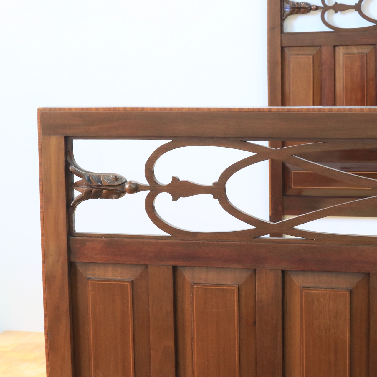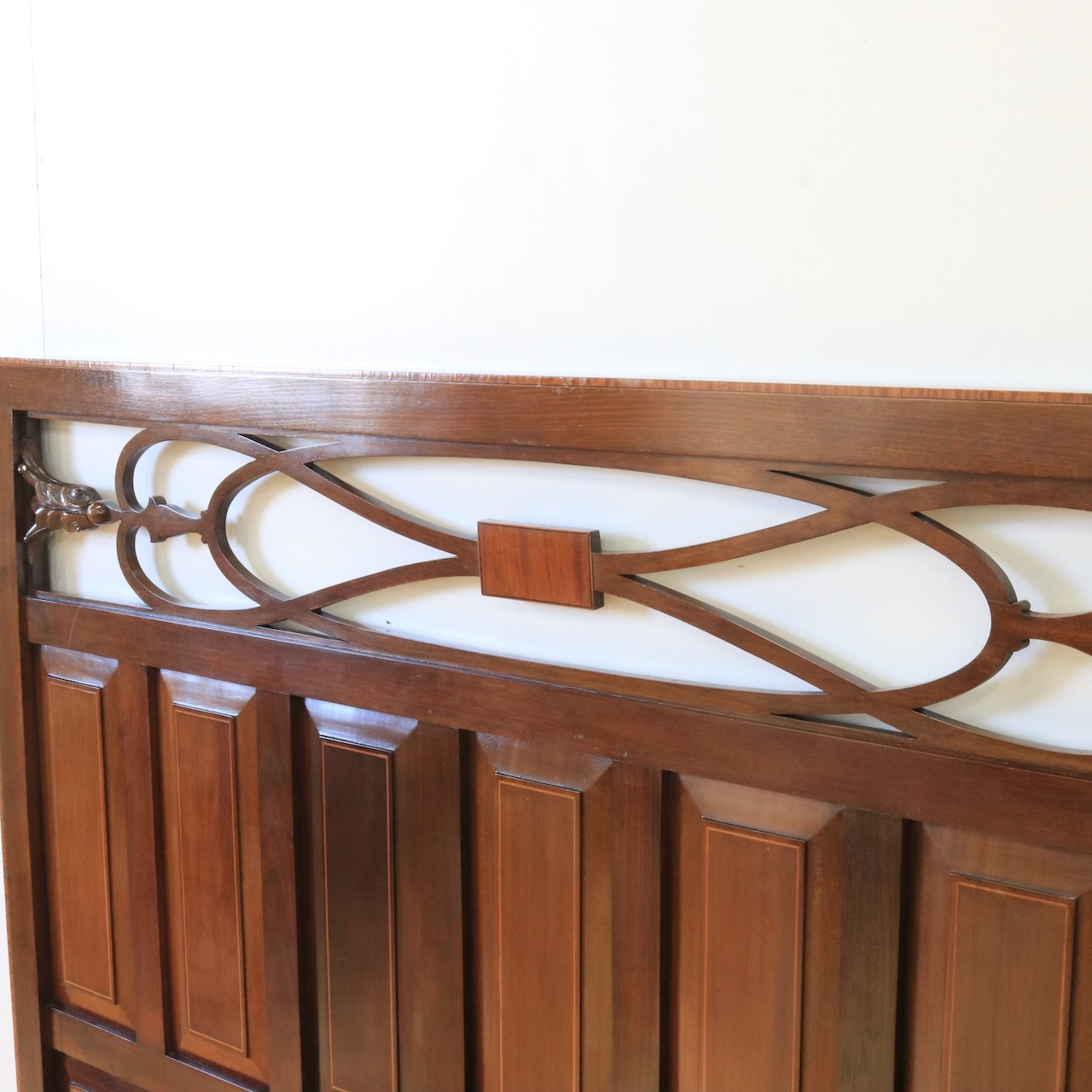 丁寧に面取りされたパネルが並び、一つ一つに色の明るい材でインレイ装飾が施されています。
