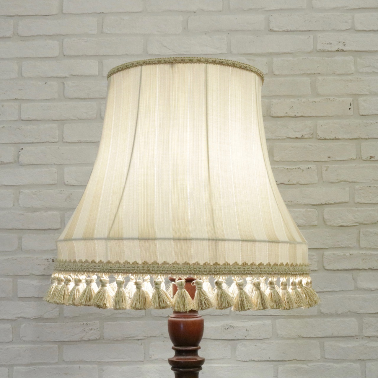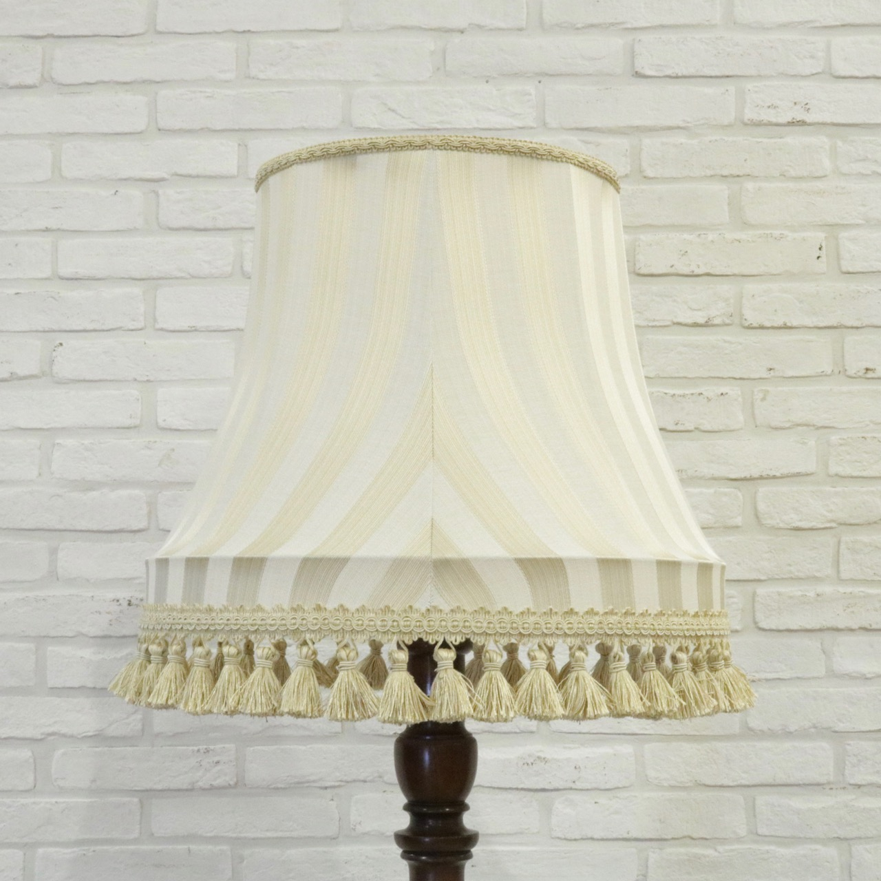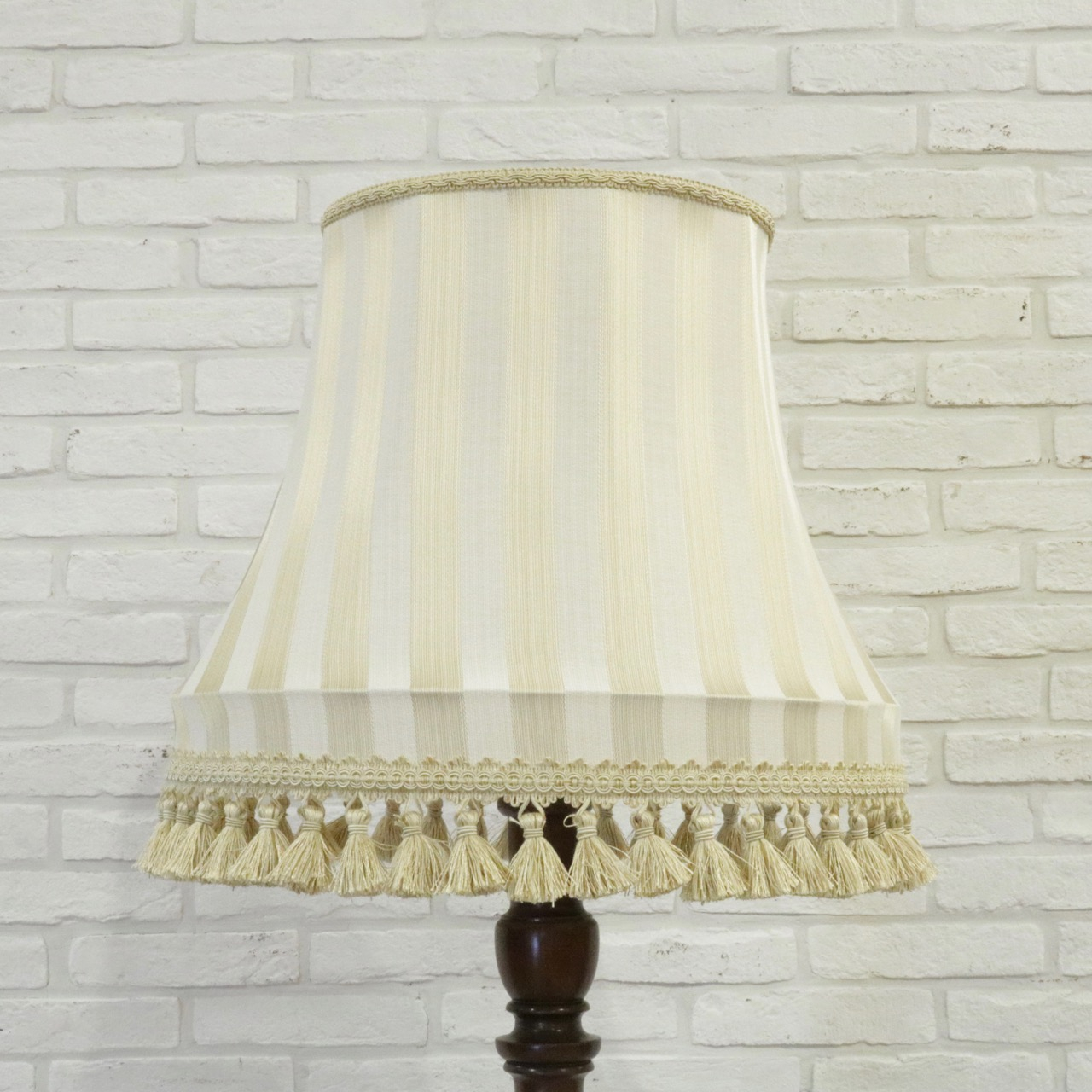 少し光沢のあるゴールド系のストライプ生地で製作したランプシェードです。