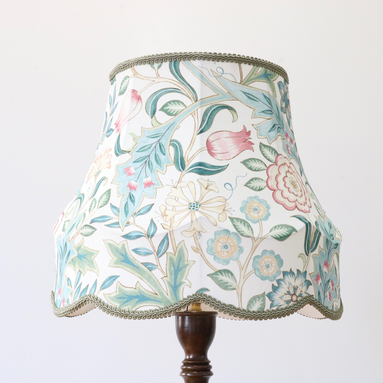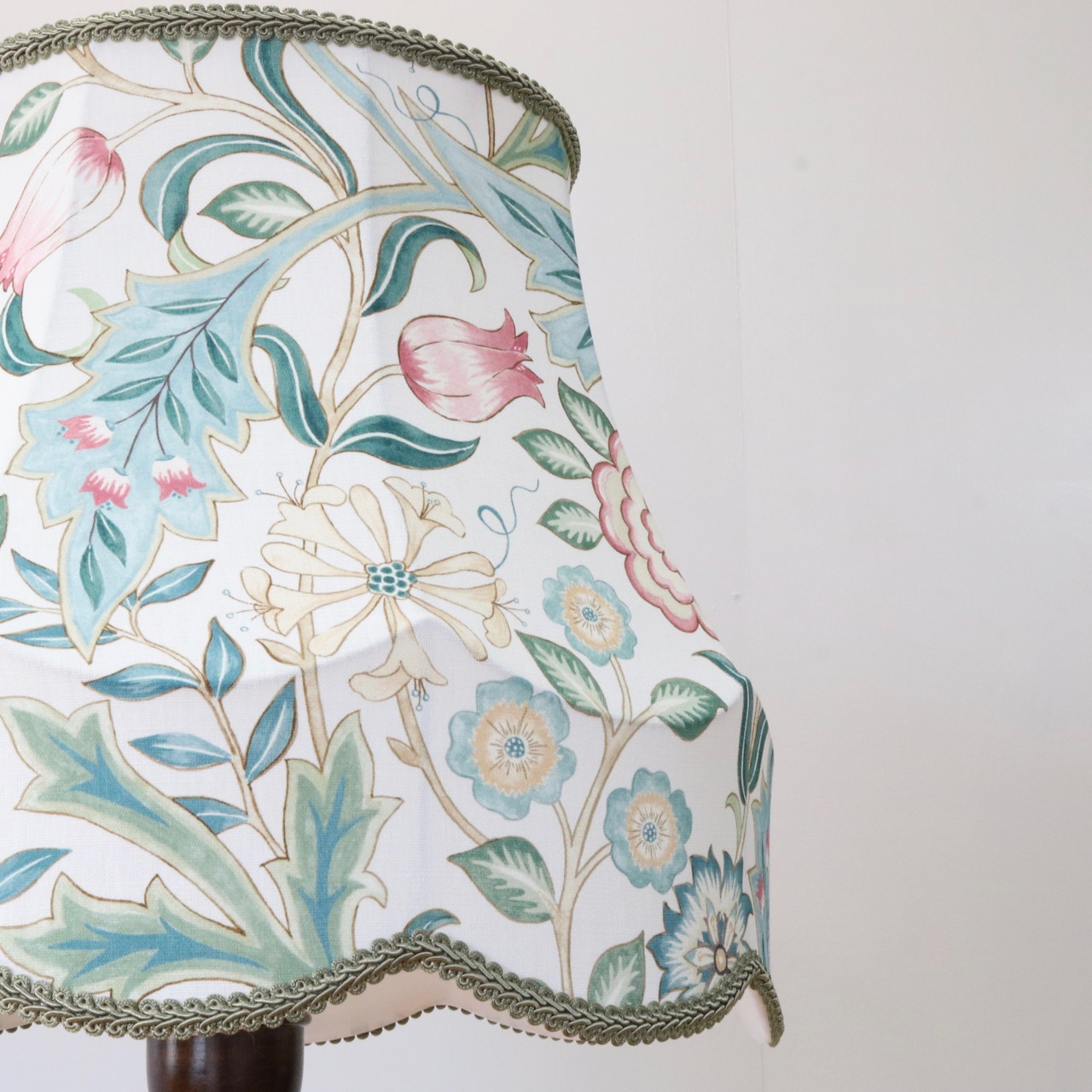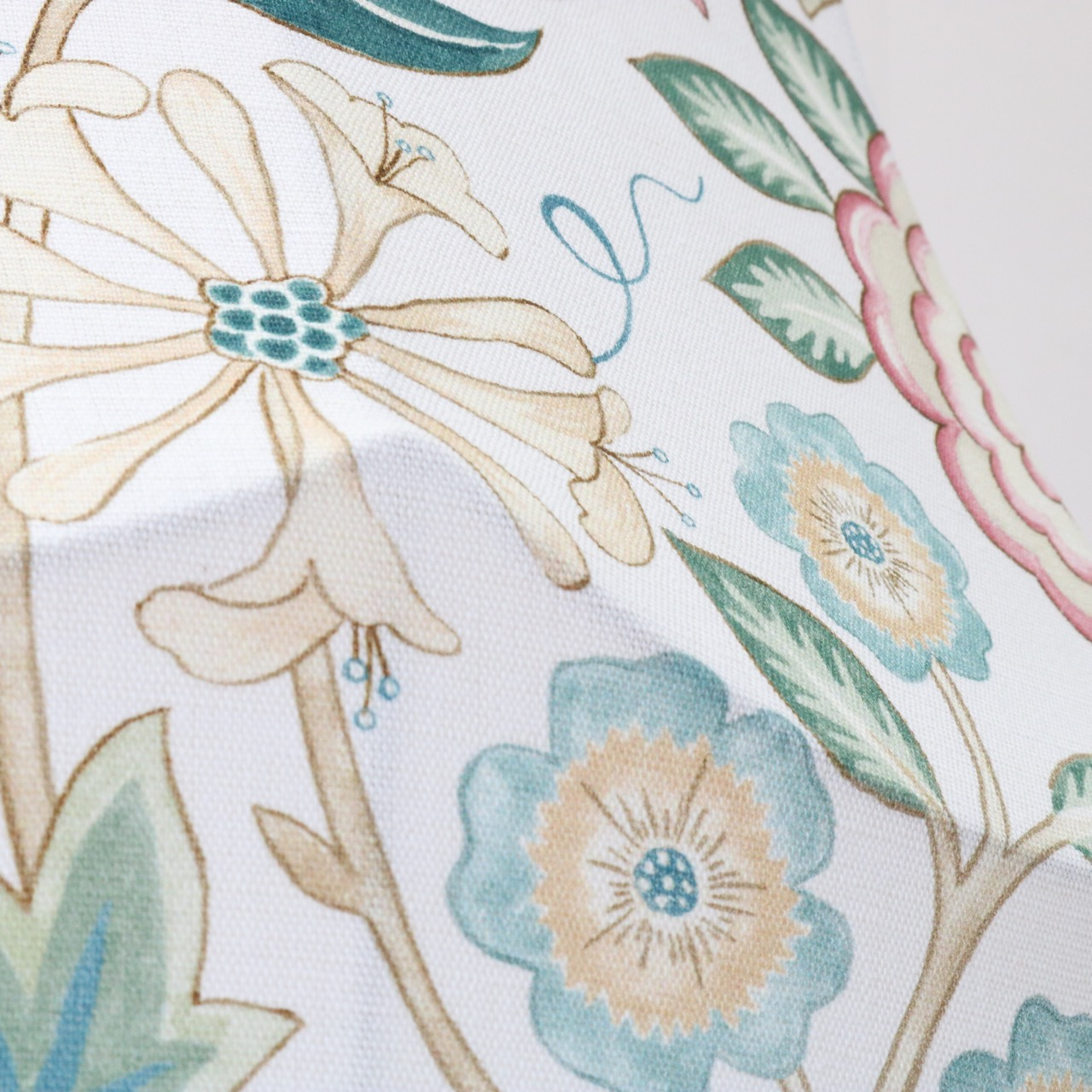 1870年と1880年にウィリアム・モリスによって作られたふたつの刺繍作品それぞれの要素を組み合わせ、デザインされた「wilhelmina」。オフホワイト地にアカンサスの葉やハニーサックルなどの植物がともに描かれデコラティブ。淡い配色が美しく、インテリアに華を添えます。