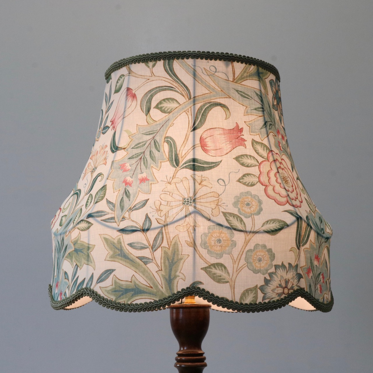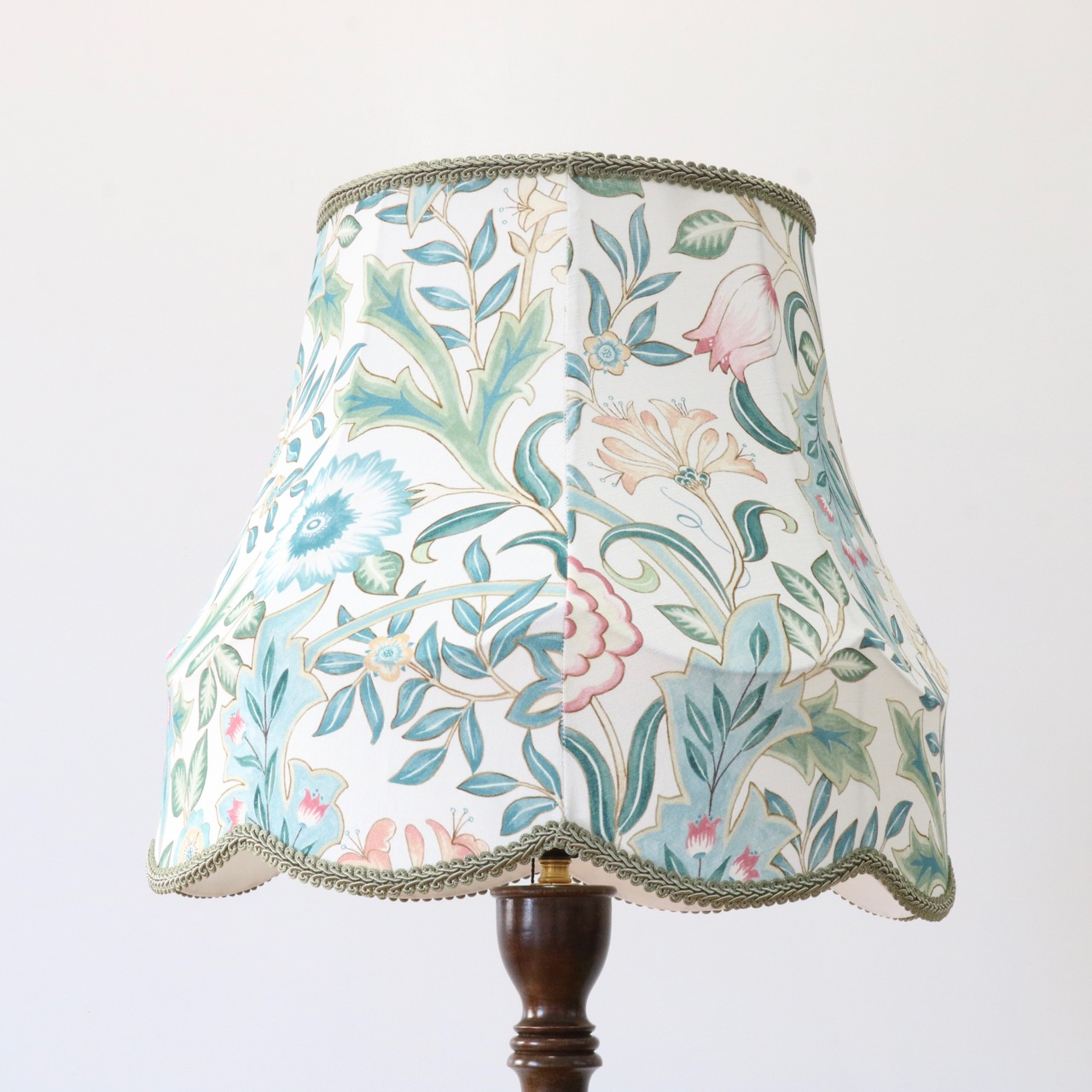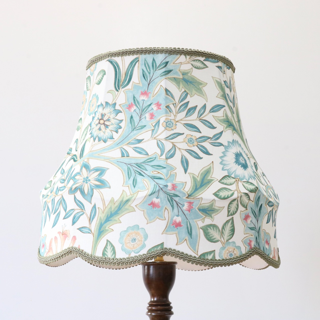 1870年と1880年にウィリアム・モリスによって作られたふたつの刺繍作品それぞれの要素を組み合わせ、デザインされた「wilhelmina」。オフホワイト地にアカンサスの葉やハニーサックルなどの植物がともに描かれデコラティブ。淡い配色が美しく、インテリアに華を添えます。