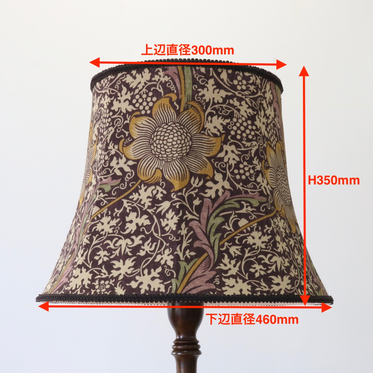 ウィリアム・モリスの「Kennet」のテキスタイルを用いて製作したランプシェードです。