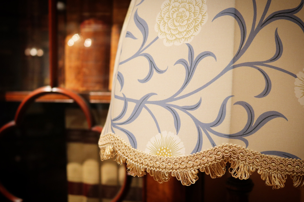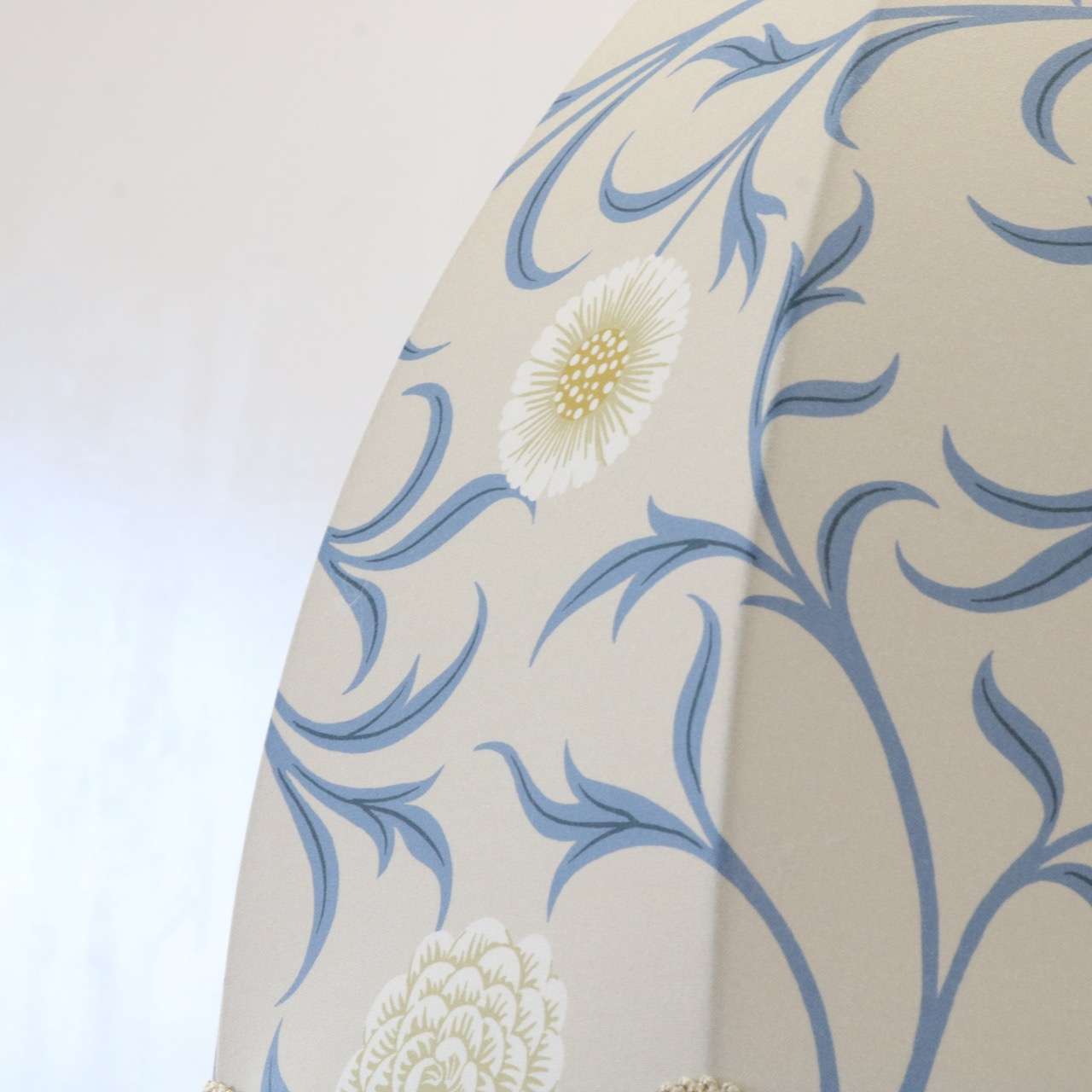 ウィリアム・モリス「Scroll」のテキスタイルを用いて製作したランプシェードです。