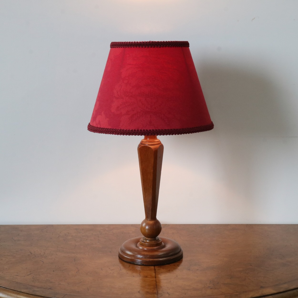 シックな赤色のダマスク柄ファブリックを用いて製作したランプシェード。