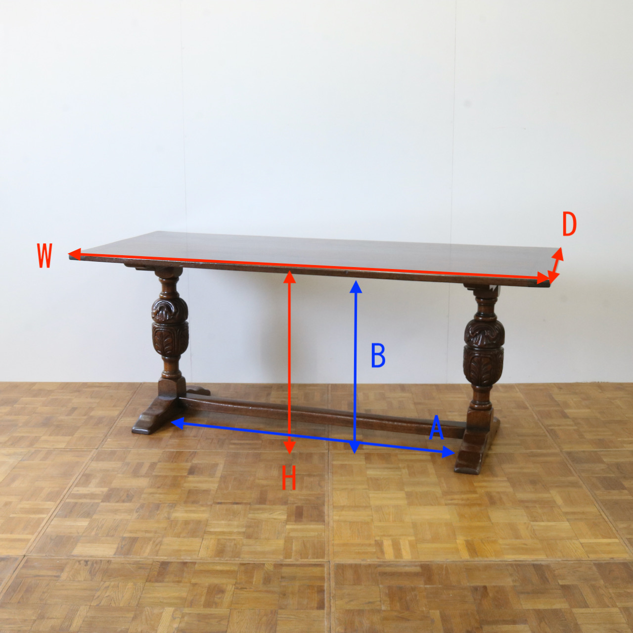 A:脚の間W1230 B:天板下H710