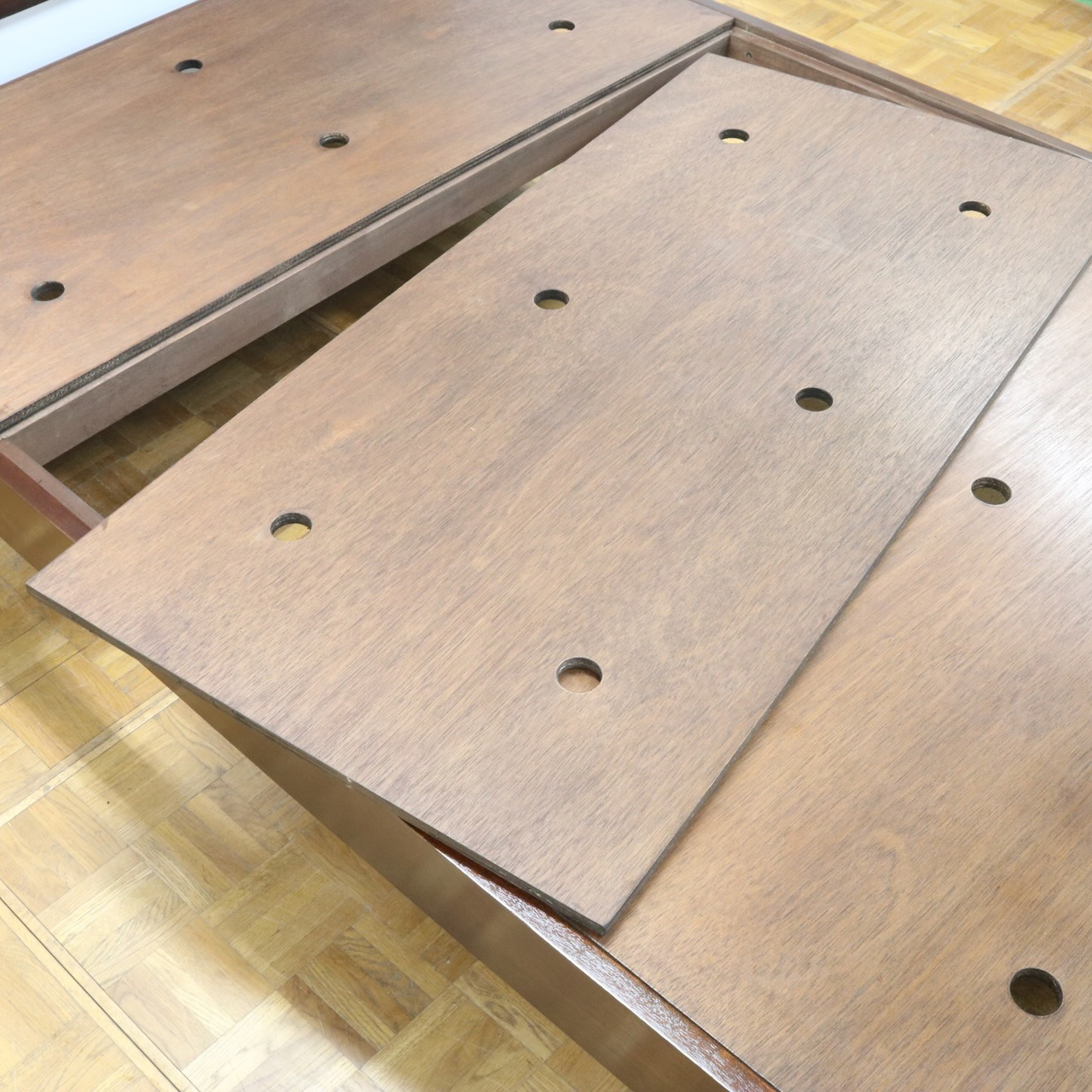 ヘットボード、フットボード、サイドレール2本、すのこ板3枚を組み立てています。