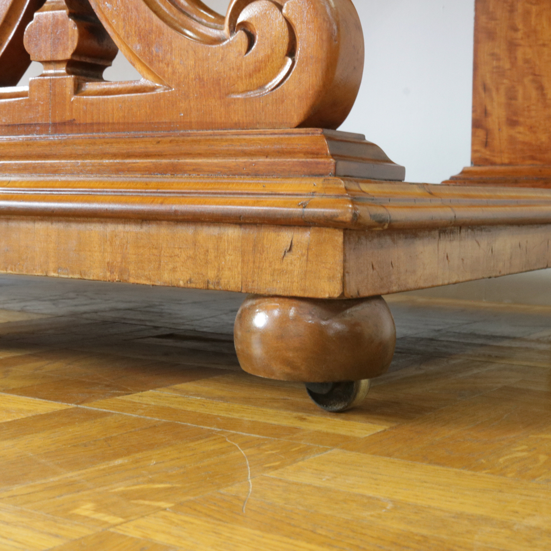中央引き出しの下にはアカンサスと花のレリーフが。