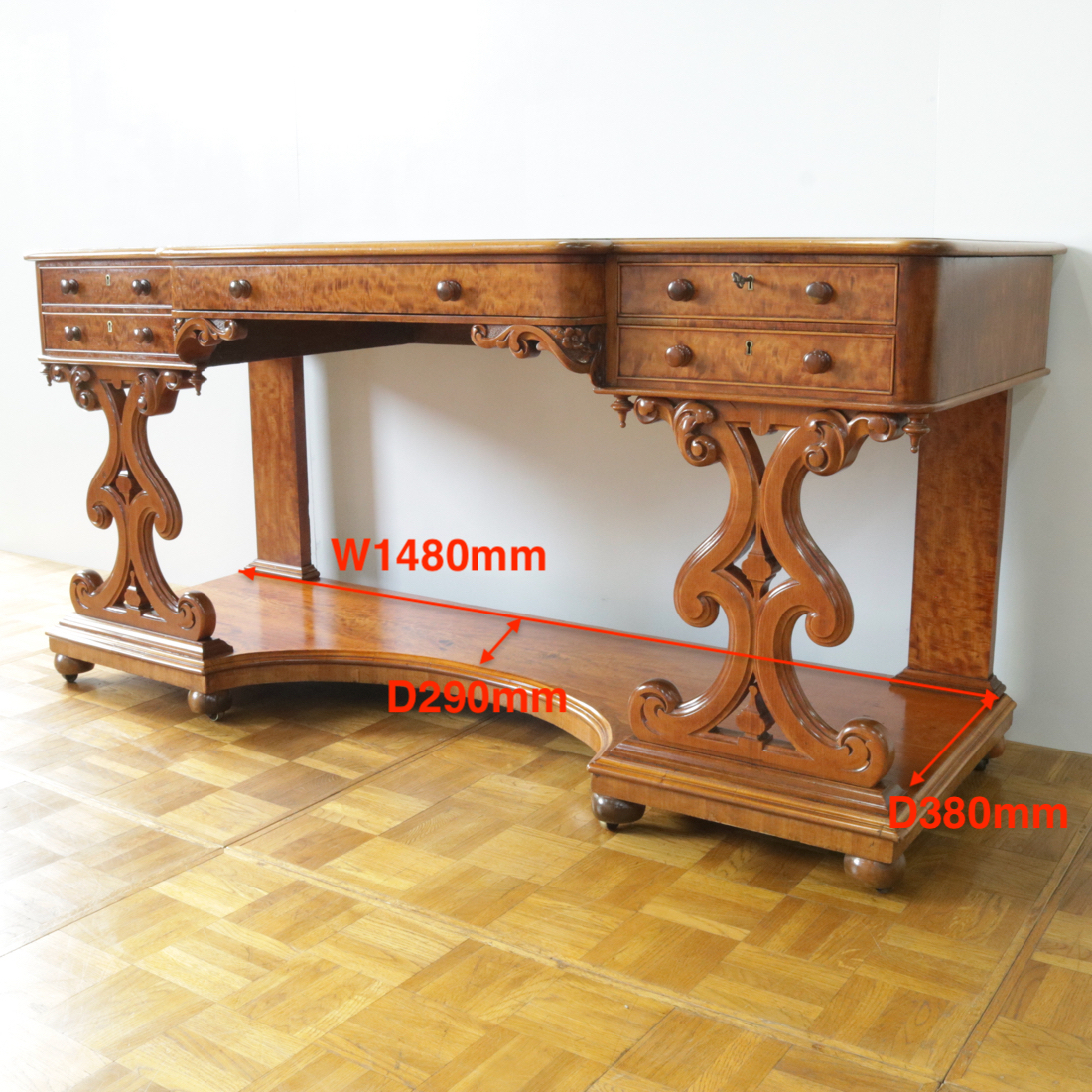 配送料の目安 ▶︎1900年代サテンウッド材、ヴィクトリアン期のライティングデスク。