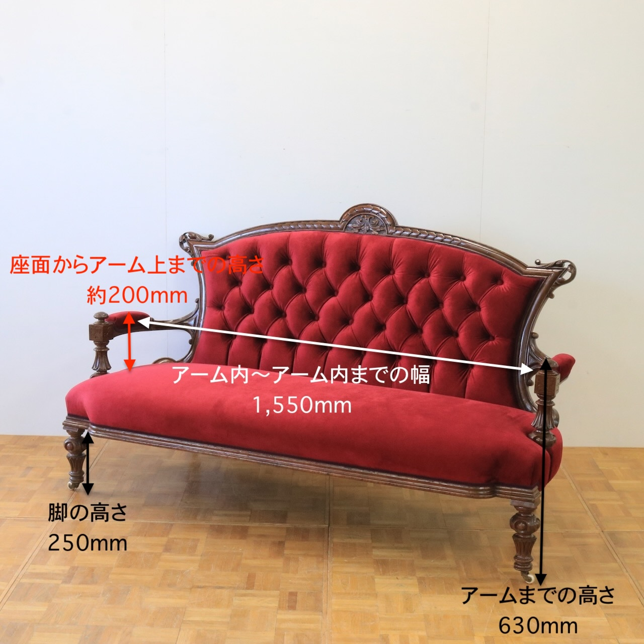 アームトップにまでも美しいレリーフが施され当時の職人のこだわりを感じられます。