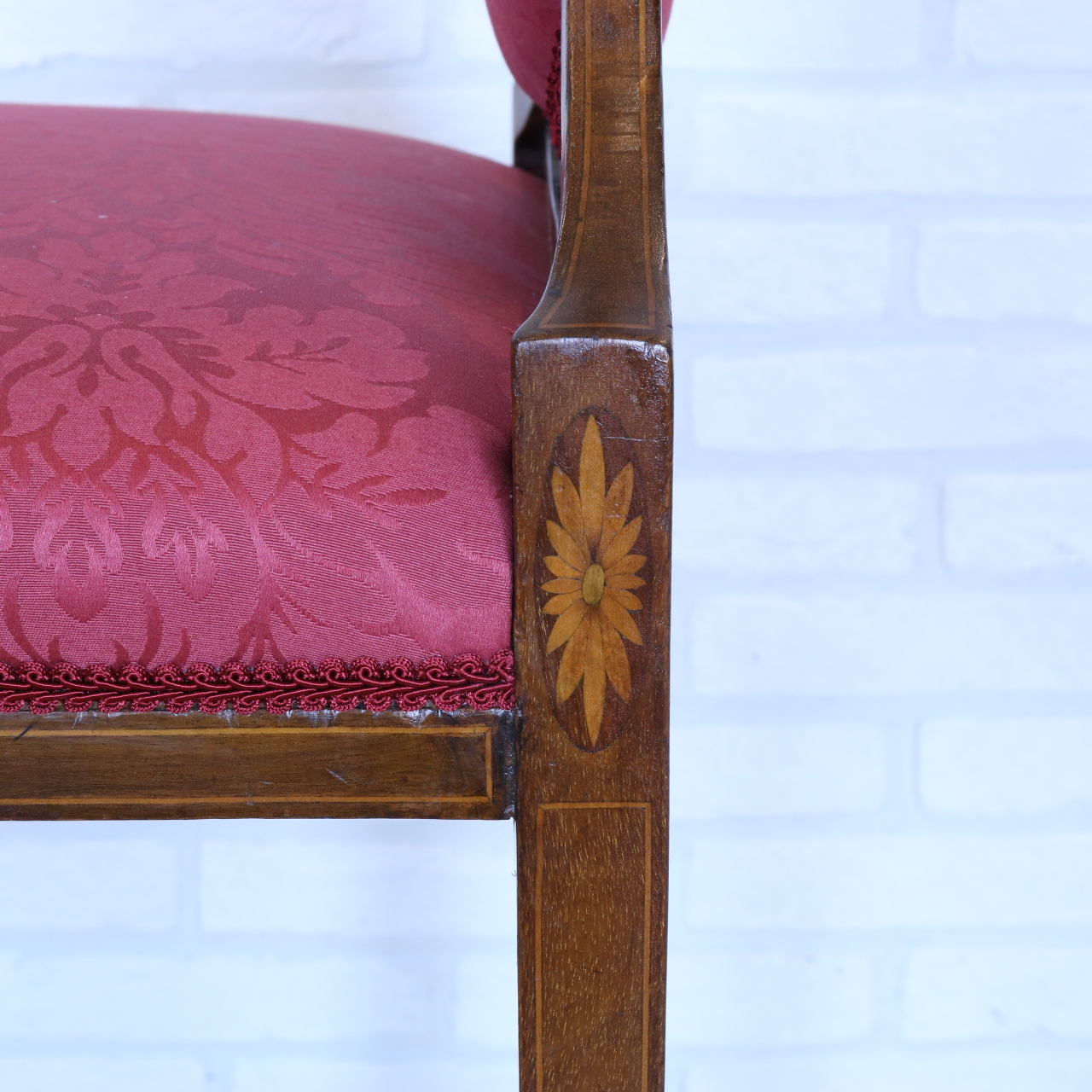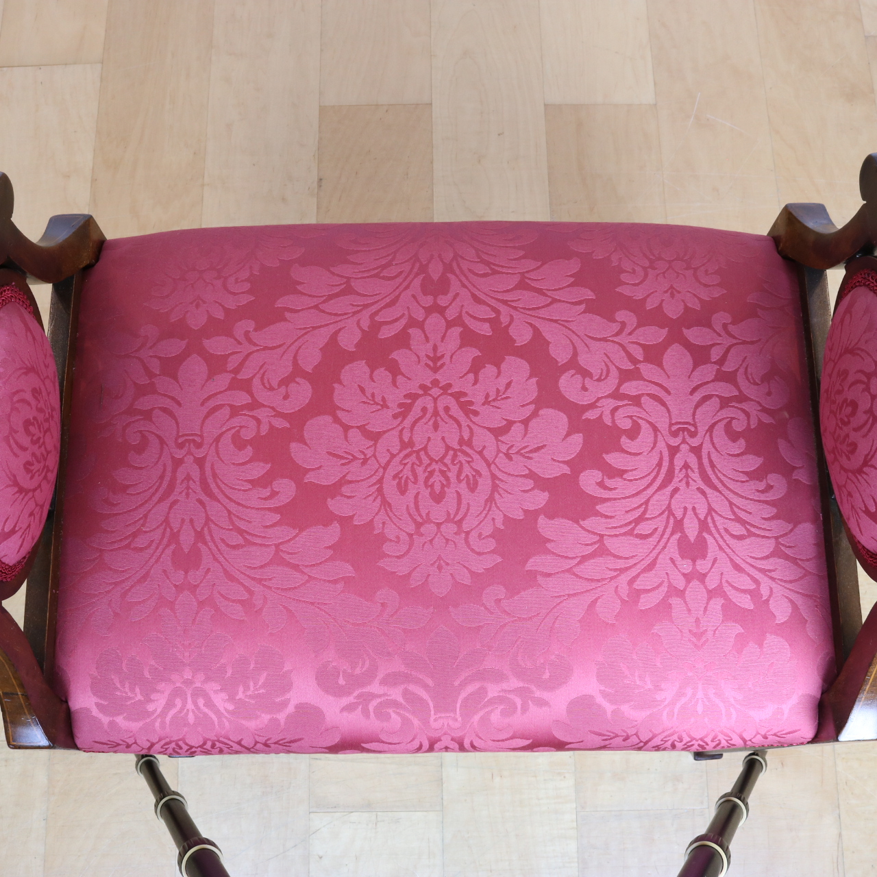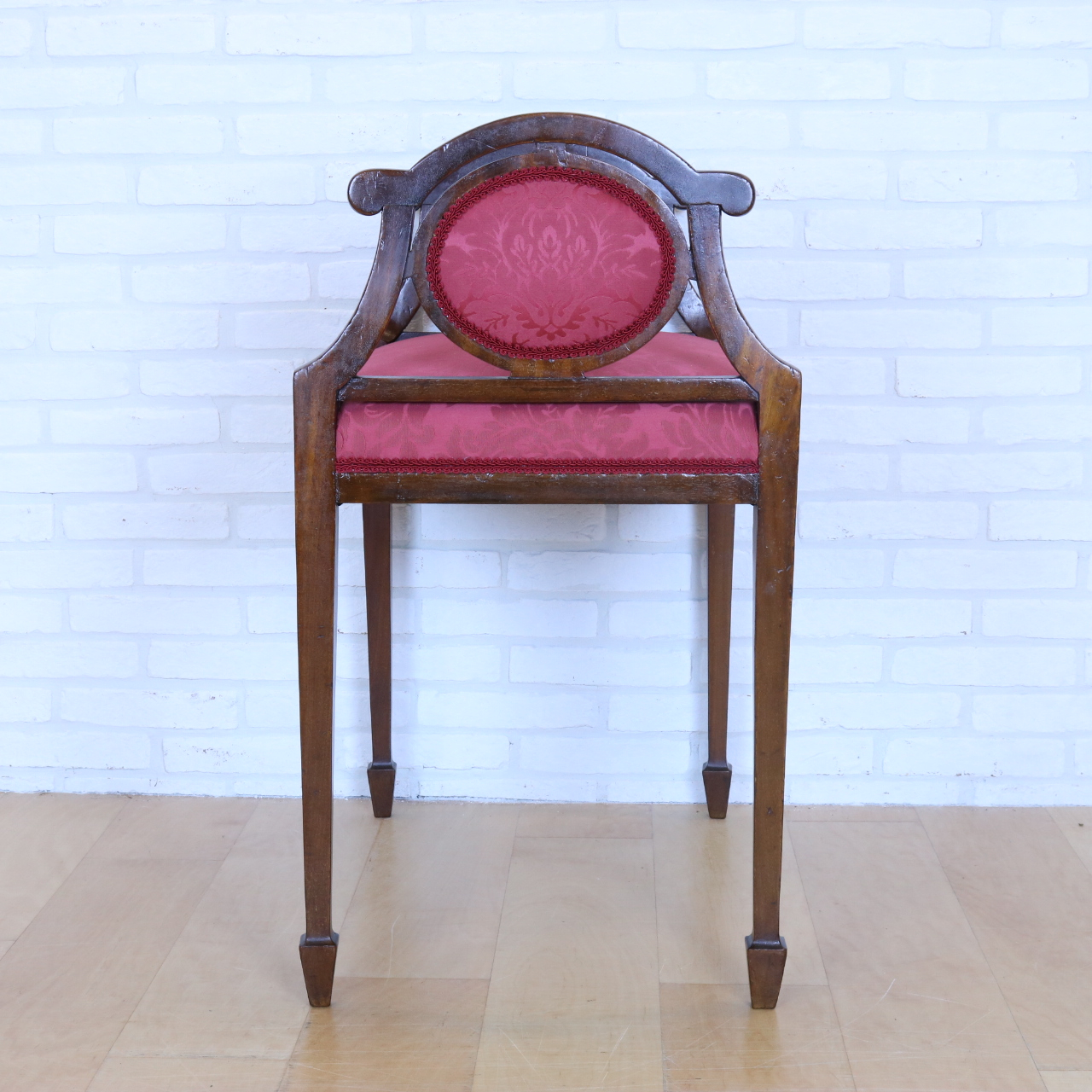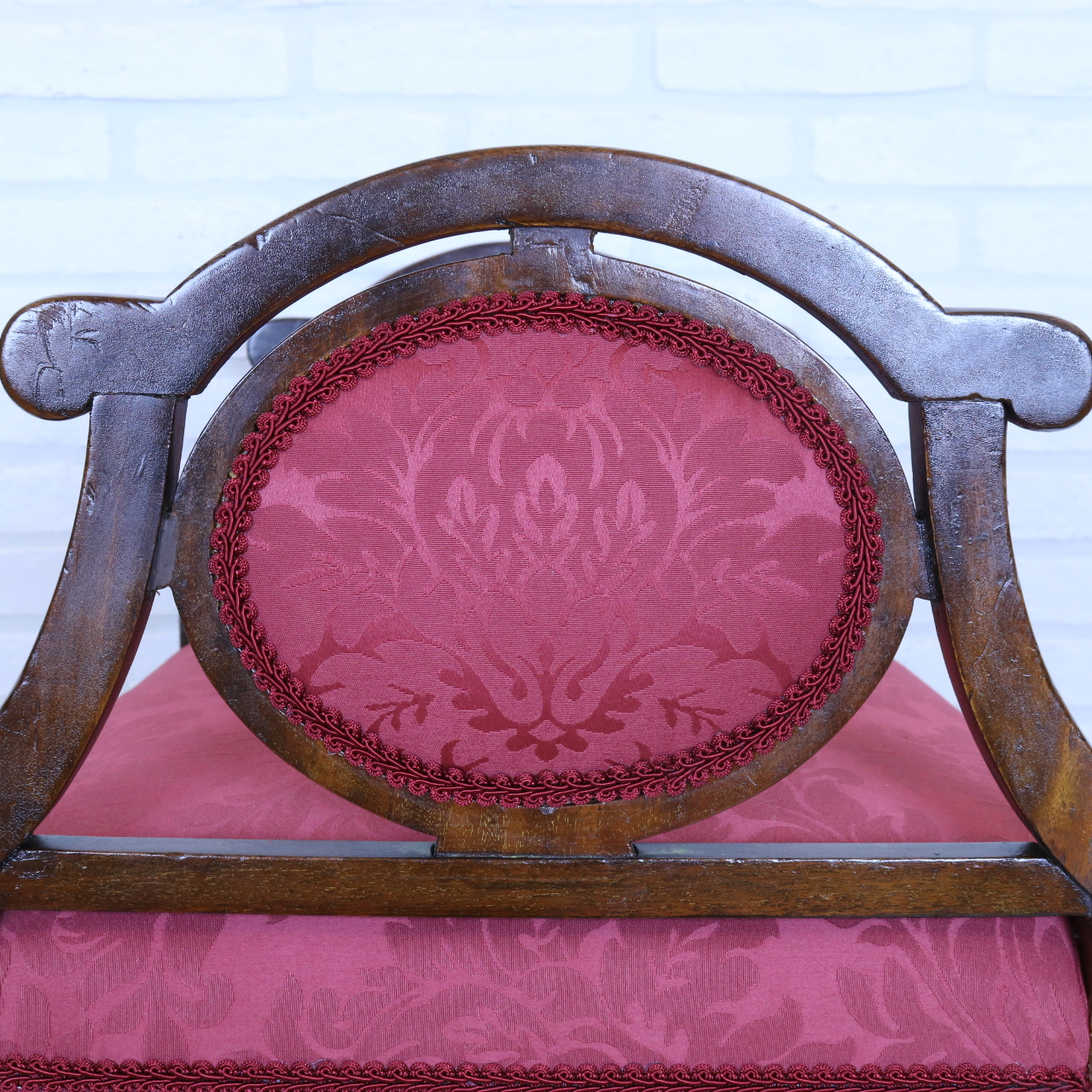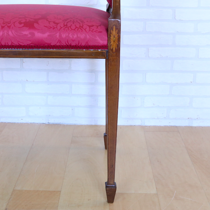 座面は赤いダマスク柄の生地で張り替え済みです。