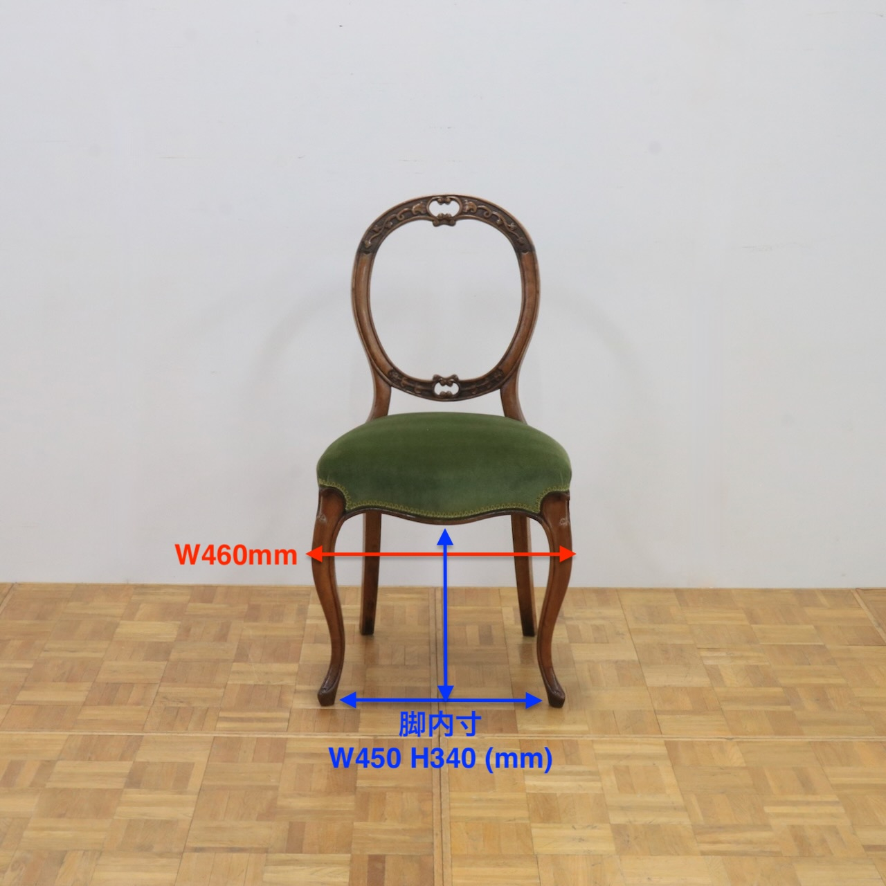 こちらのバルーンバックチェアーは背に地堀のレリーフが細やかに施され、その仕上がりの美しさが一際目を引きます。