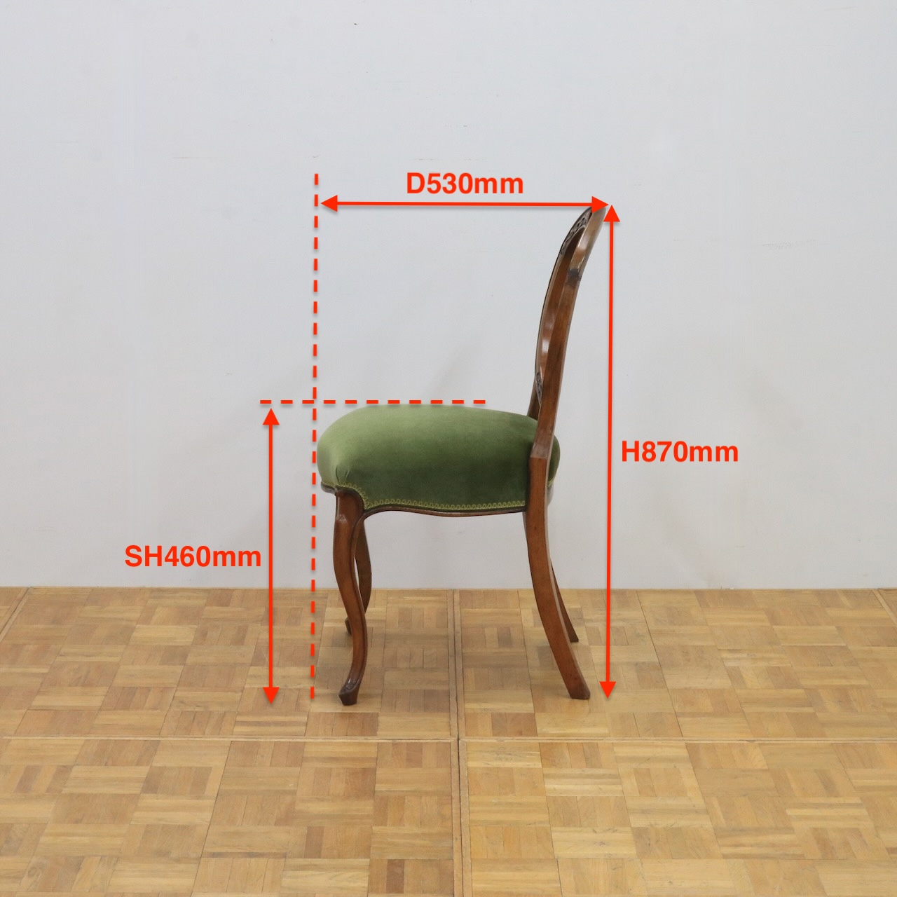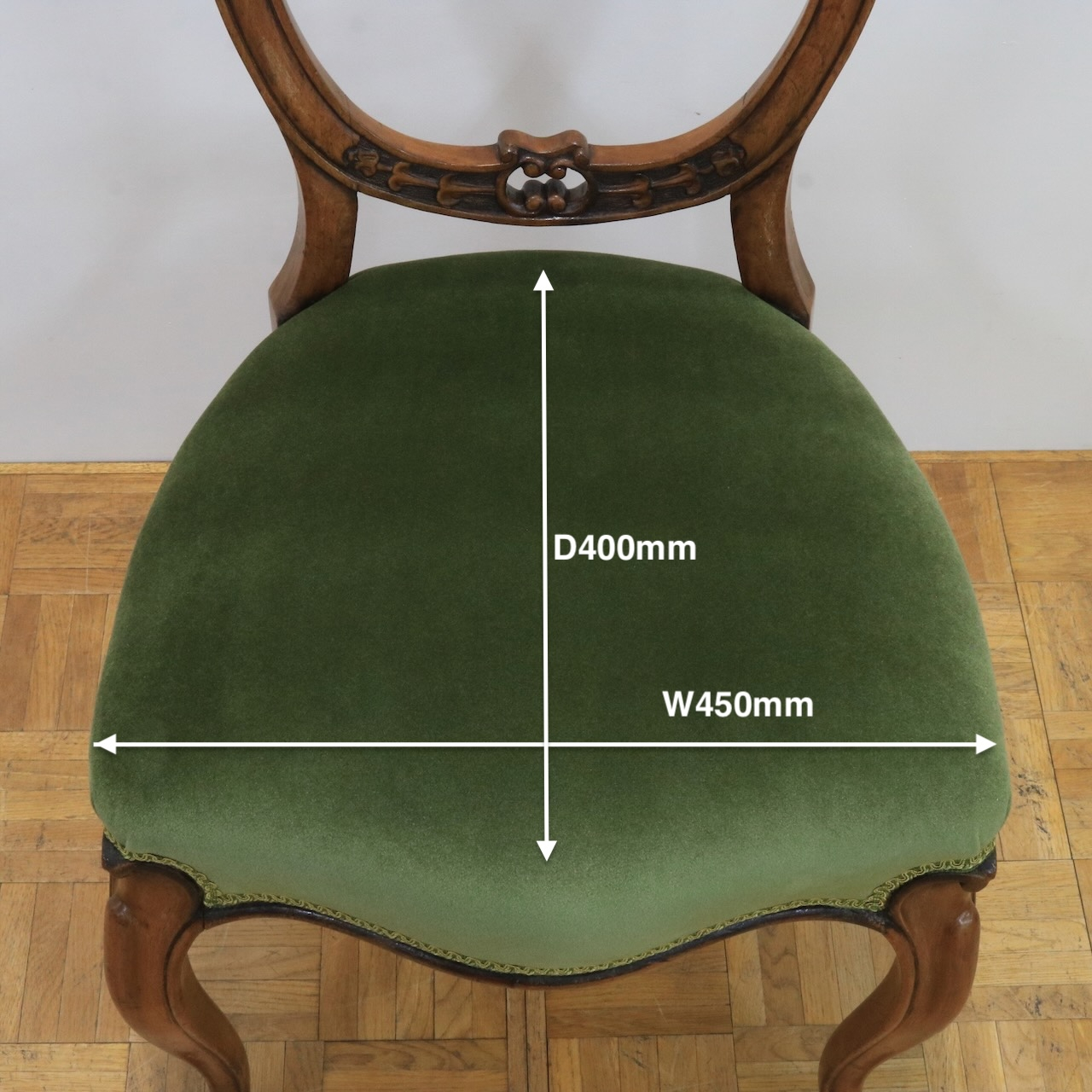 その名の通り"気球のように膨らんだ背"のデザインが特徴のバルーンバックチェアー。曲線的で優美、ヴィクトリア時代を代表するチェアーデザインです。