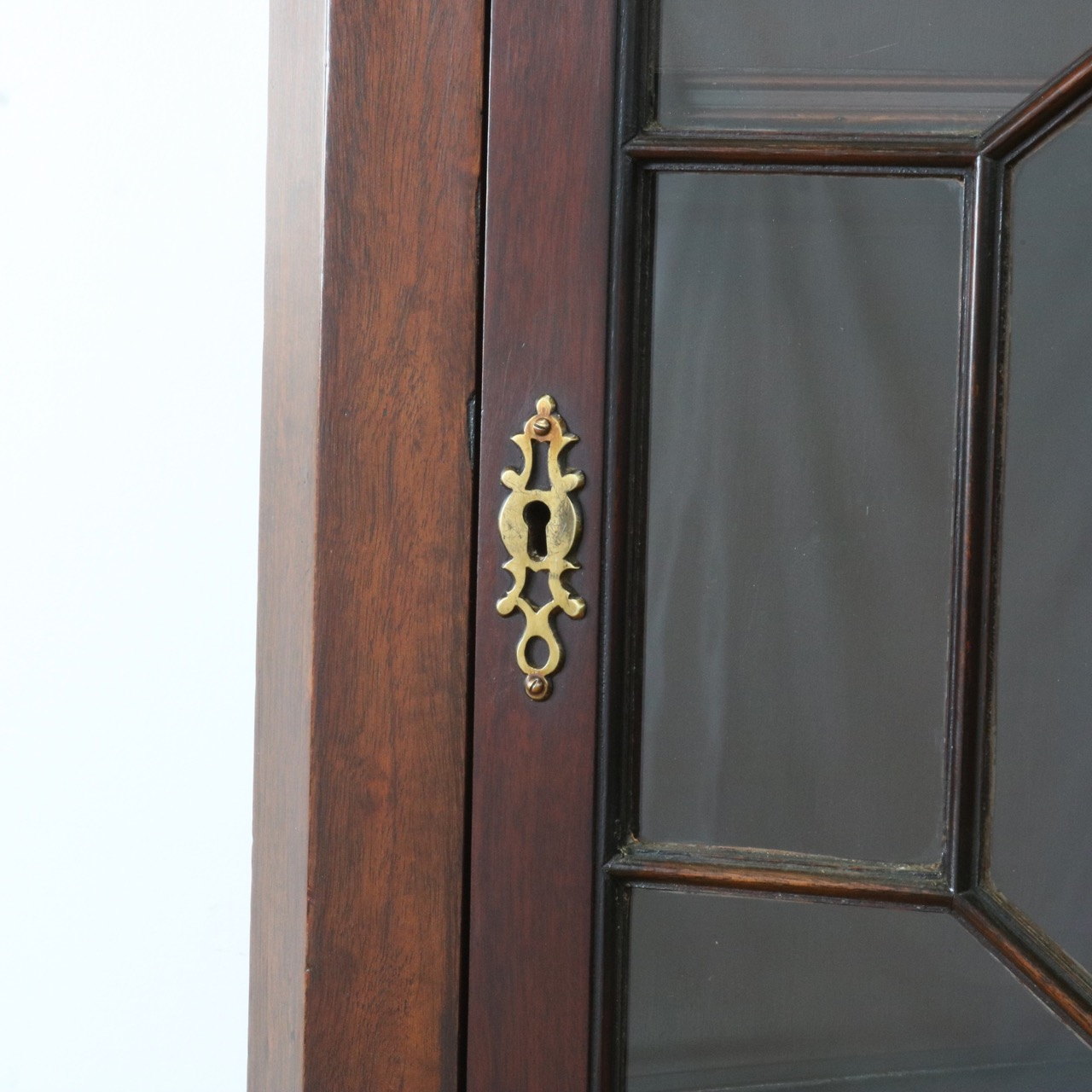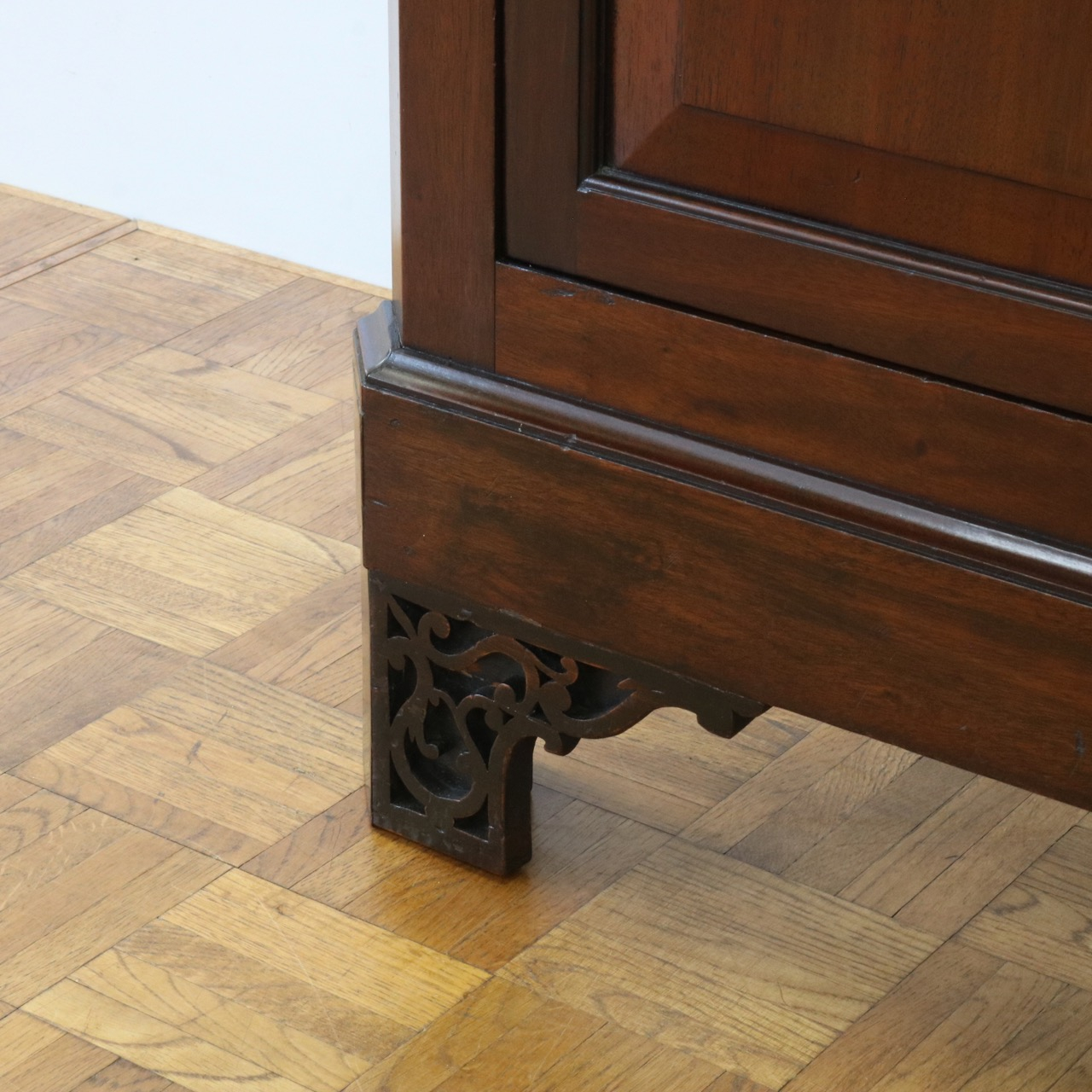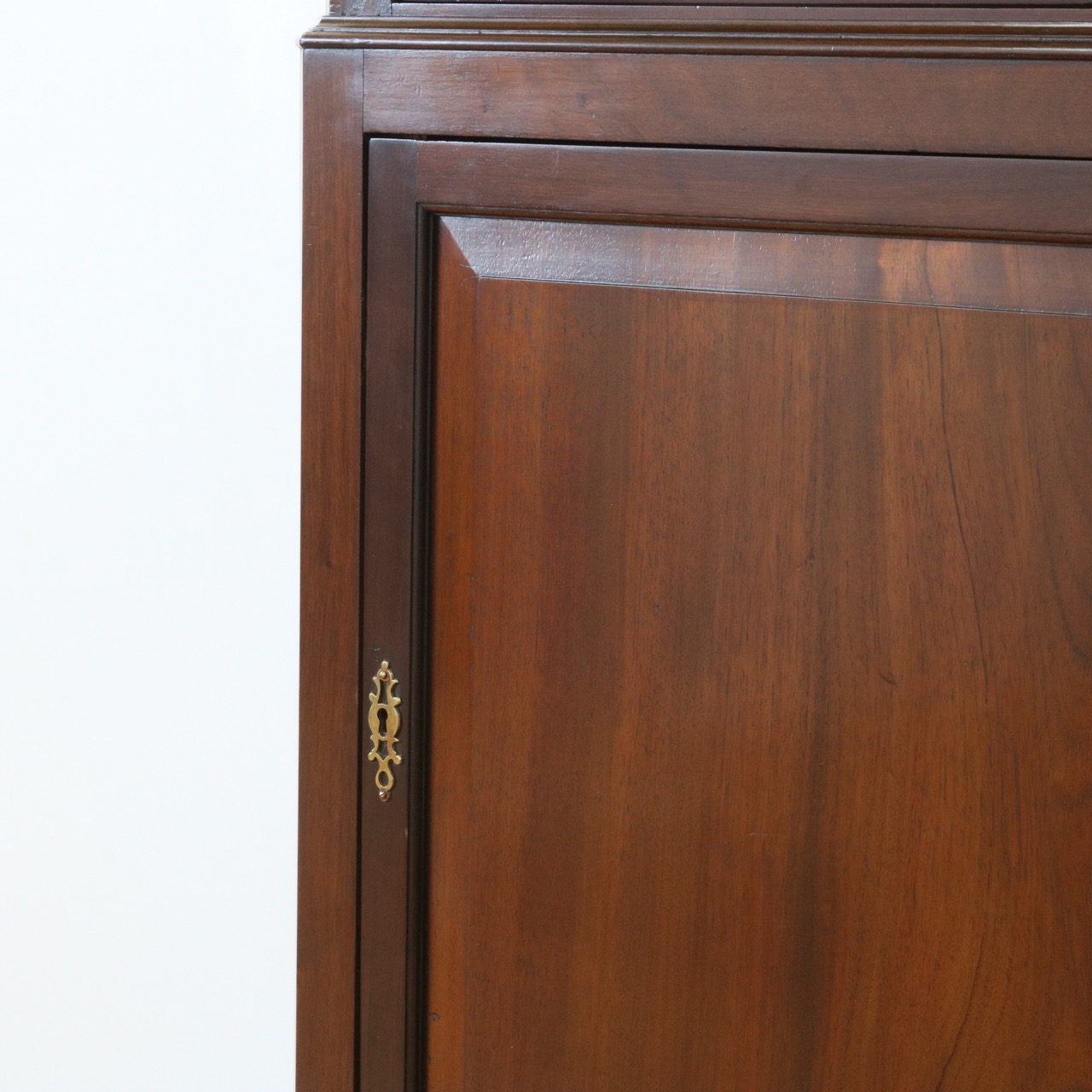 下段の扉はシンプルな鏡板。マホガニーの木目模様が艶やかですね。