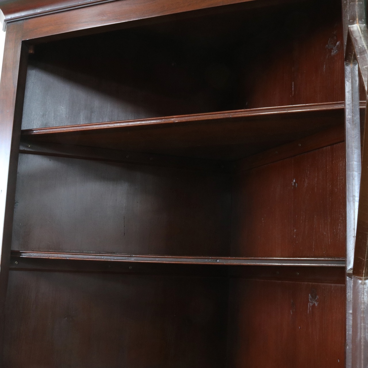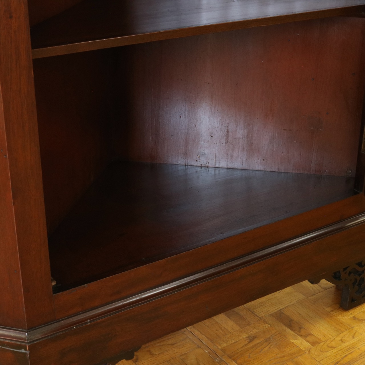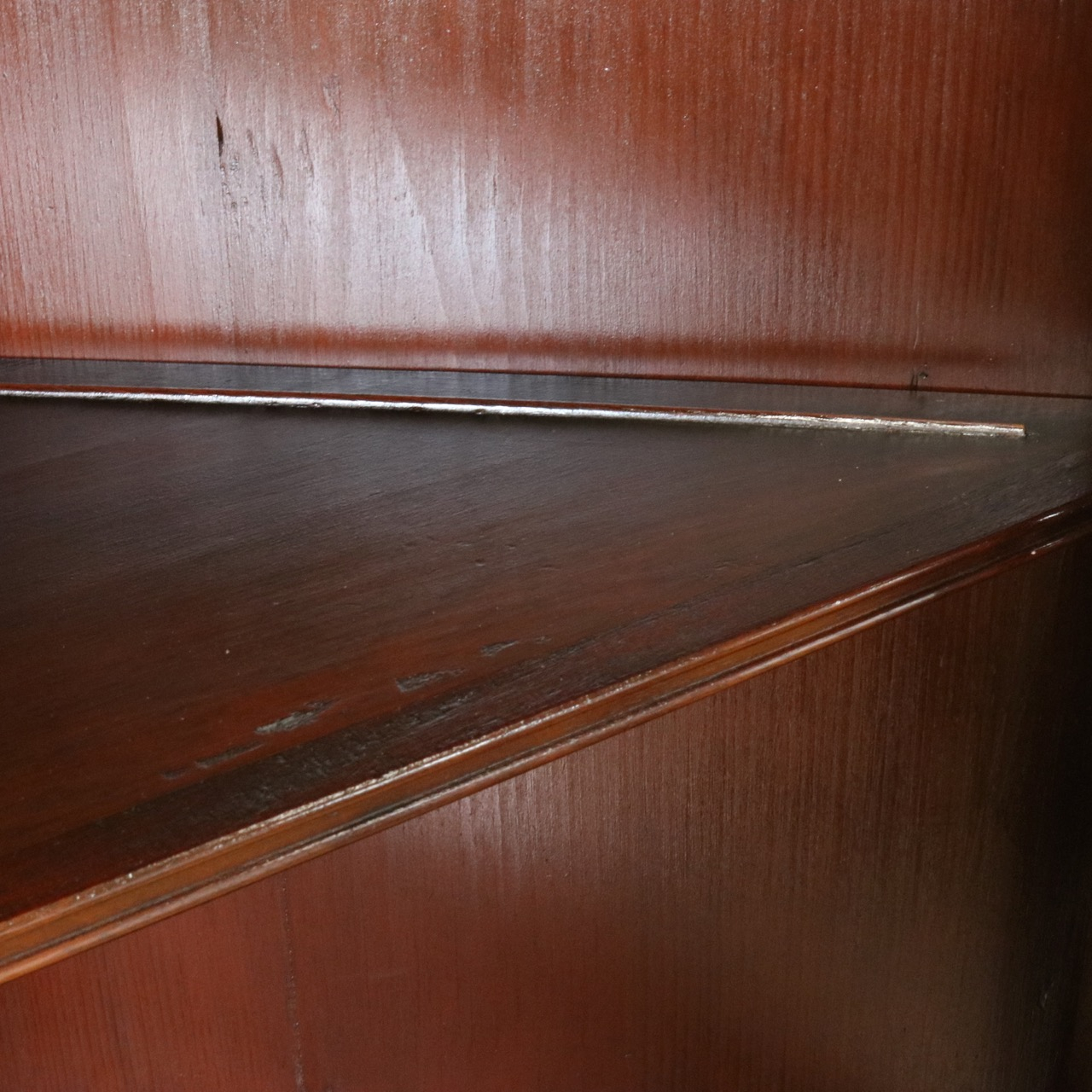 下段の扉はシンプルな鏡板。マホガニーの木目模様が艶やかですね。