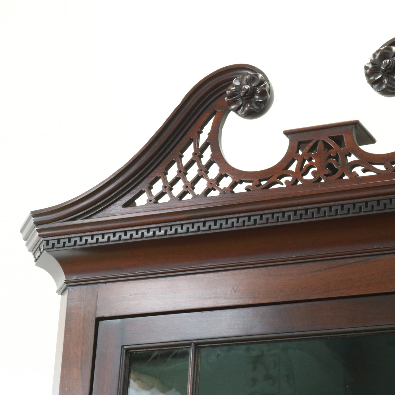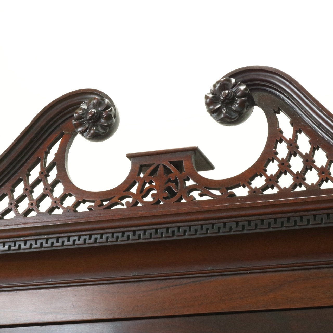 トップの網目模様透かし彫りとお花のモチーフがあしらわれたブロークンペディメントがエレガントさを演出。