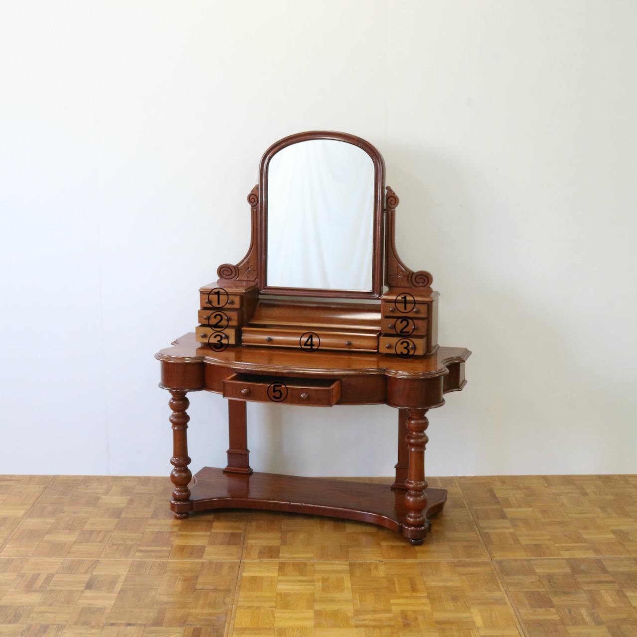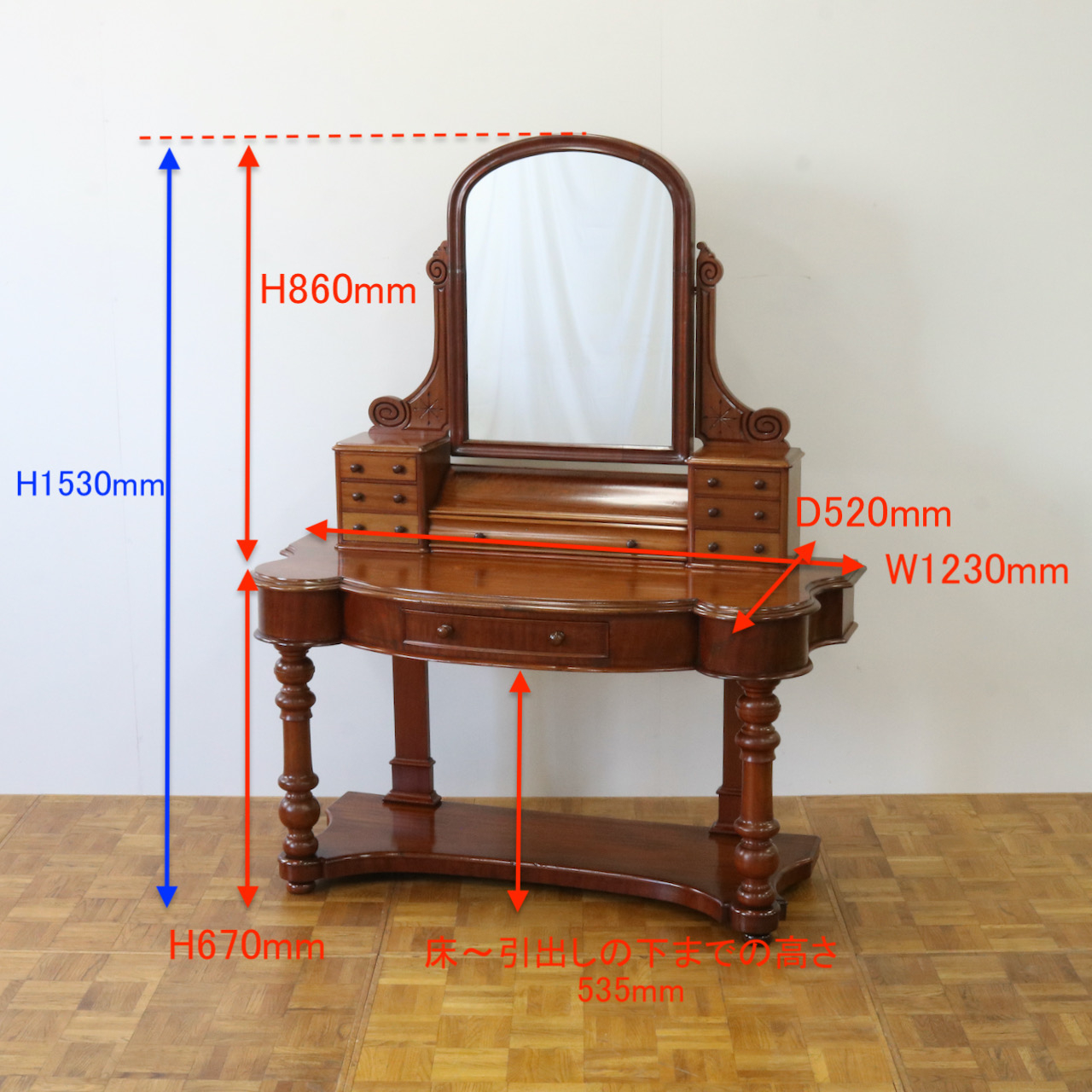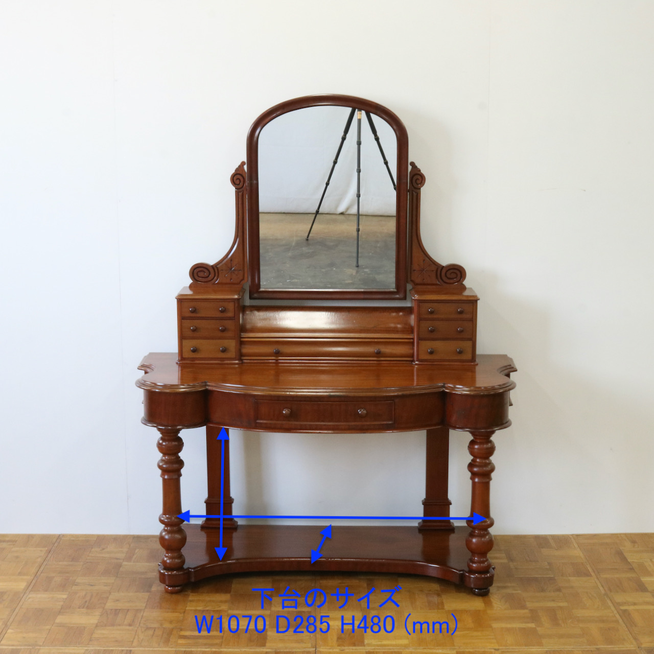 ヴィクトリアンの家具らしい華やかなドレッシングテーブルです。