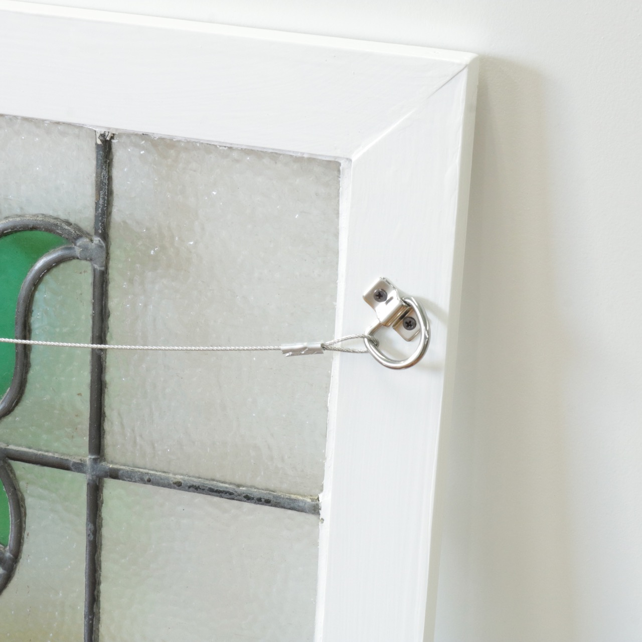 木枠はホワイトペイントを施し、ワイヤーを取り付けて壁面に飾れるように加工しました。