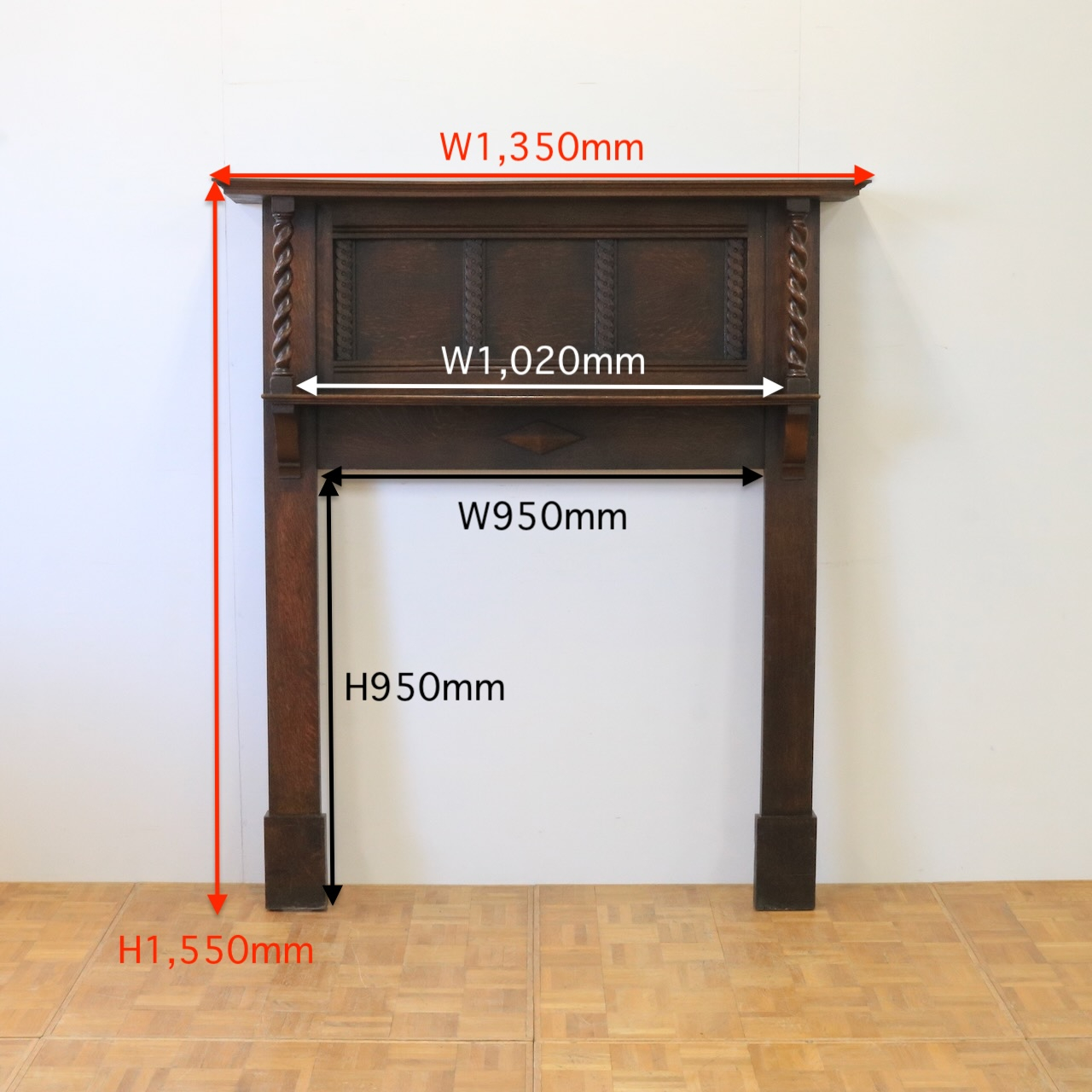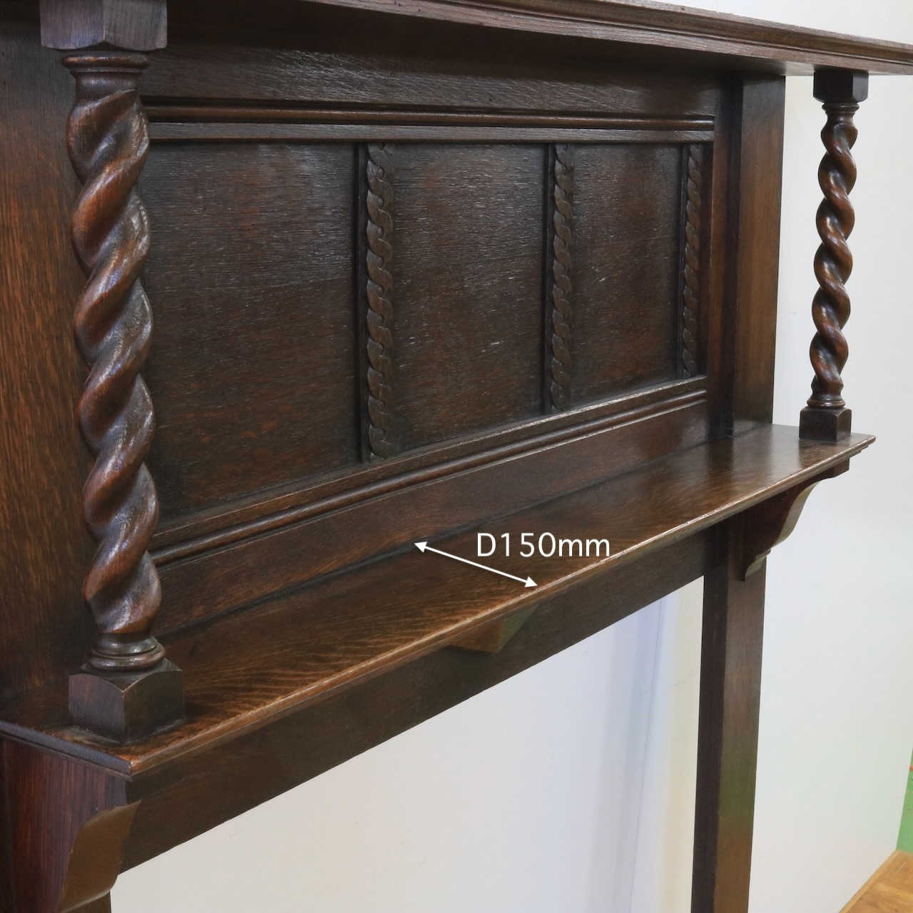 バーリーシュガーツイストのコラムがシンメトリーに施された英国アンティークならではのひと品。